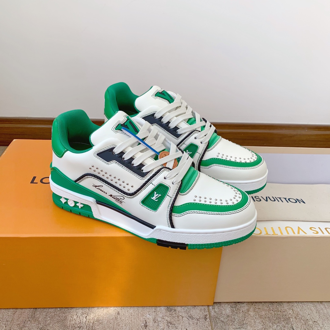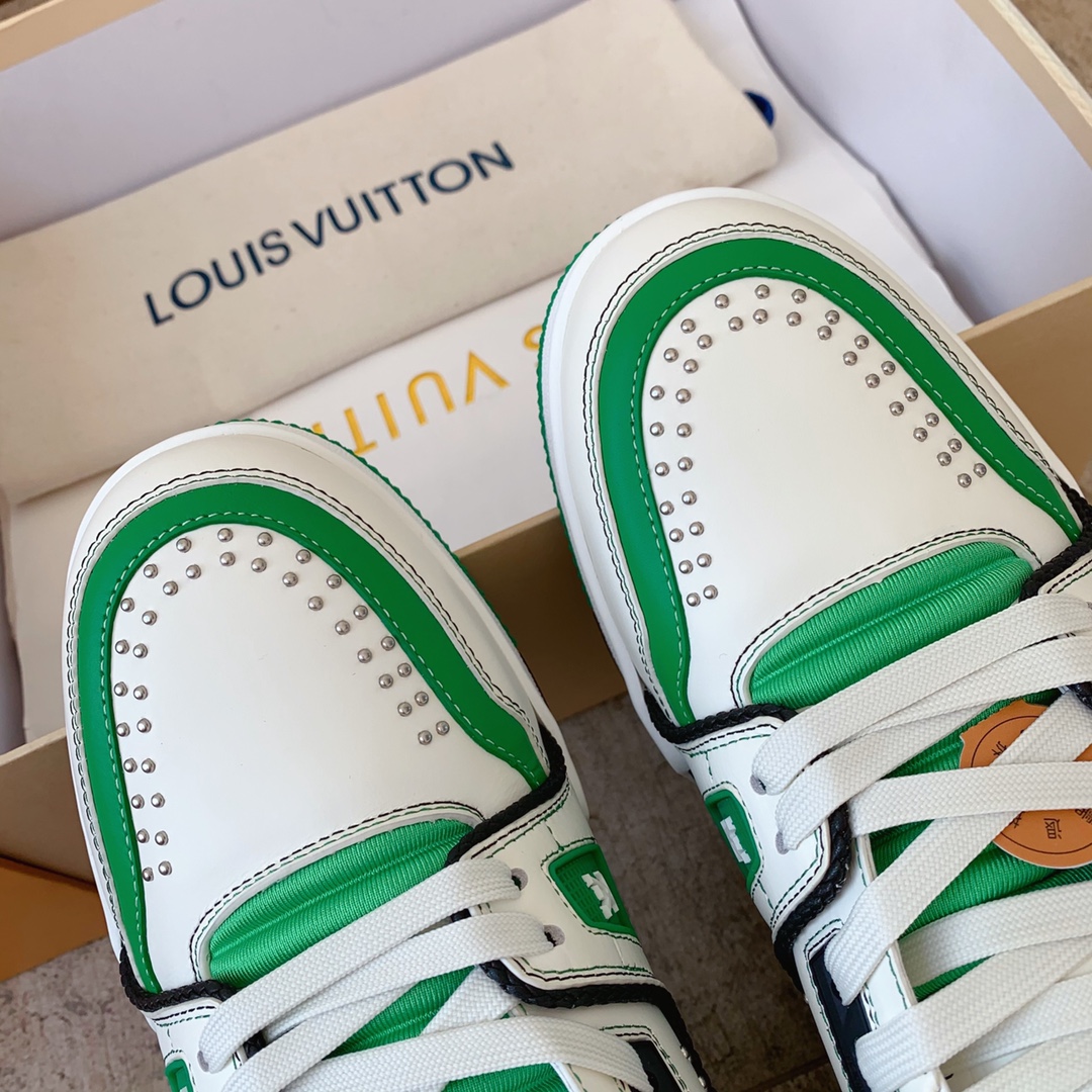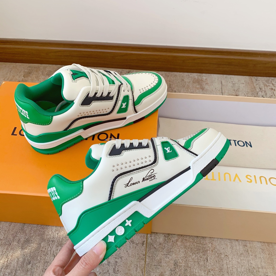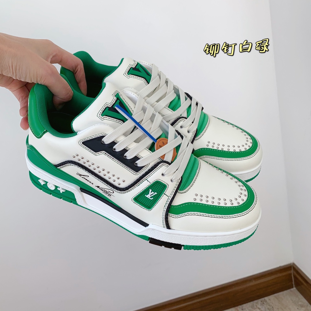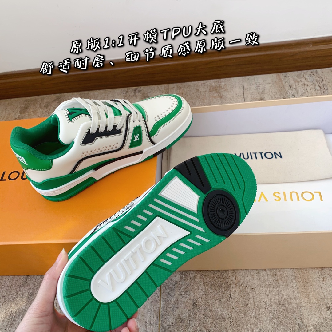 这款鞋子是AAAAA 1:1 质量 (非常棒). 使用了和原版一模一样的材料. 商标部分也保持了和路易威登/Louis Vuitton一样. 图片拍摄是实物鞋子拍摄, 您所收到的实物保证和我们图片一模一样.