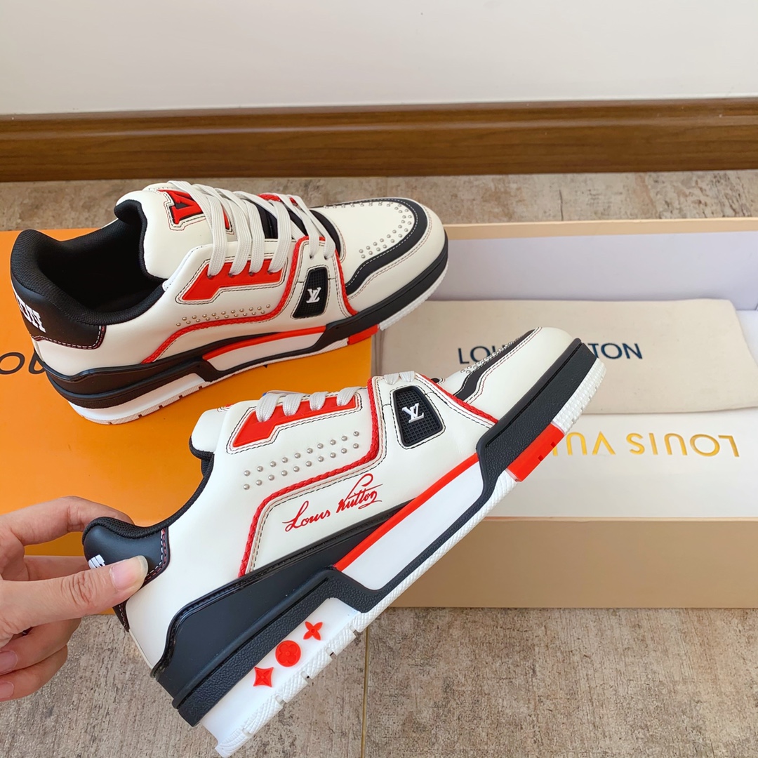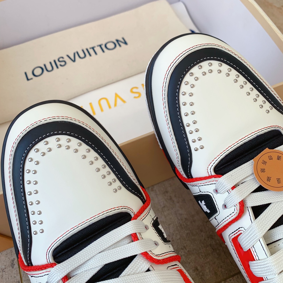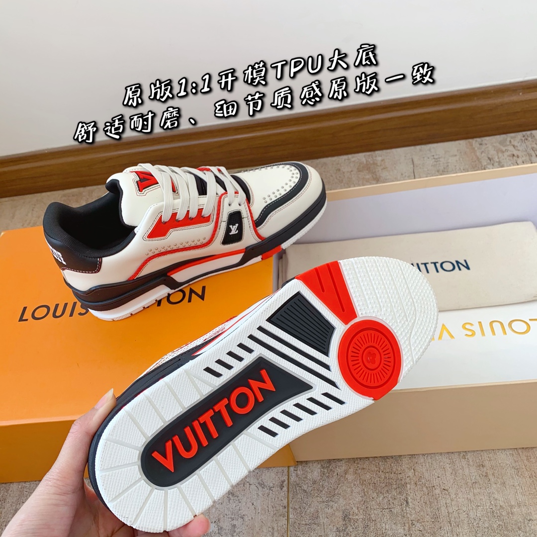 这款鞋子是AAAAA 1:1 质量 (非常棒). 使用了和原版一模一样的材料. 商标部分也保持了和路易威登/Louis Vuitton一样. 图片拍摄是实物鞋子拍摄, 您所收到的实物保证和我们图片一模一样.