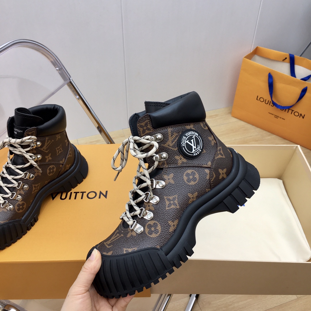 这款鞋子是AAAAA 1:1 质量 (非常棒). 使用了和原版一模一样的材料. 商标部分也保持了和路易威登/Louis Vuitton一样. 图片拍摄是实物鞋子拍摄, 您所收到的实物保证和我们图片一模一样.