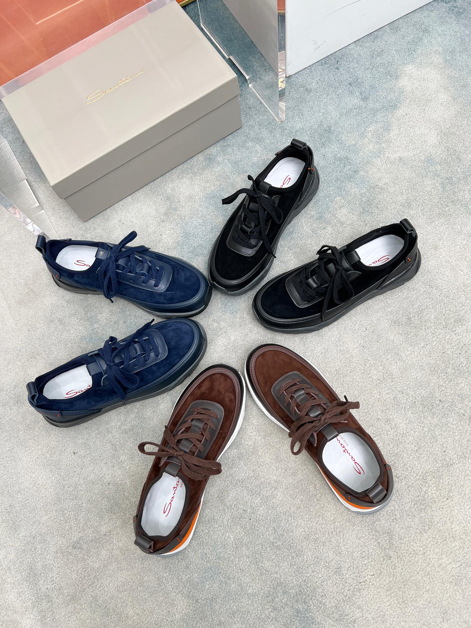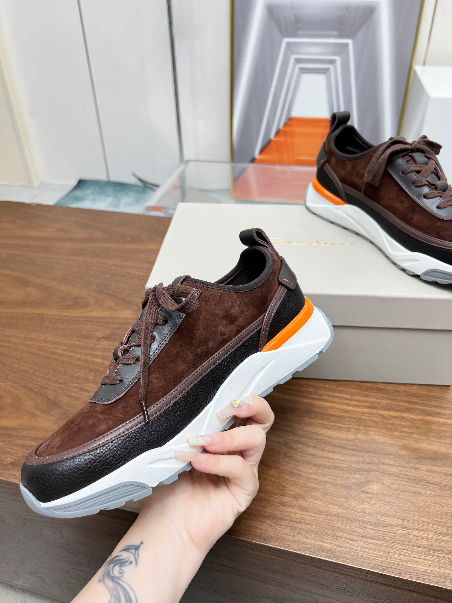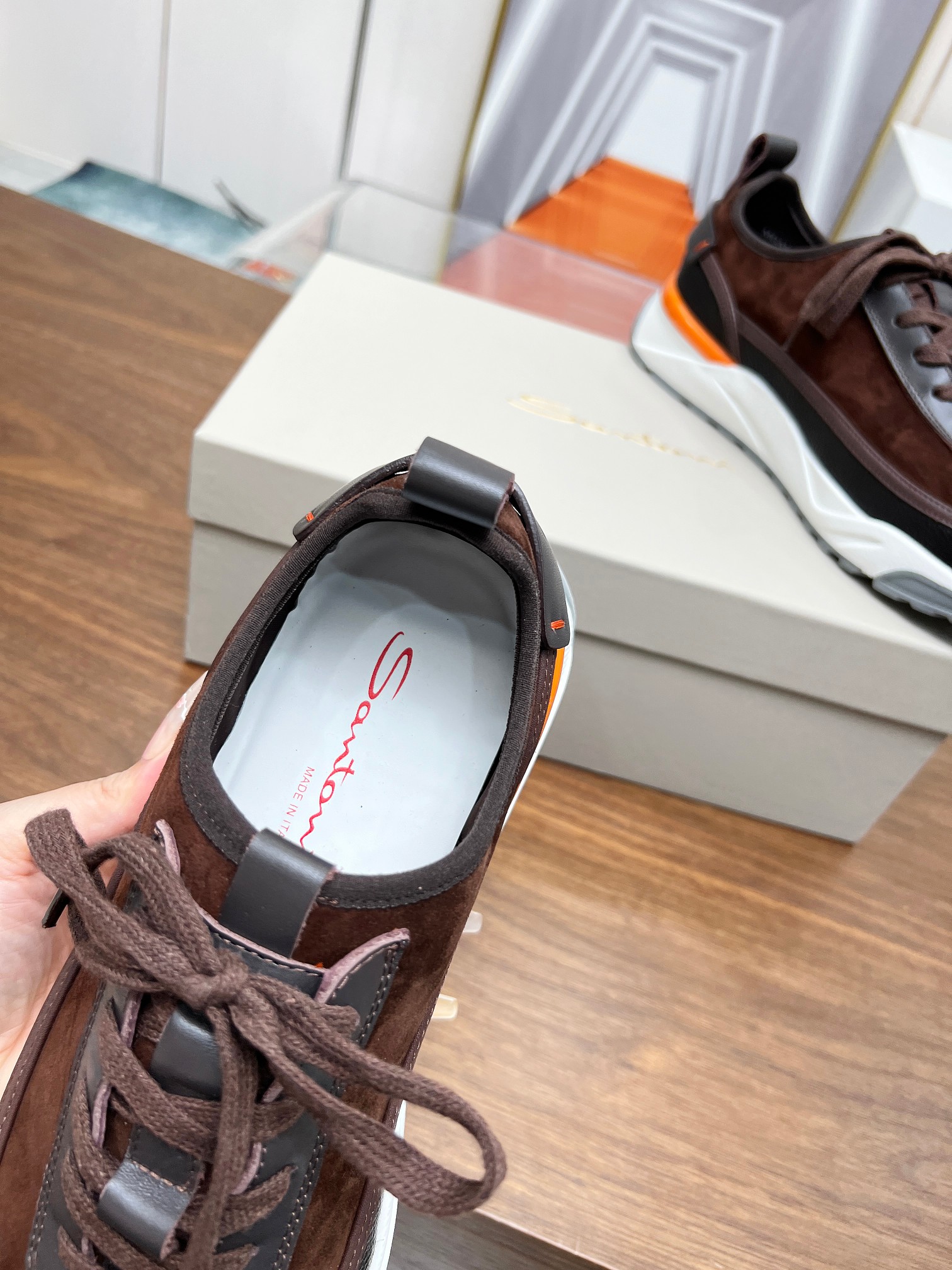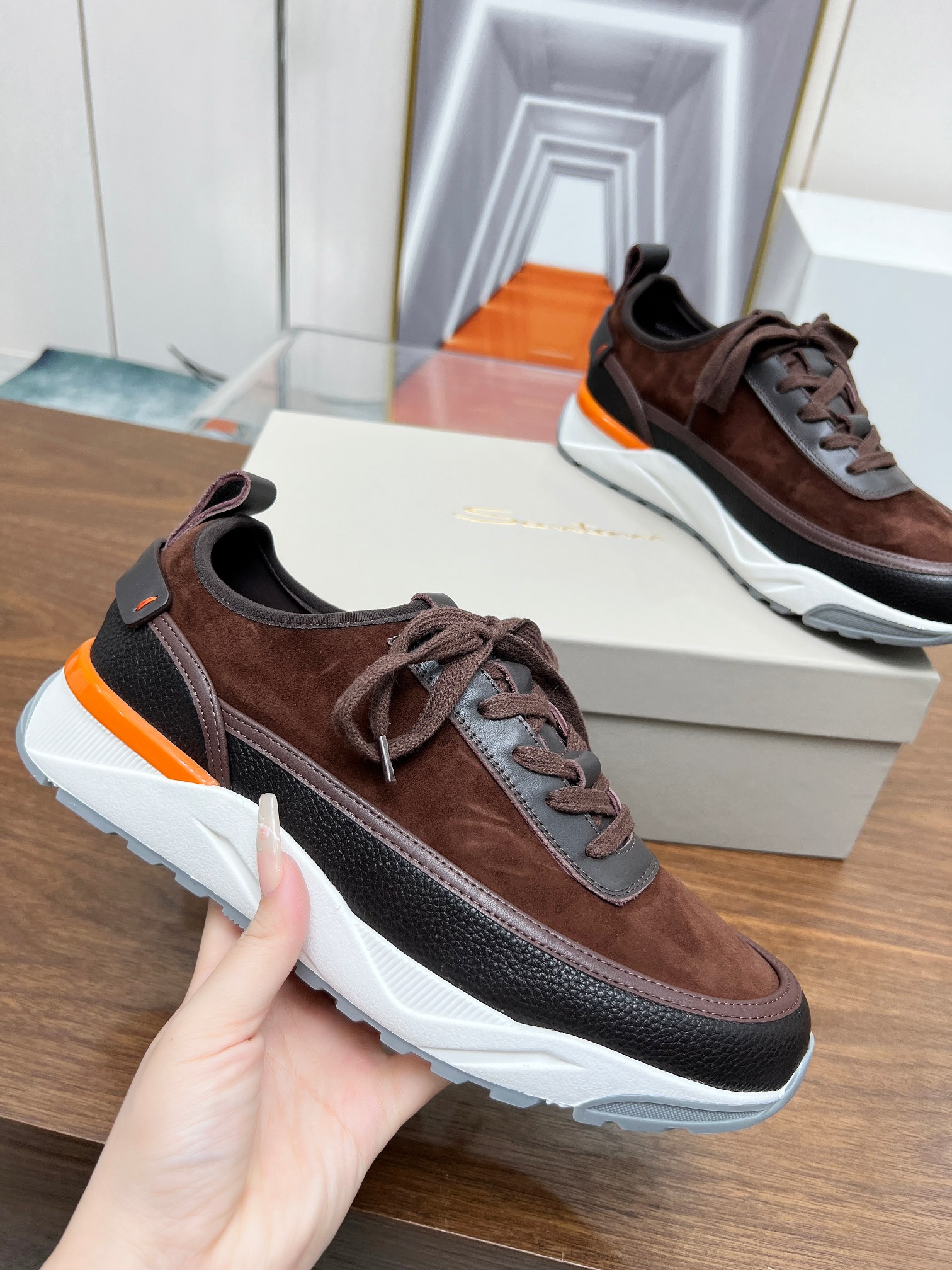 这款鞋子是AAAAA 1:1 质量 (非常棒). 使用了和原版一模一样的材料. 商标部分也保持了和Santoni一样. 图片拍摄是实物鞋子拍摄, 您所收到的实物保证和我们图片一模一样.