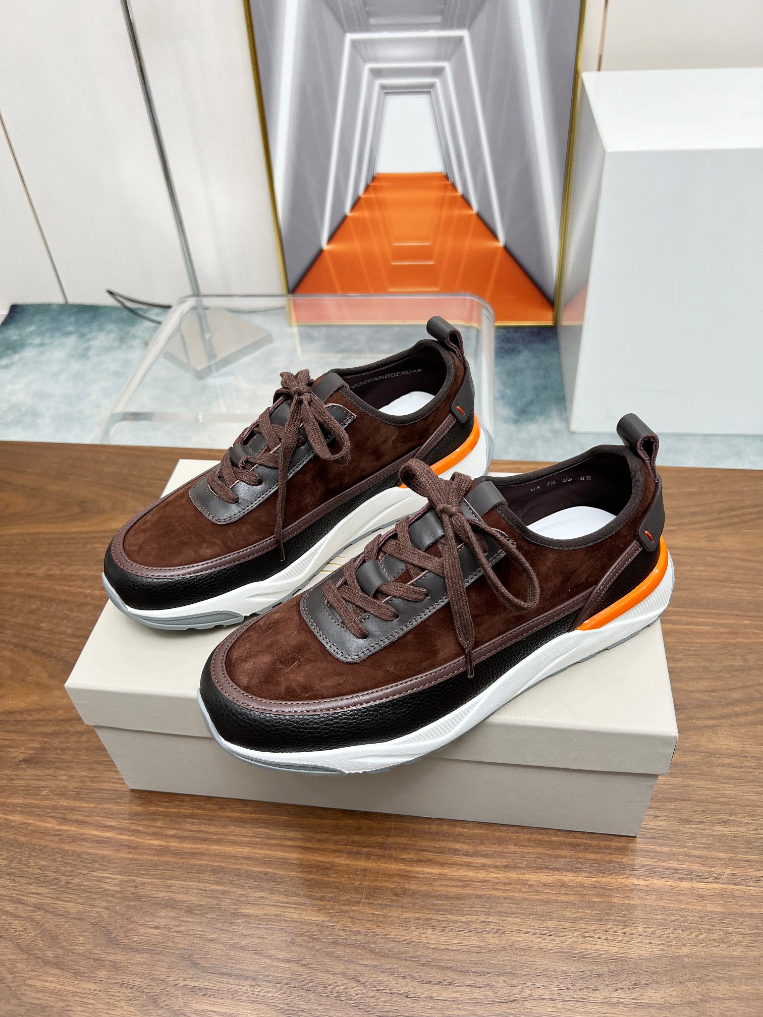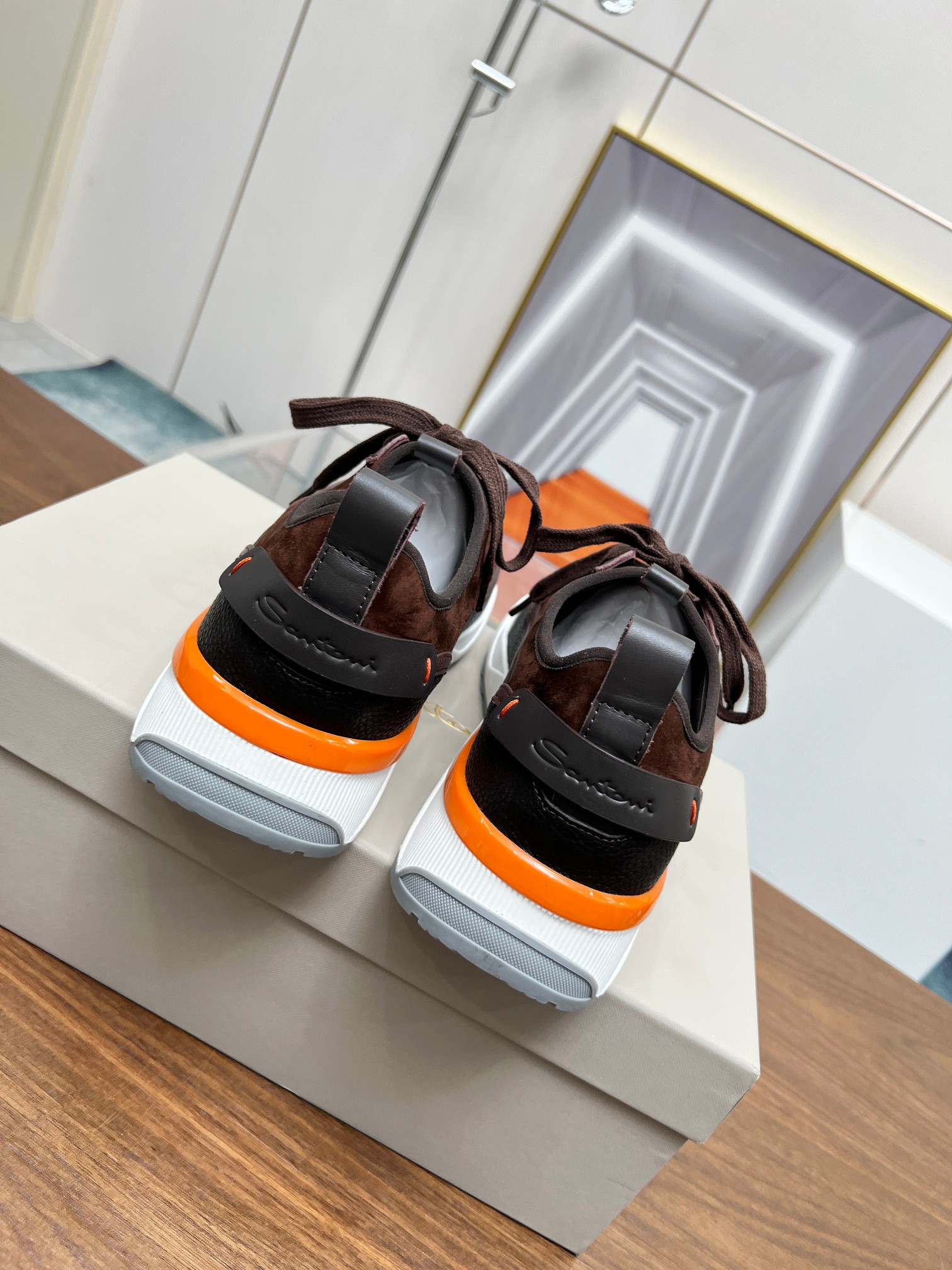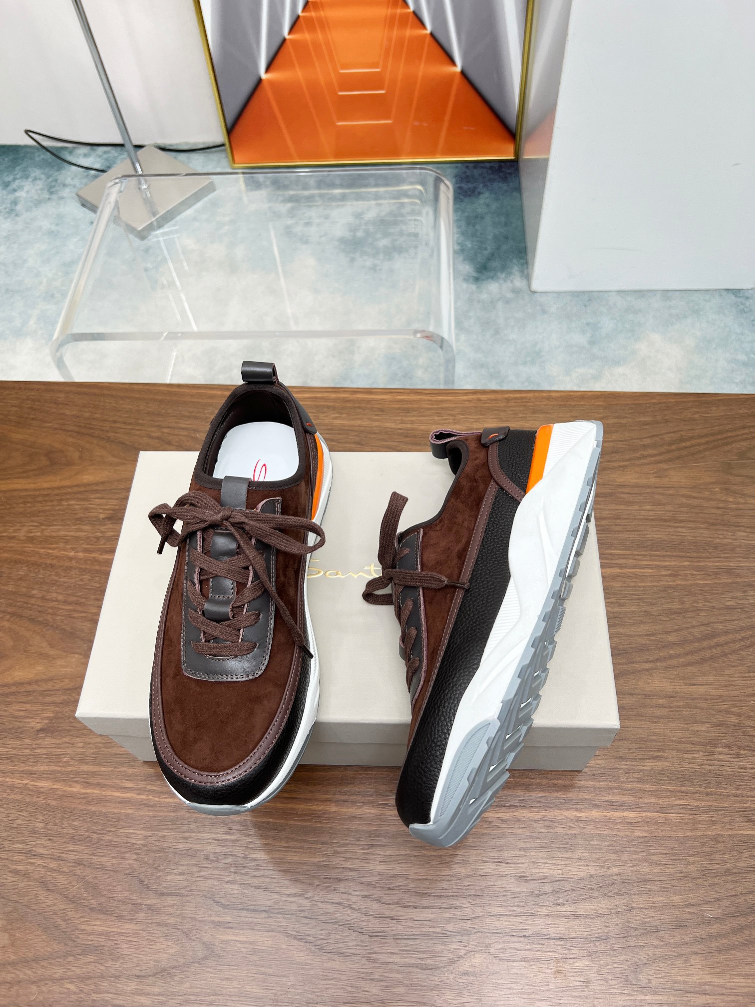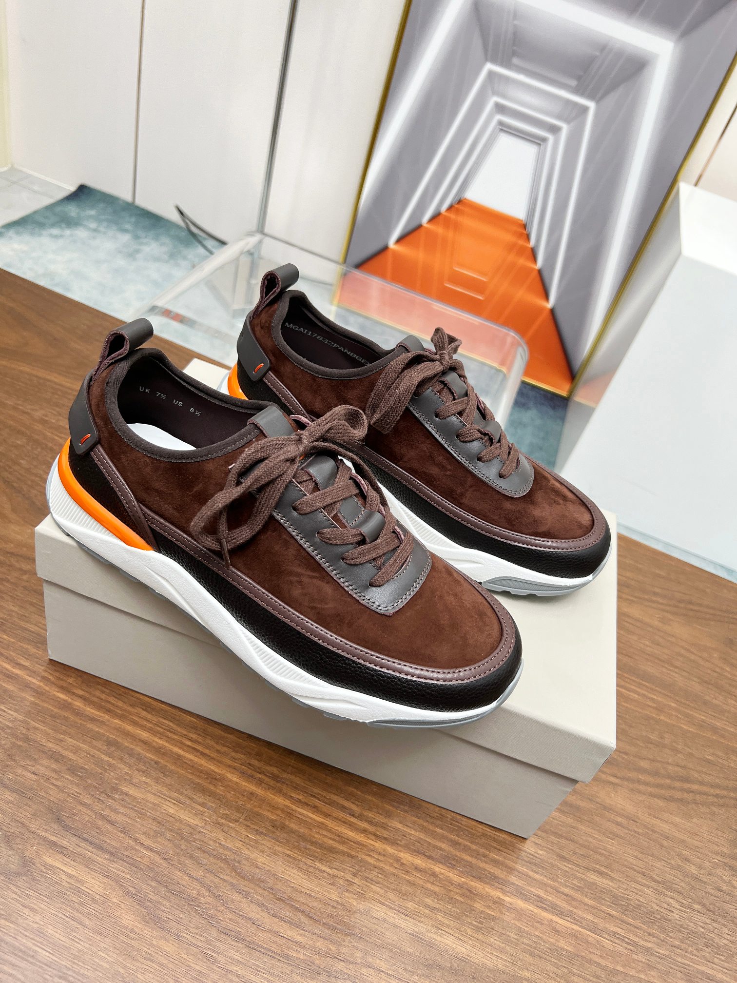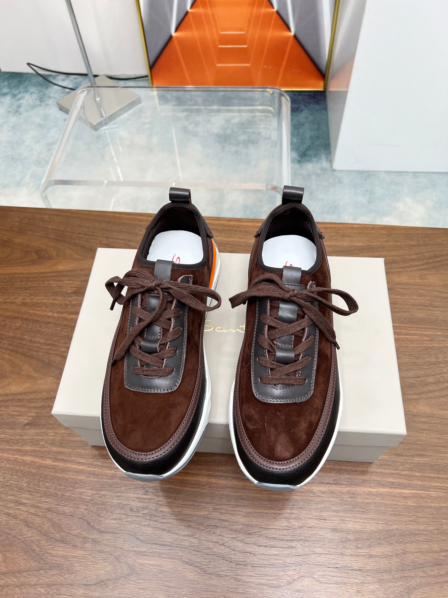 这款鞋子是AAAAA 1:1 质量 (非常棒). 使用了和原版一模一样的材料. 商标部分也保持了和Santoni一样. 图片拍摄是实物鞋子拍摄, 您所收到的实物保证和我们图片一模一样.