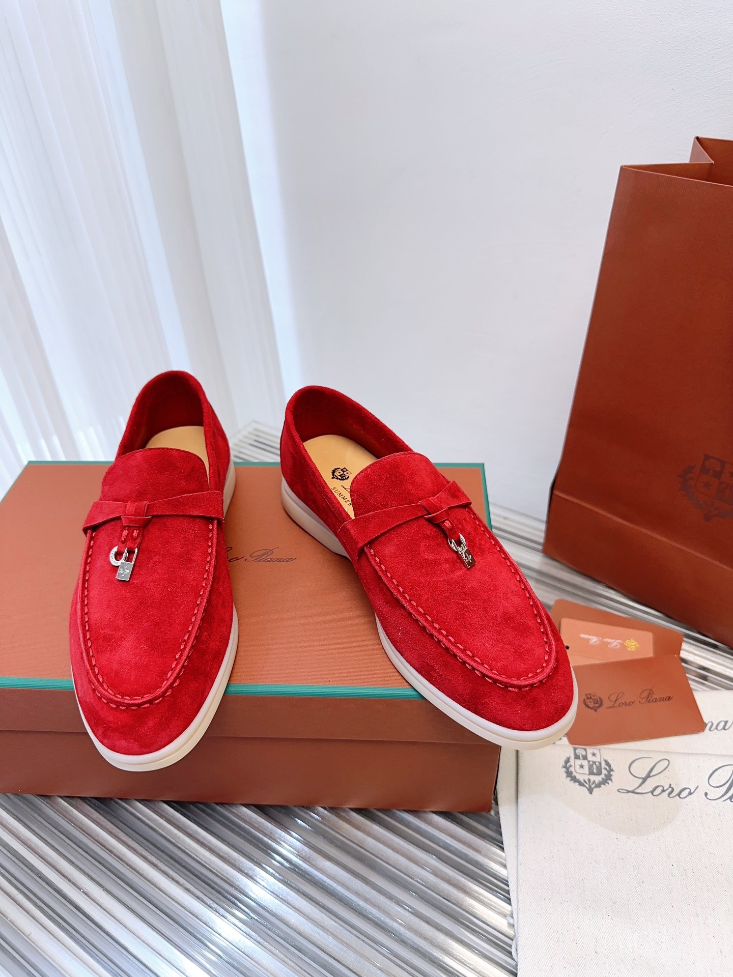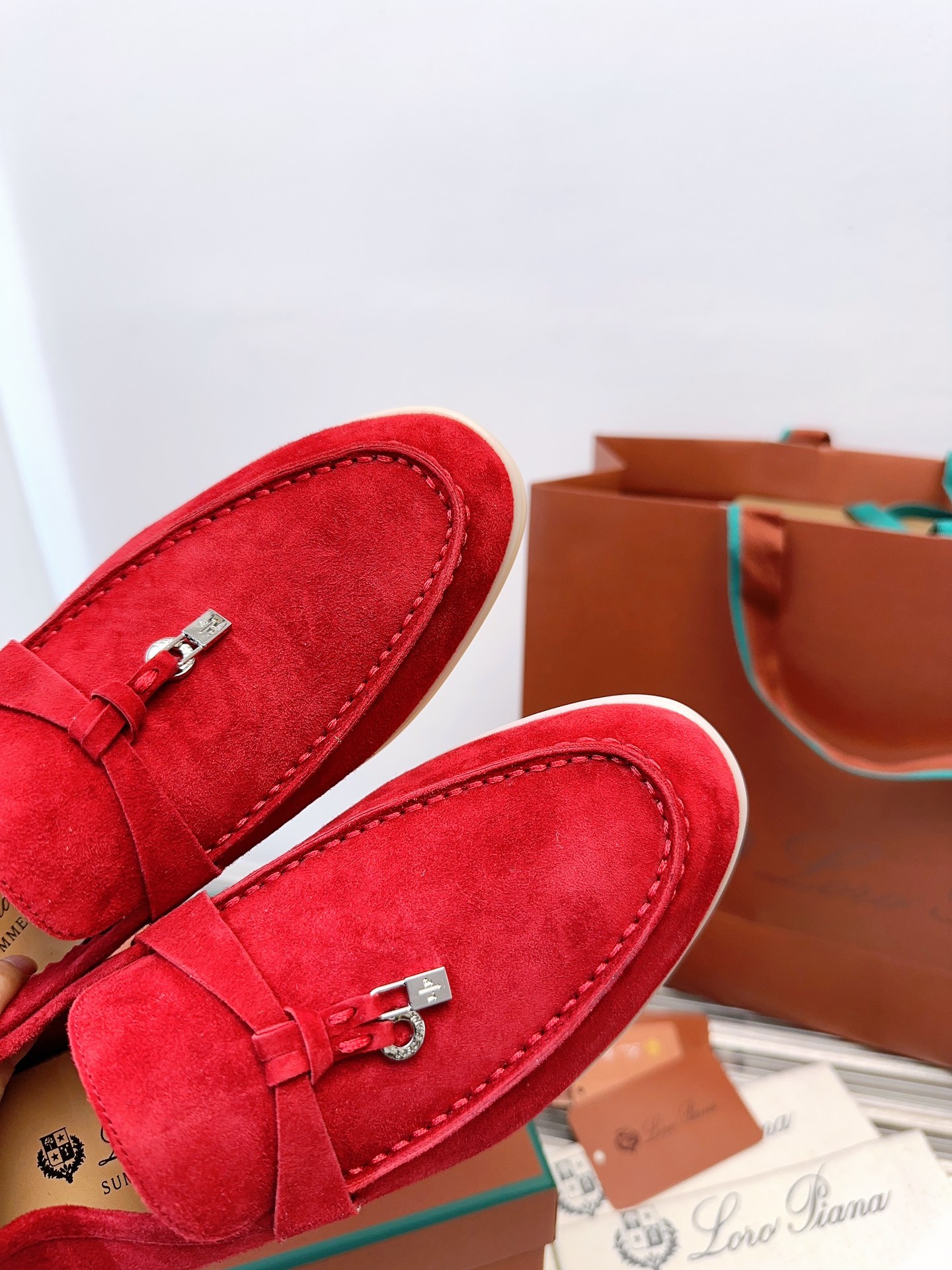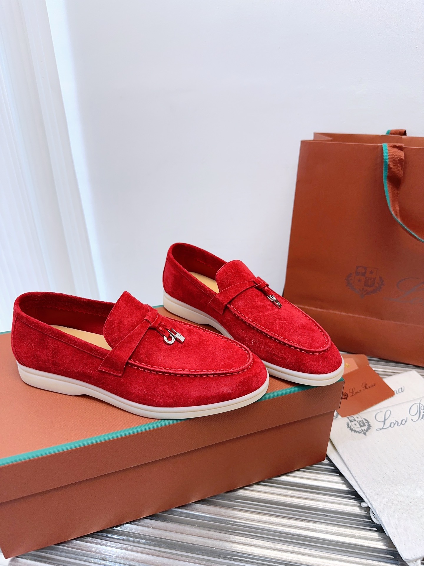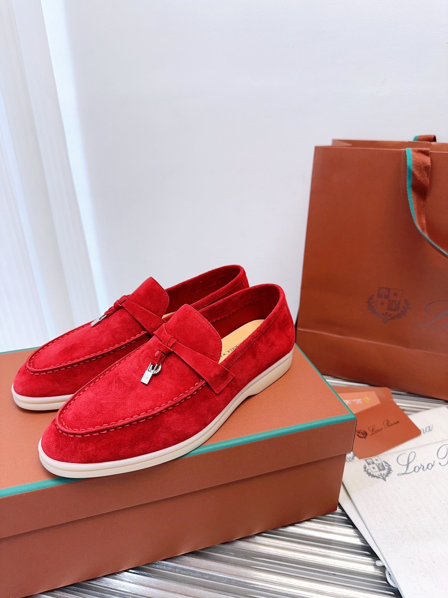 这款鞋子是AAAAA 1:1 质量 (非常棒). 使用了和原版一模一样的材料. 商标部分也保持了和洛罗皮亚纳/Loro Piana一样. 图片拍摄是实物鞋子拍摄, 您所收到的实物保证和我们图片一模一样.
