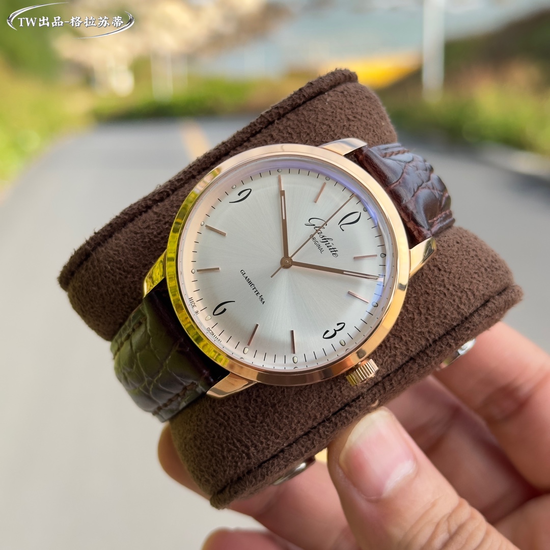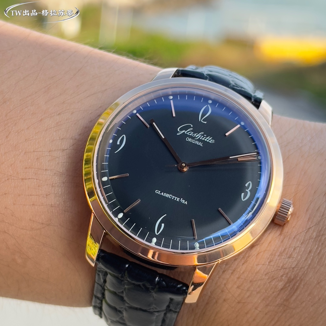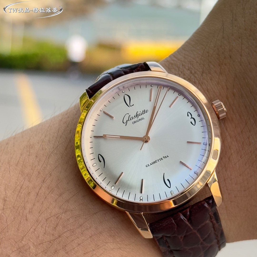 这款手表是AAAAA 1:1 质量 (非常棒). 使用了和原版一模一样的材料. 商标部分也保持了和格拉苏蒂/Glashütte Original一样. 图片拍摄是实物手表拍摄, 您所收到的实物保证和我们图片一模一样.