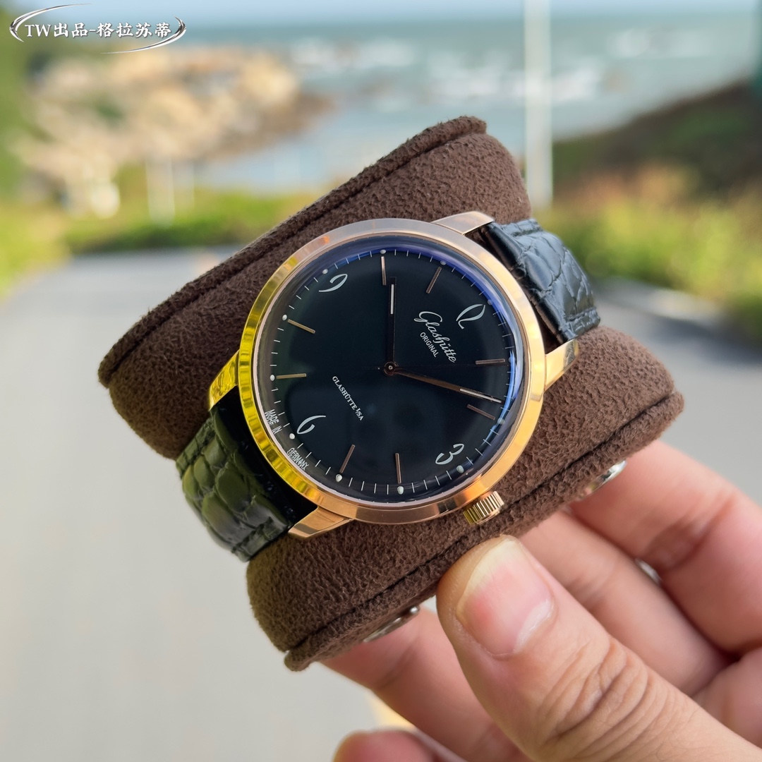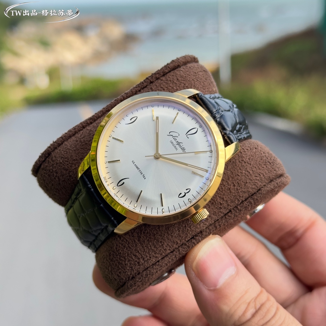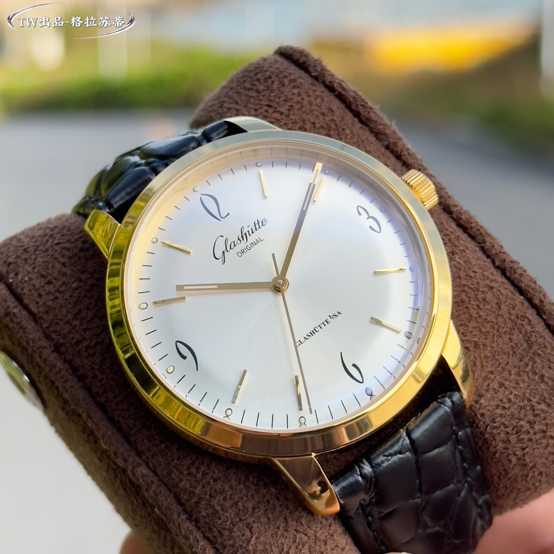 这款手表是AAAAA 1:1 质量 (非常棒). 使用了和原版一模一样的材料. 商标部分也保持了和格拉苏蒂/Glashütte Original一样. 图片拍摄是实物手表拍摄, 您所收到的实物保证和我们图片一模一样.