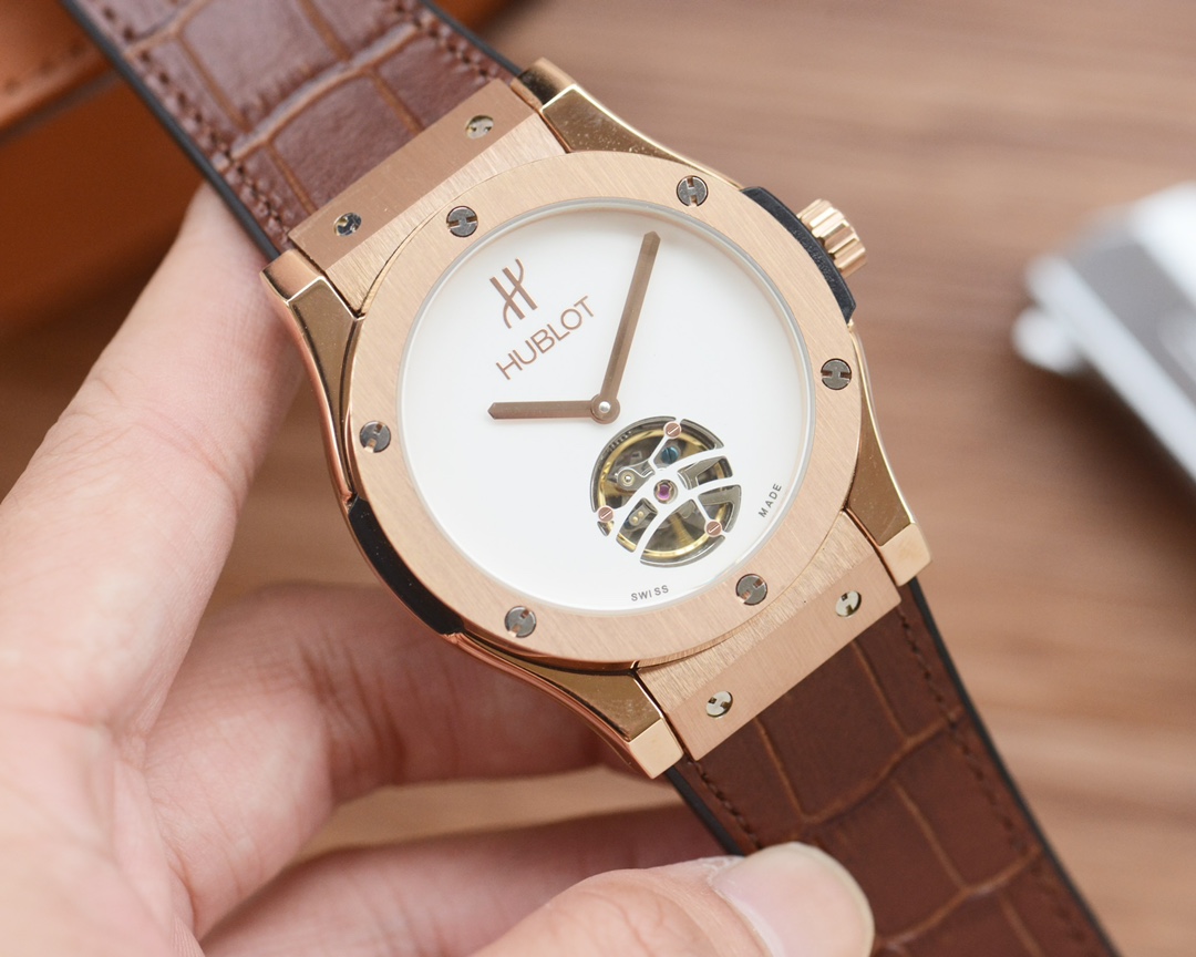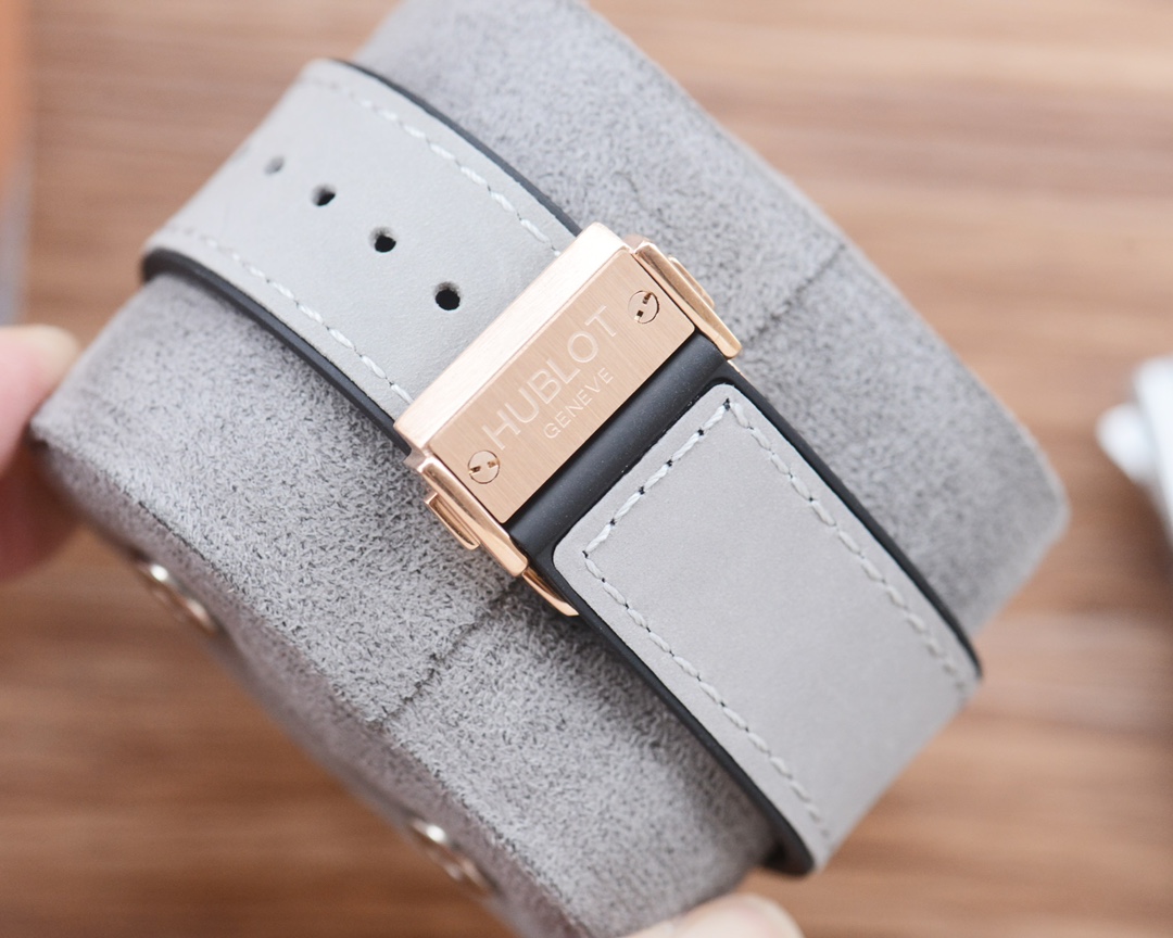 这款手表是AAAAA 1:1 质量 (非常棒). 使用了和原版一模一样的材料. 商标部分也保持了和Hublot一样. 图片拍摄是实物手表拍摄, 您所收到的实物保证和我们图片一模一样.