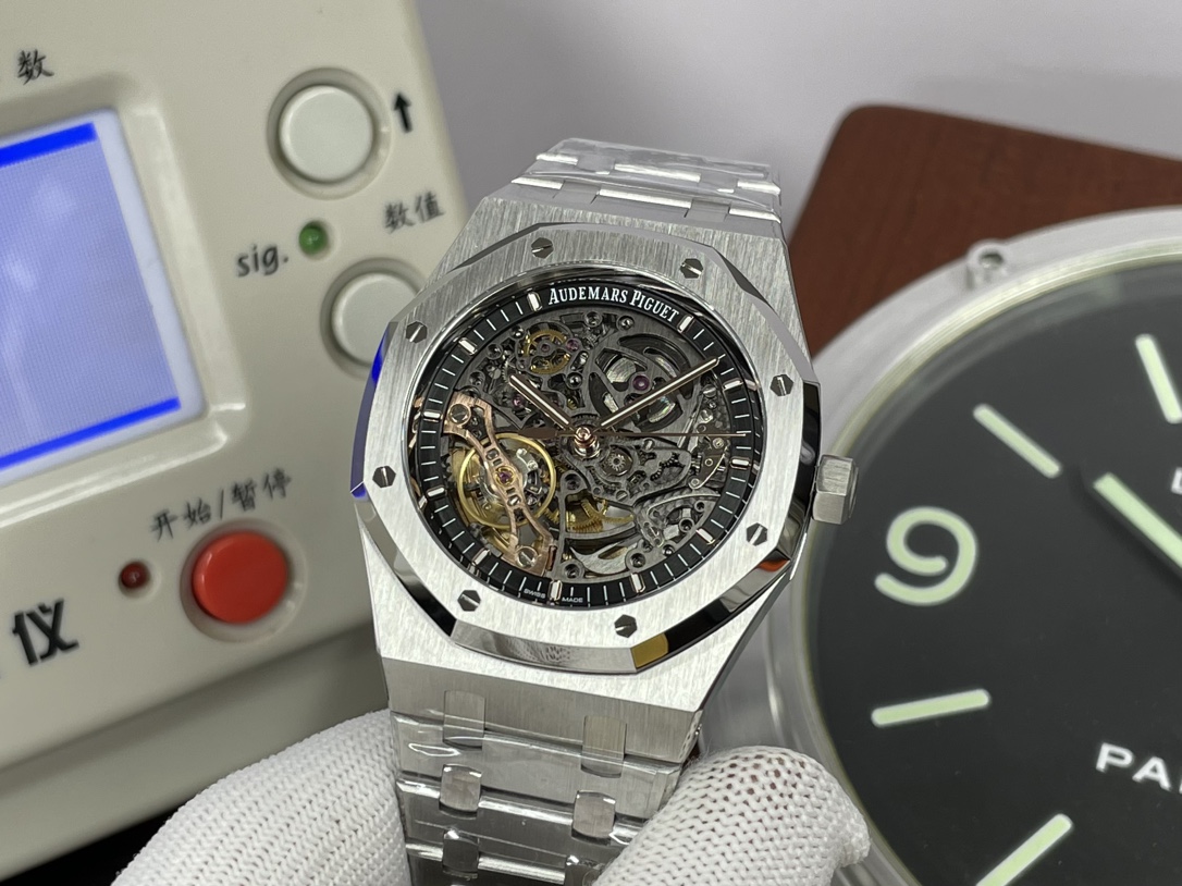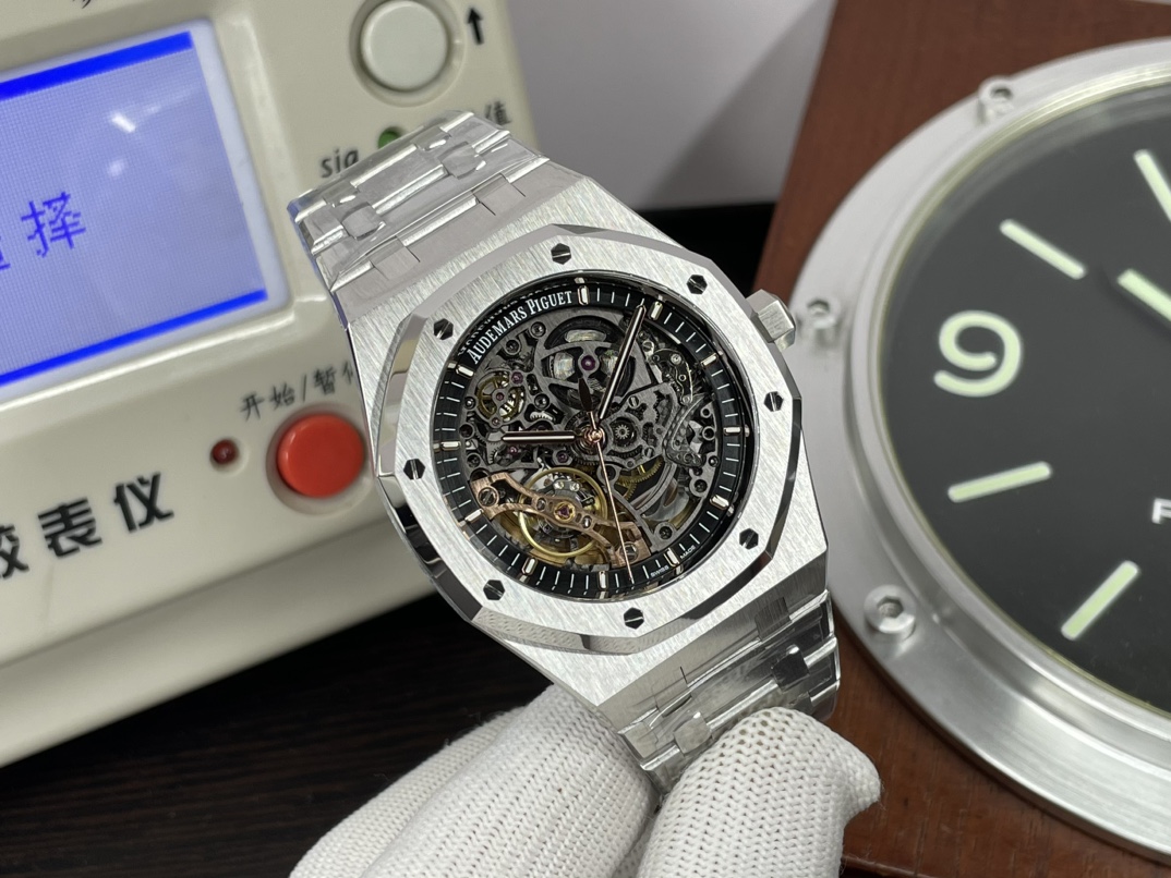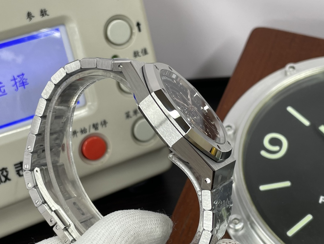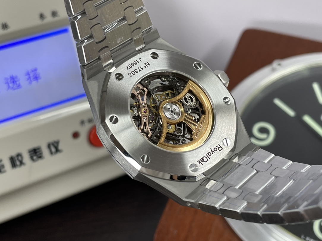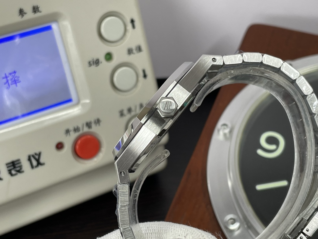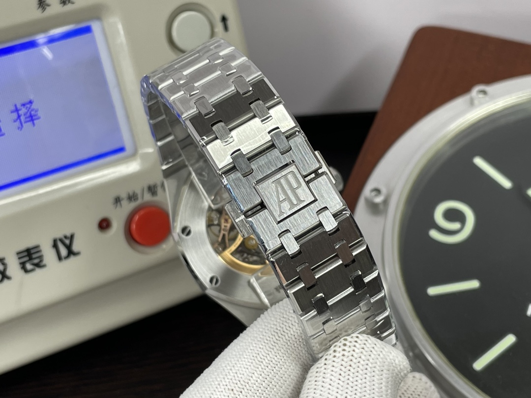 这款手表是AAAAA 1:1 质量 (非常棒). 使用了和原版一模一样的材料. 商标部分也保持了和爱彼/Audemars Piguet一样. 图片拍摄是实物手表拍摄, 您所收到的实物保证和我们图片一模一样.