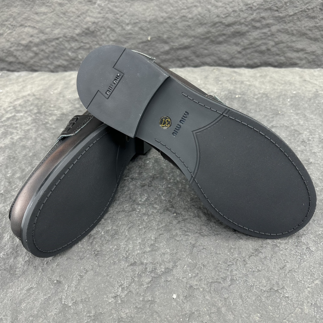 这款鞋子是AAAAA 1:1 质量 (非常棒). 使用了和原版一模一样的材料. 商标部分也保持了和缪缪/Miu Miu一样. 图片拍摄是实物鞋子拍摄, 您所收到的实物保证和我们图片一模一样.