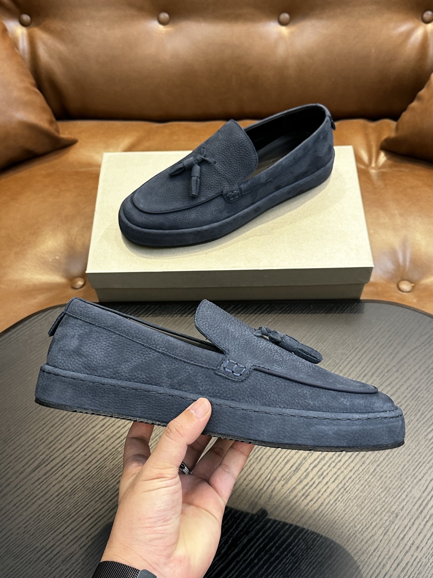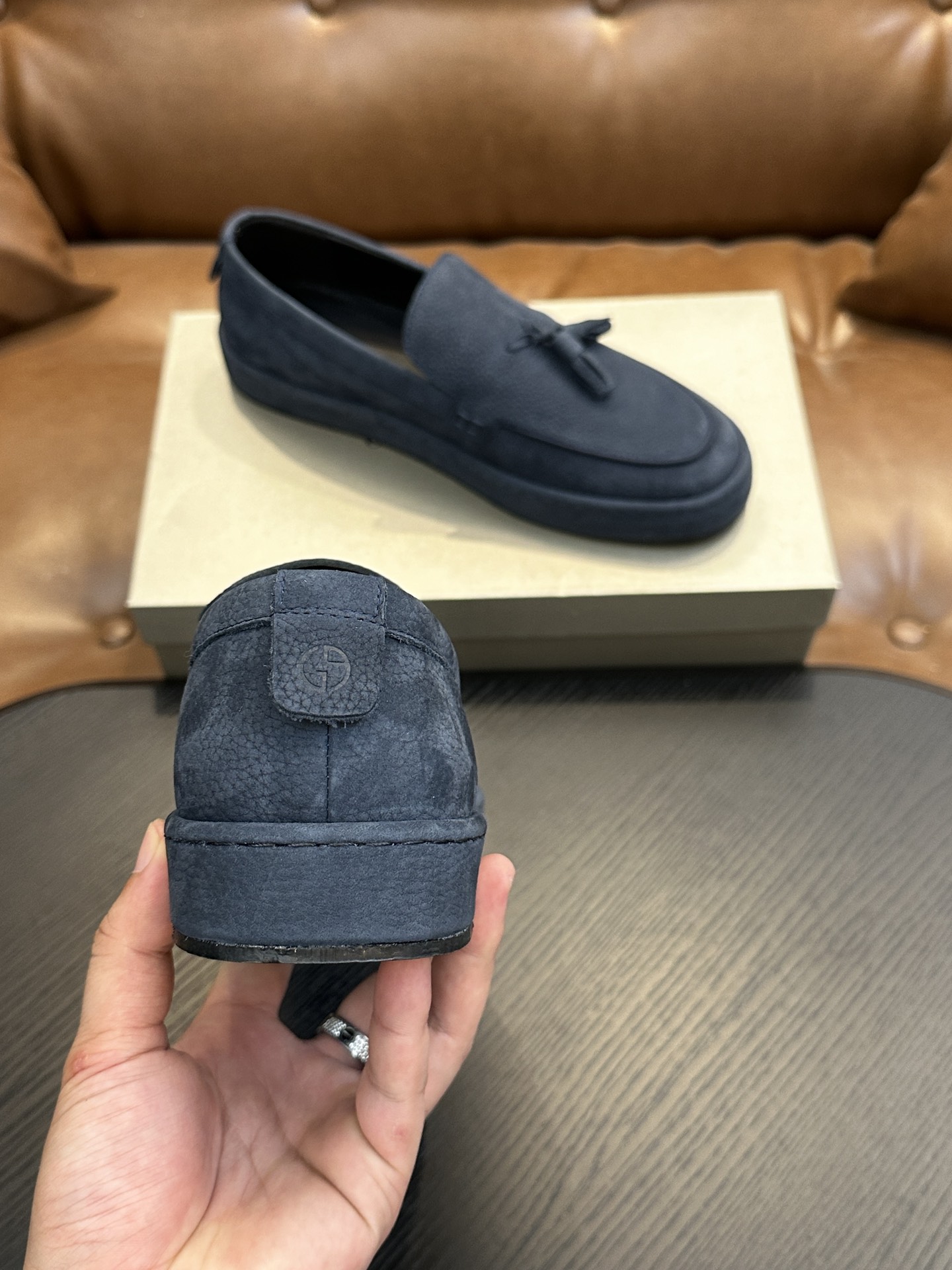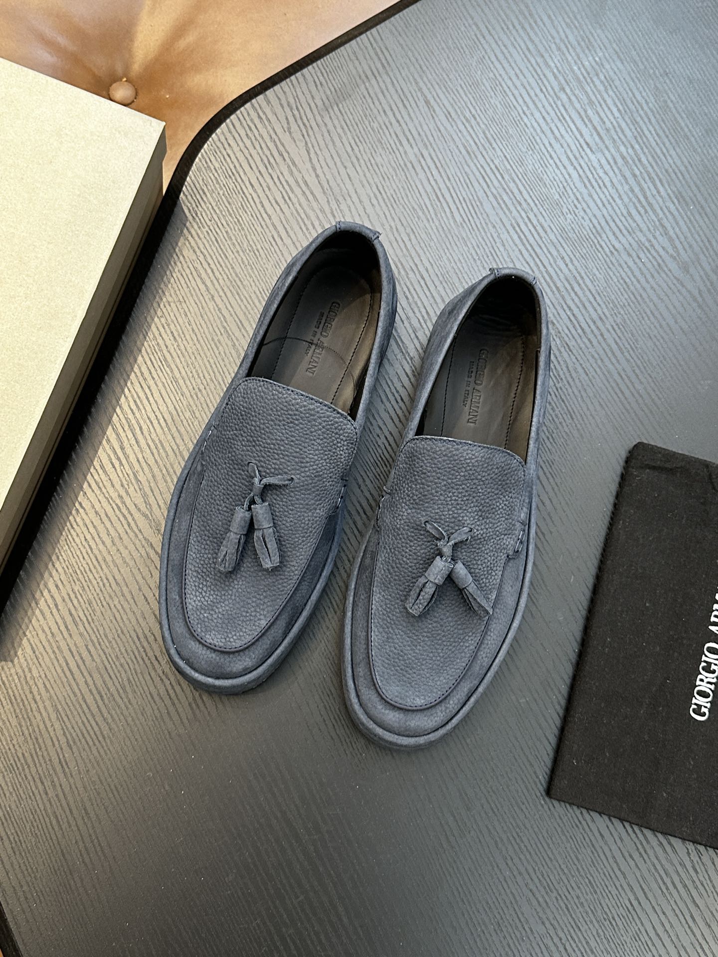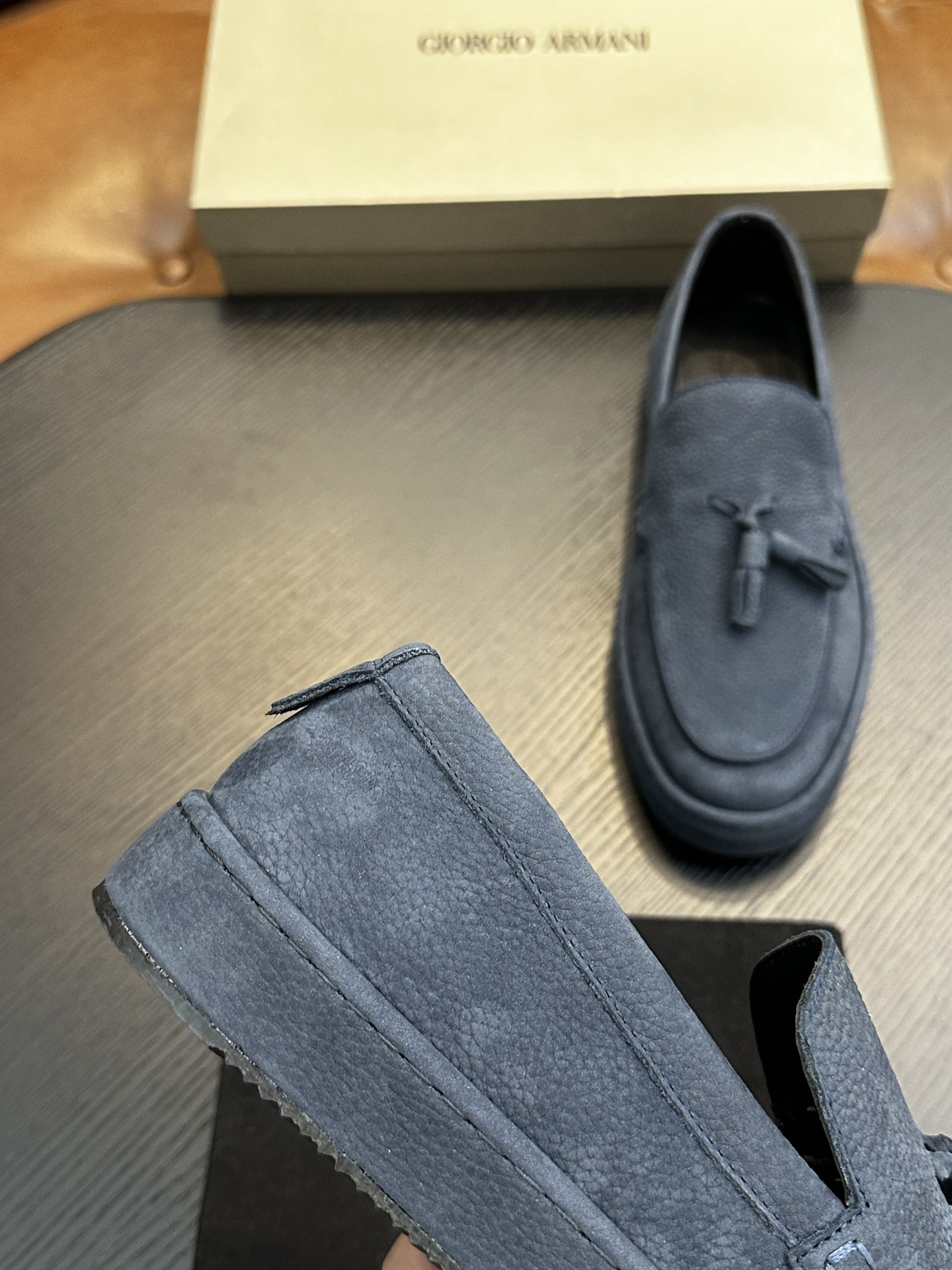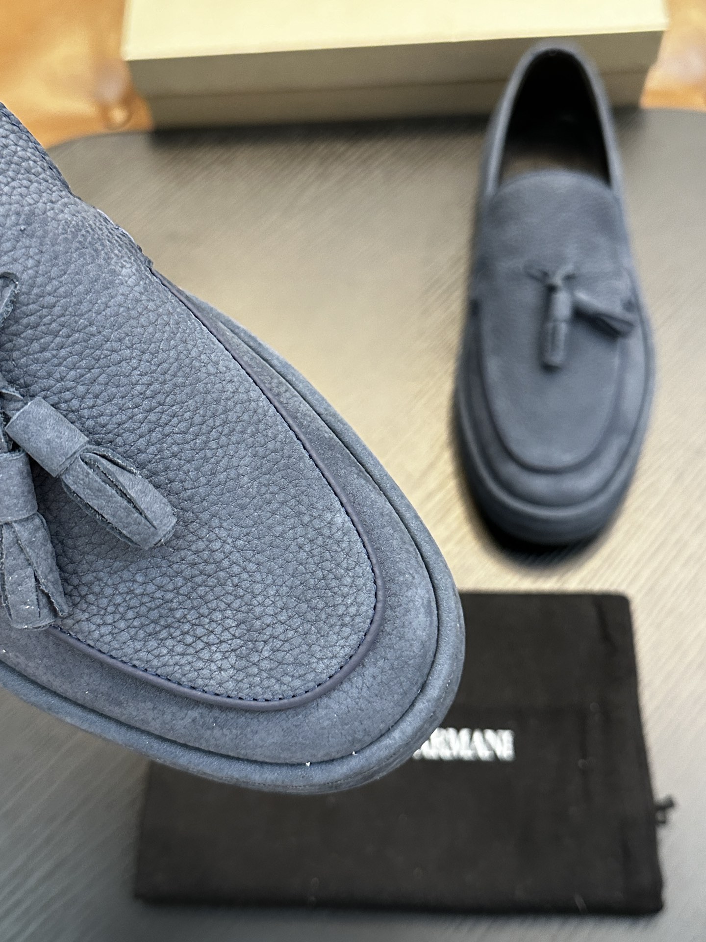 这款鞋子是AAAAA 1:1 质量 (非常棒). 使用了和原版一模一样的材料. 商标部分也保持了和阿玛尼/Armani一样. 图片拍摄是实物鞋子拍摄, 您所收到的实物保证和我们图片一模一样.