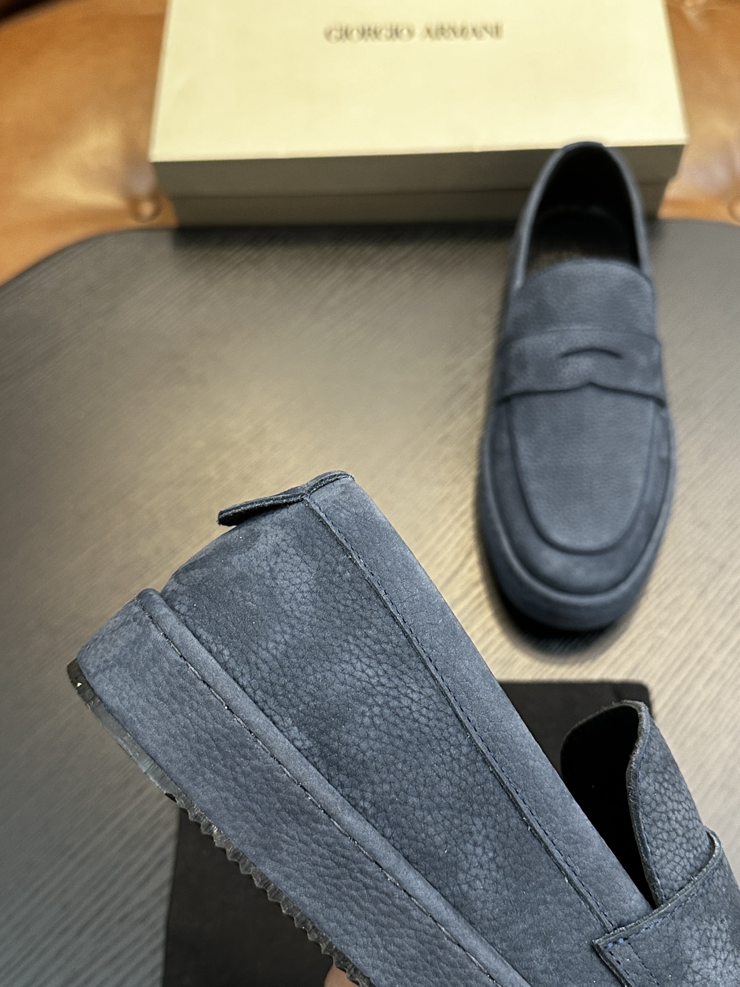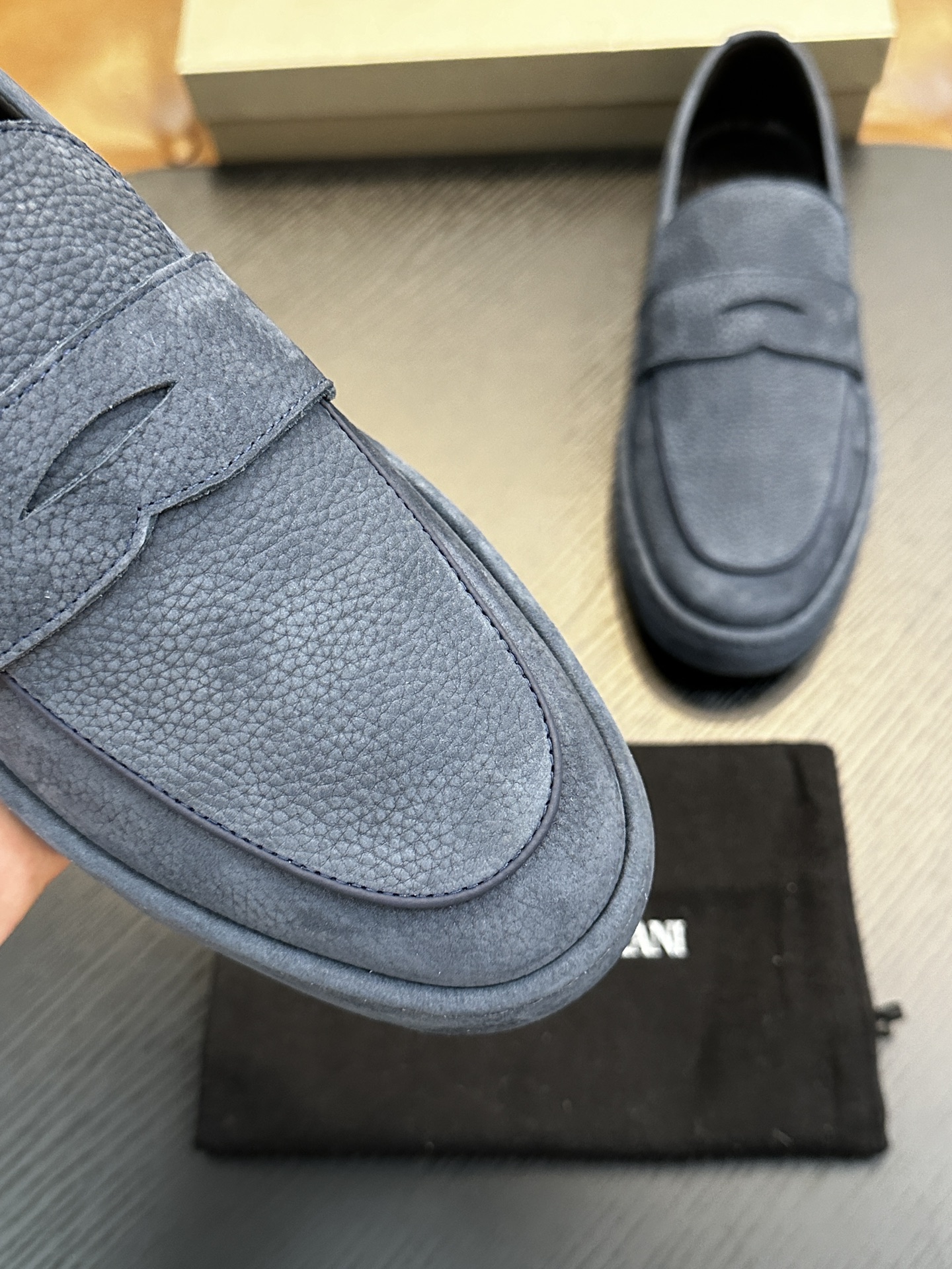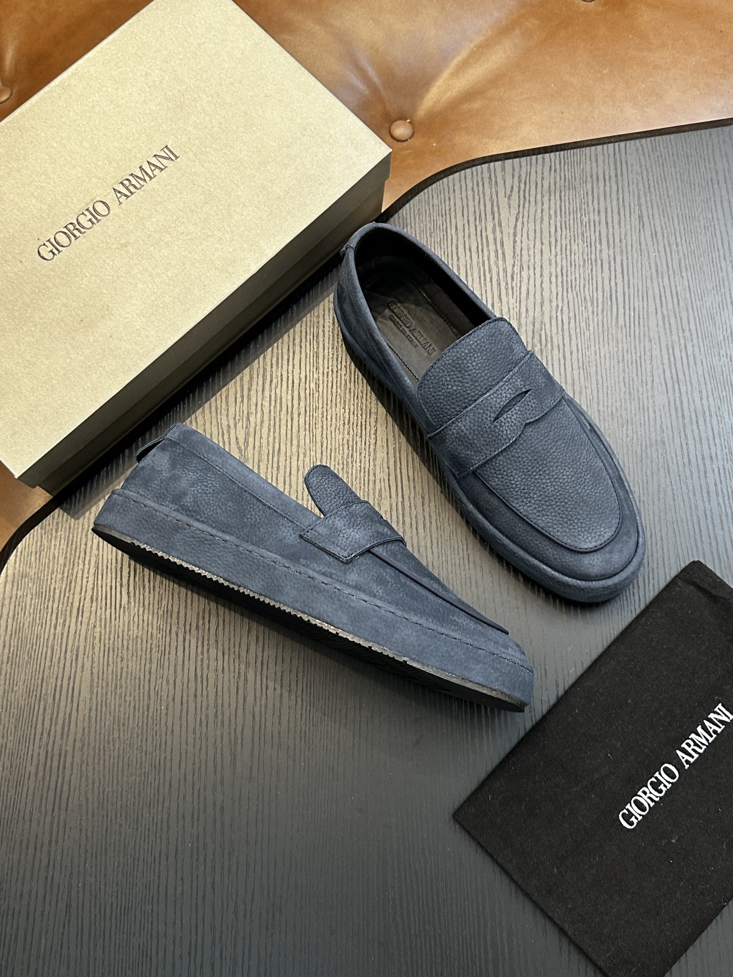 这款鞋子是AAAAA 1:1 质量 (非常棒). 使用了和原版一模一样的材料. 商标部分也保持了和阿玛尼/Armani一样. 图片拍摄是实物鞋子拍摄, 您所收到的实物保证和我们图片一模一样.