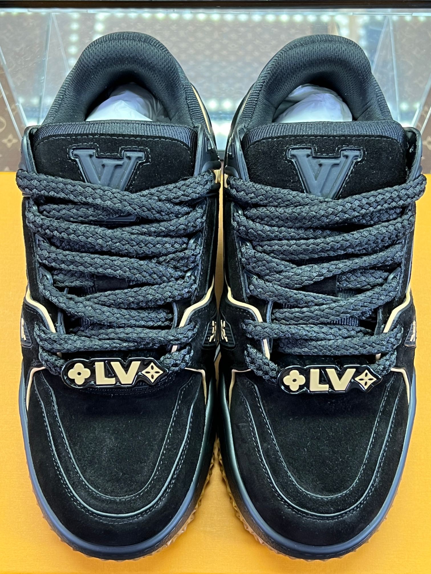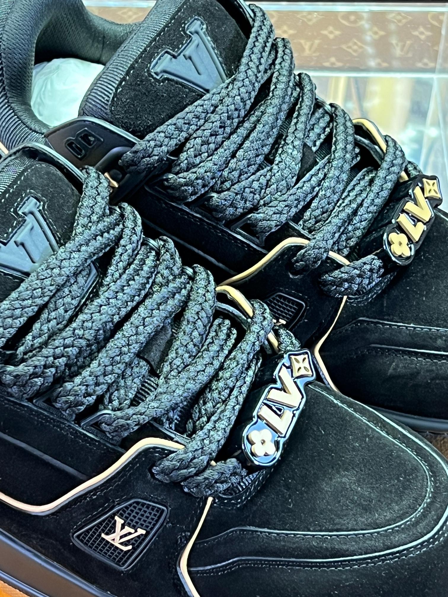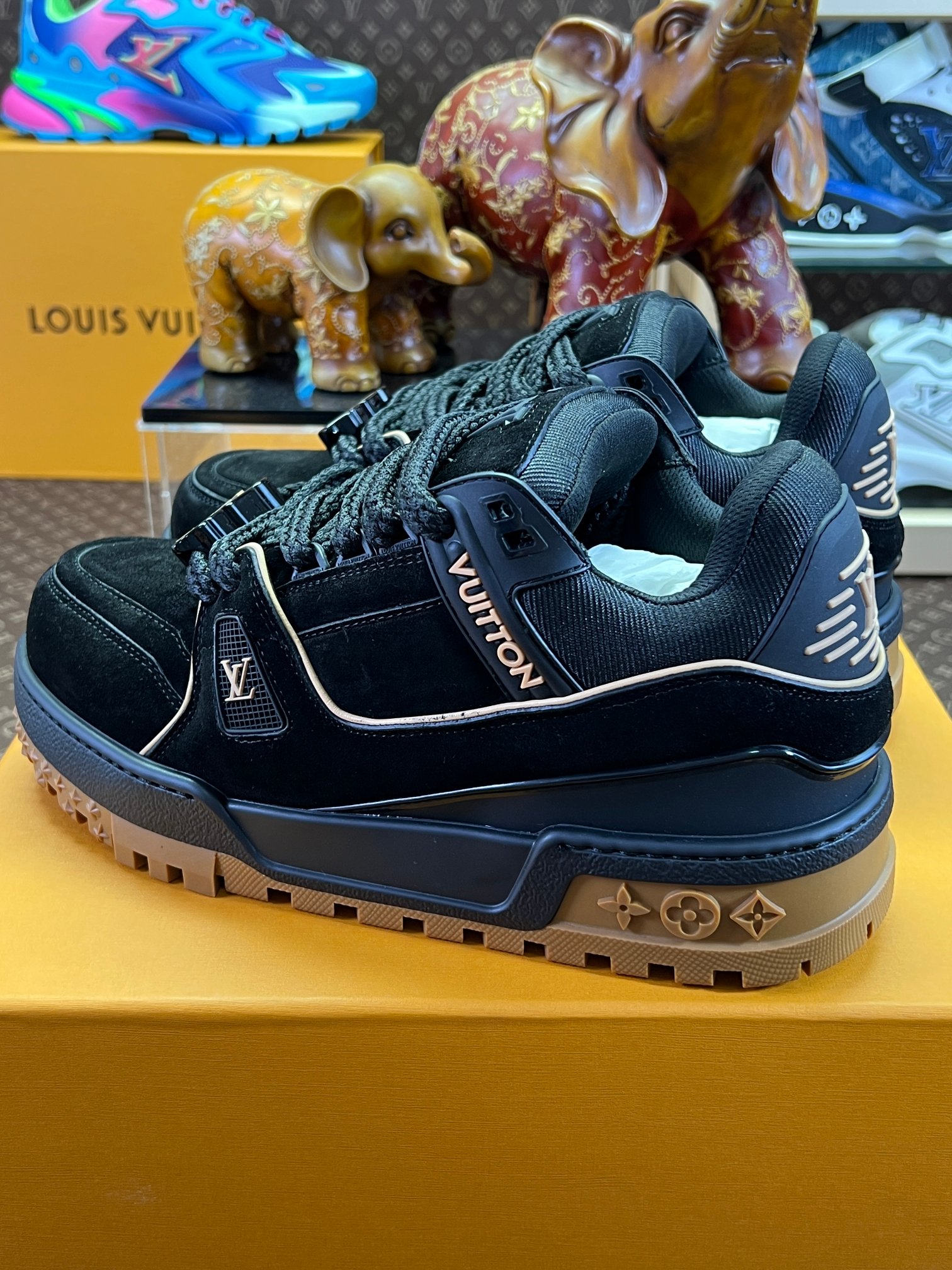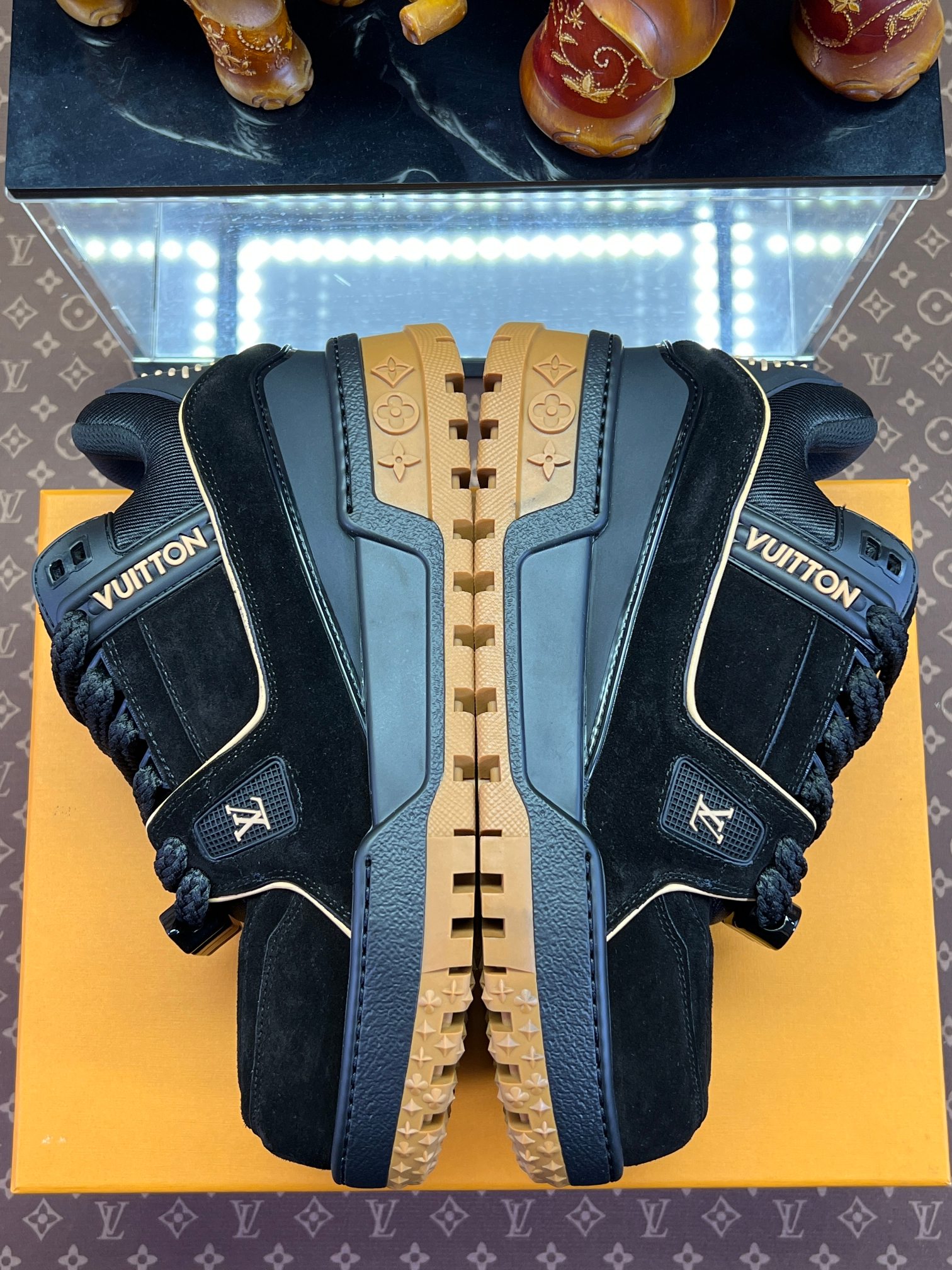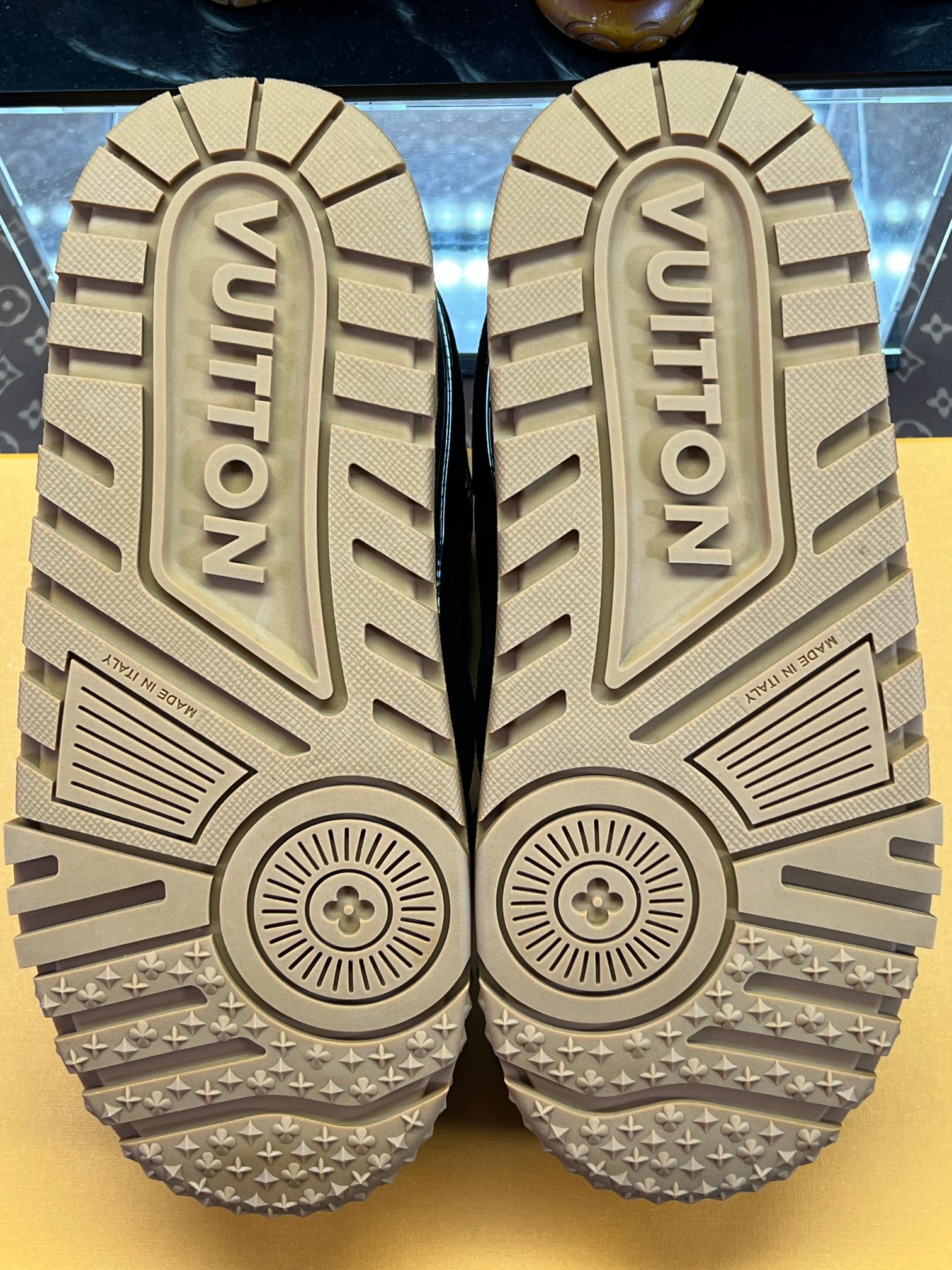 这款鞋子是AAAAA 1:1 质量 (非常棒). 使用了和原版一模一样的材料. 商标部分也保持了和路易威登/Louis Vuitton一样. 图片拍摄是实物鞋子拍摄, 您所收到的实物保证和我们图片一模一样.