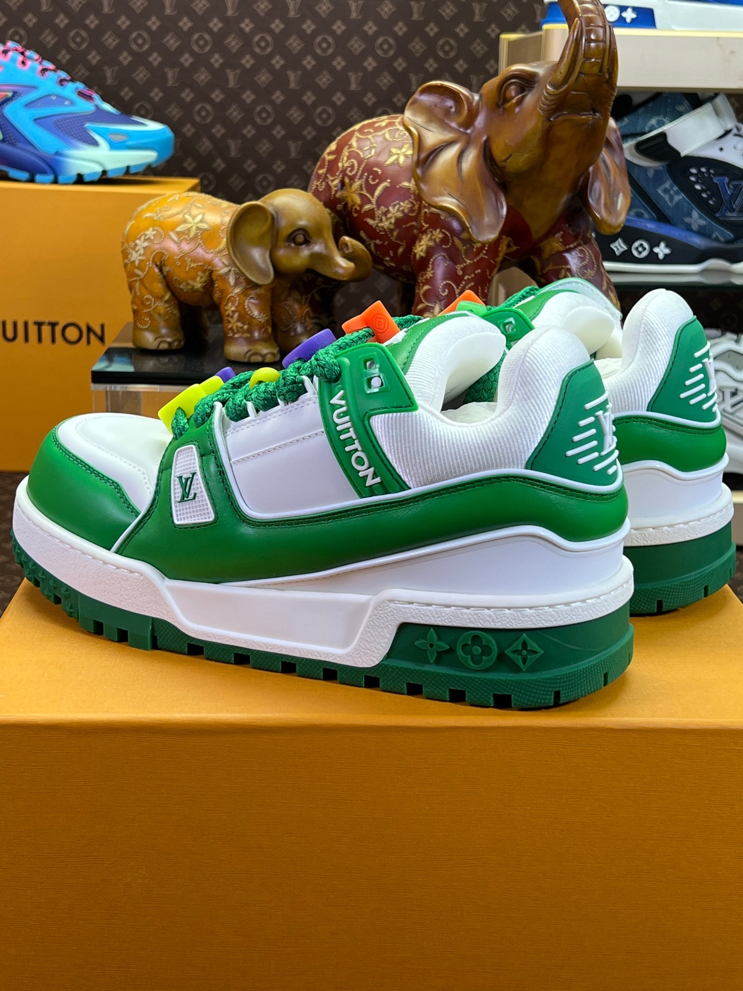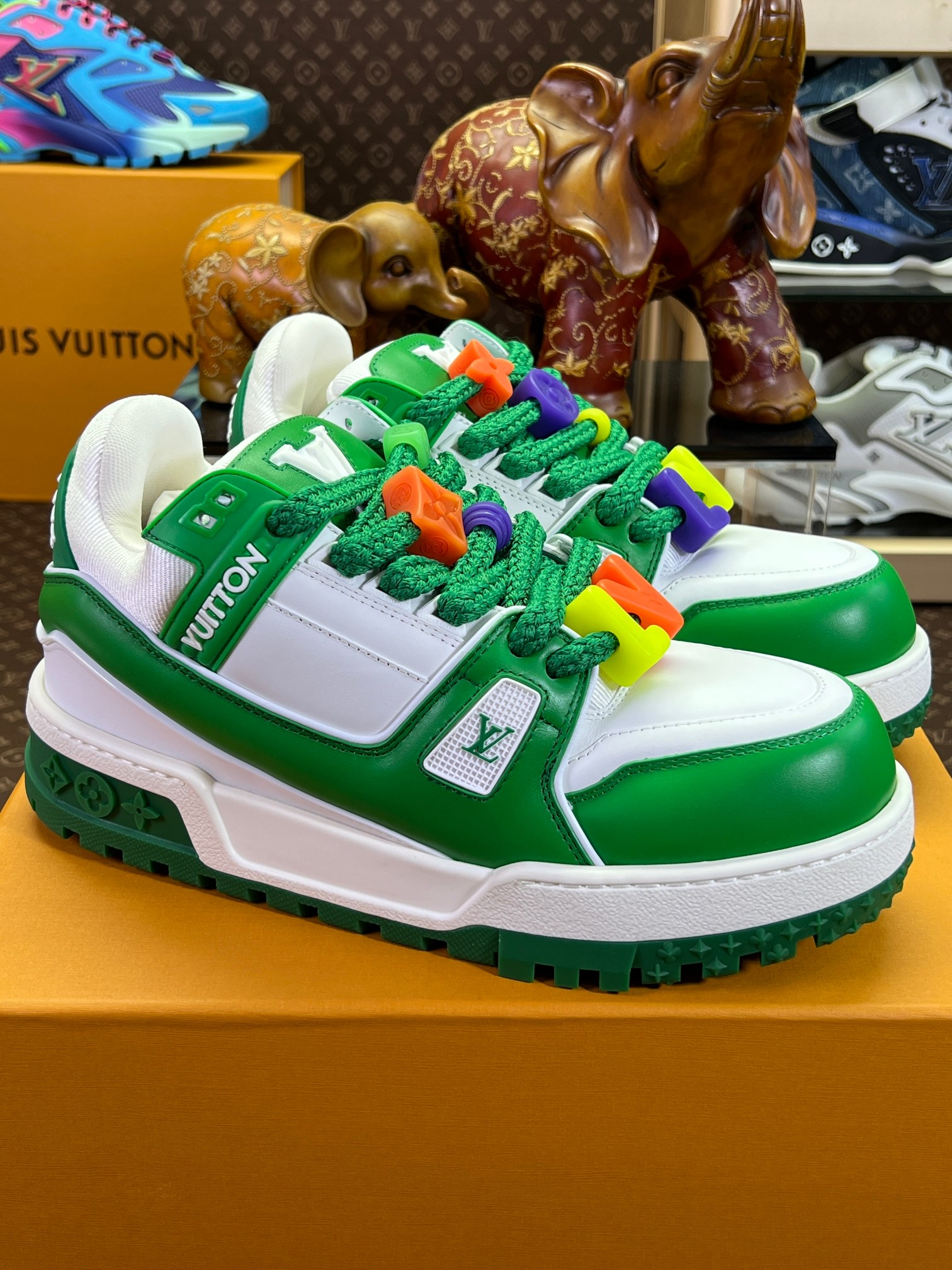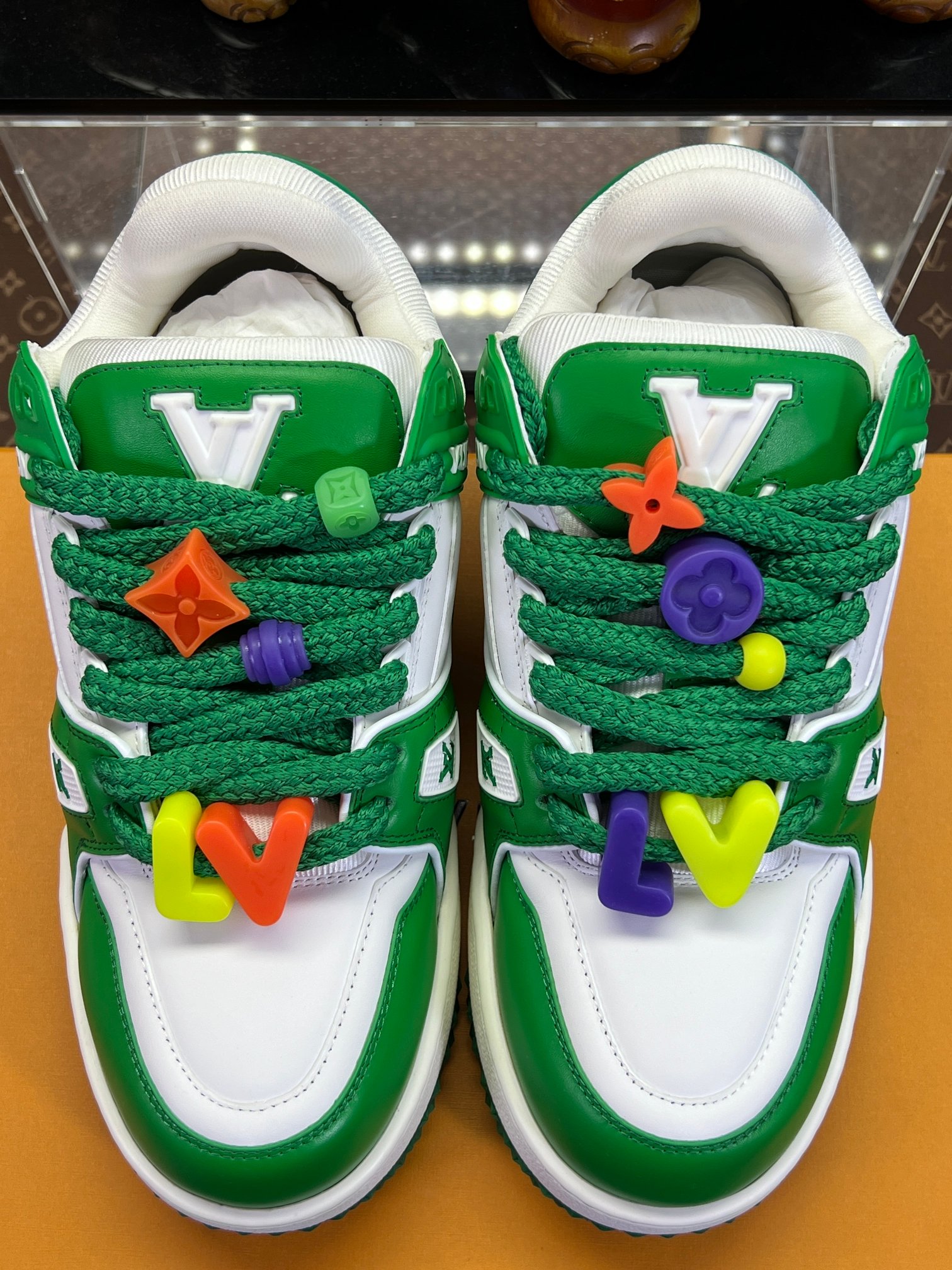 这款鞋子是AAAAA 1:1 质量 (非常棒). 使用了和原版一模一样的材料. 商标部分也保持了和路易威登/Louis Vuitton一样. 图片拍摄是实物鞋子拍摄, 您所收到的实物保证和我们图片一模一样.