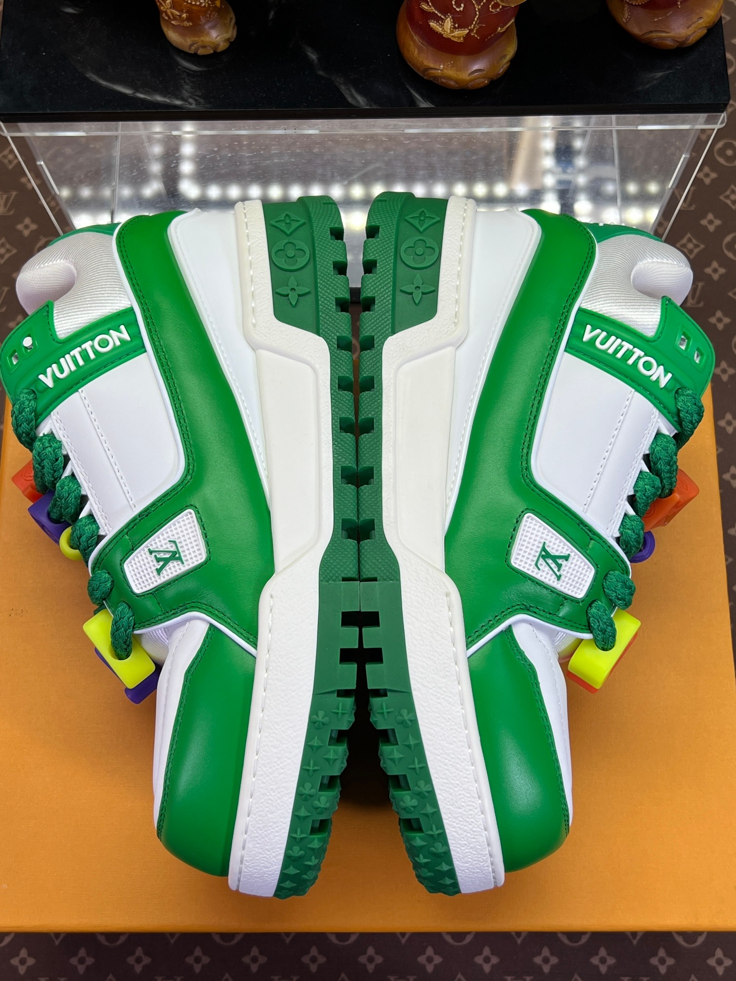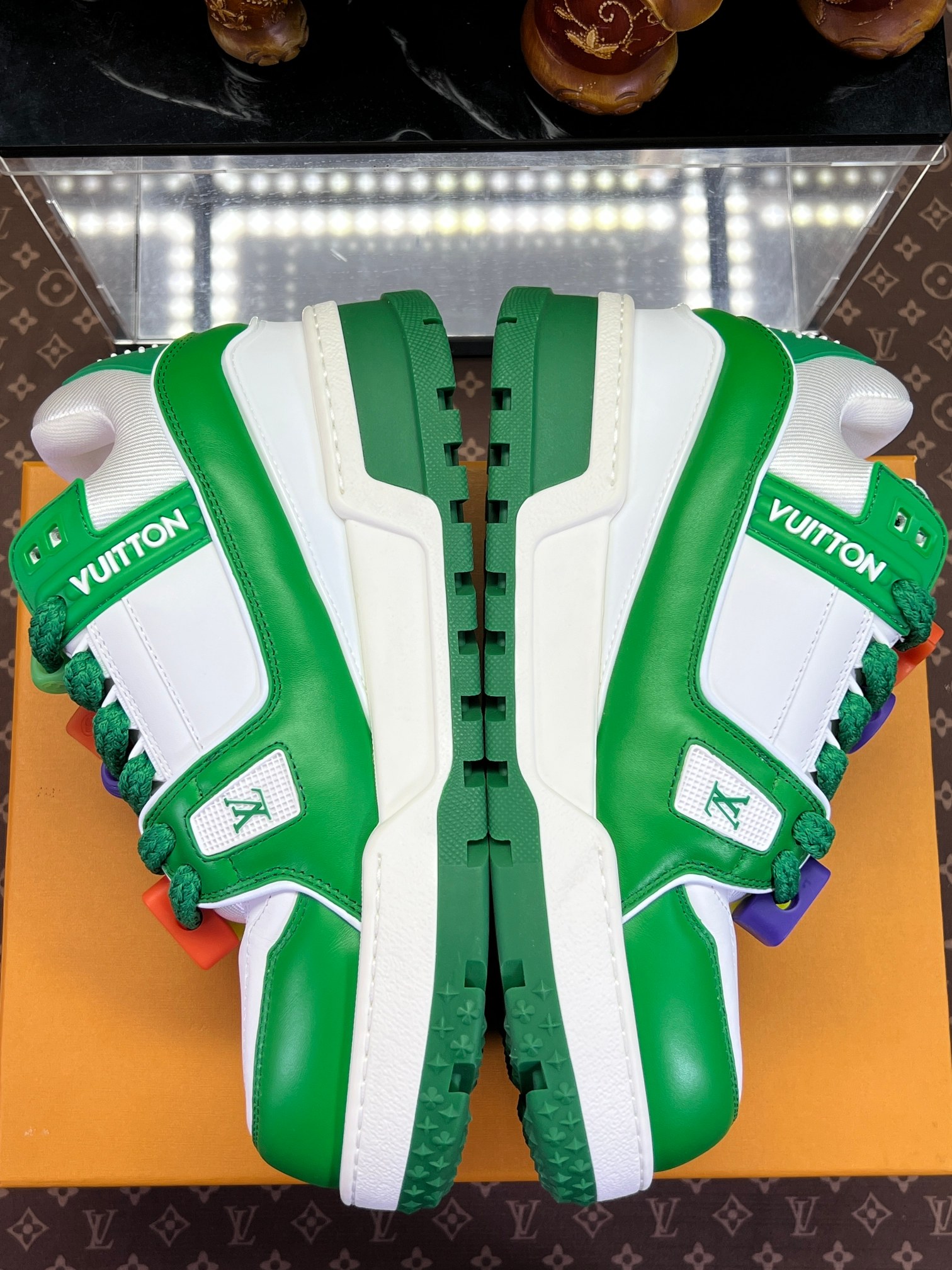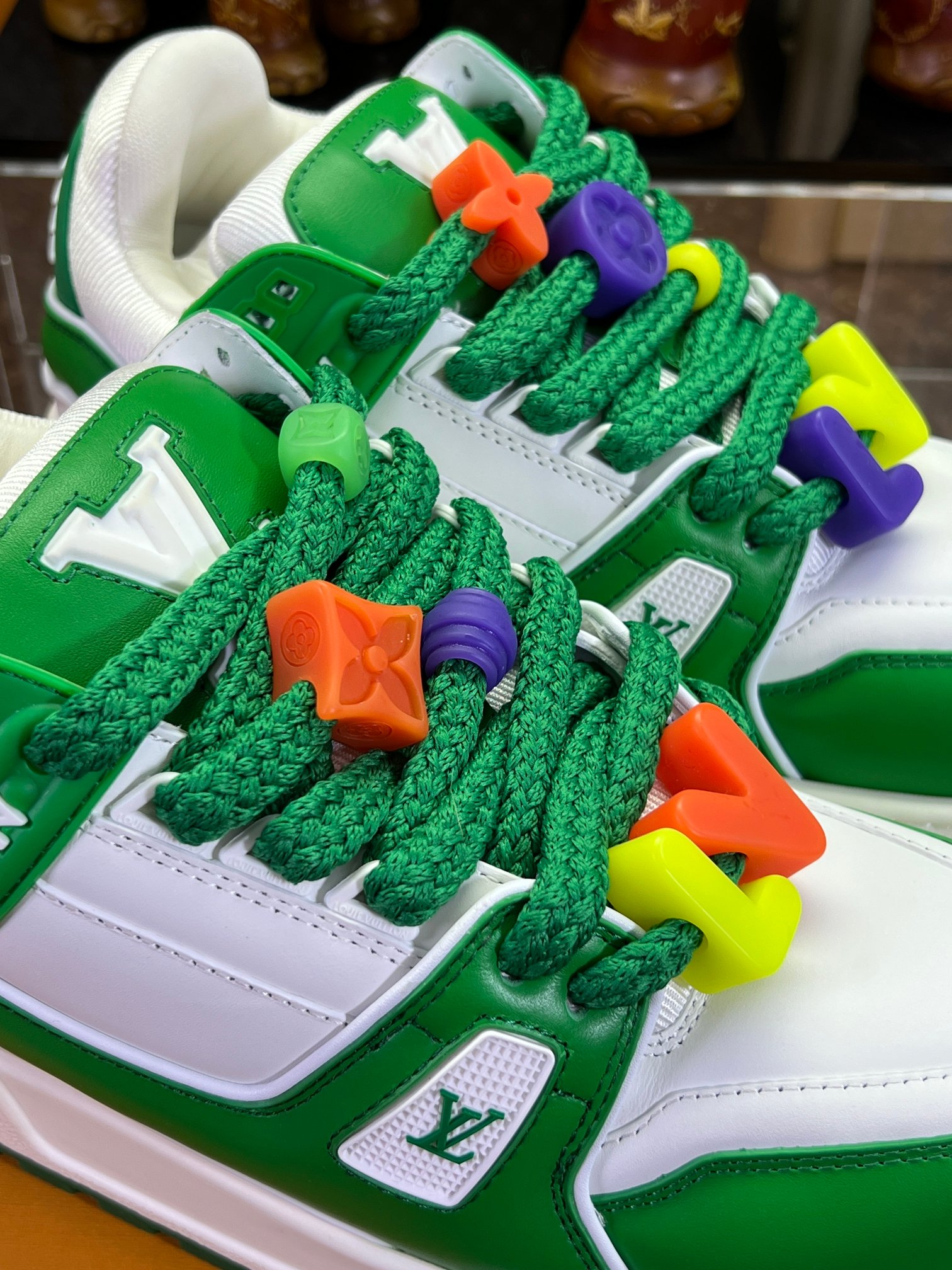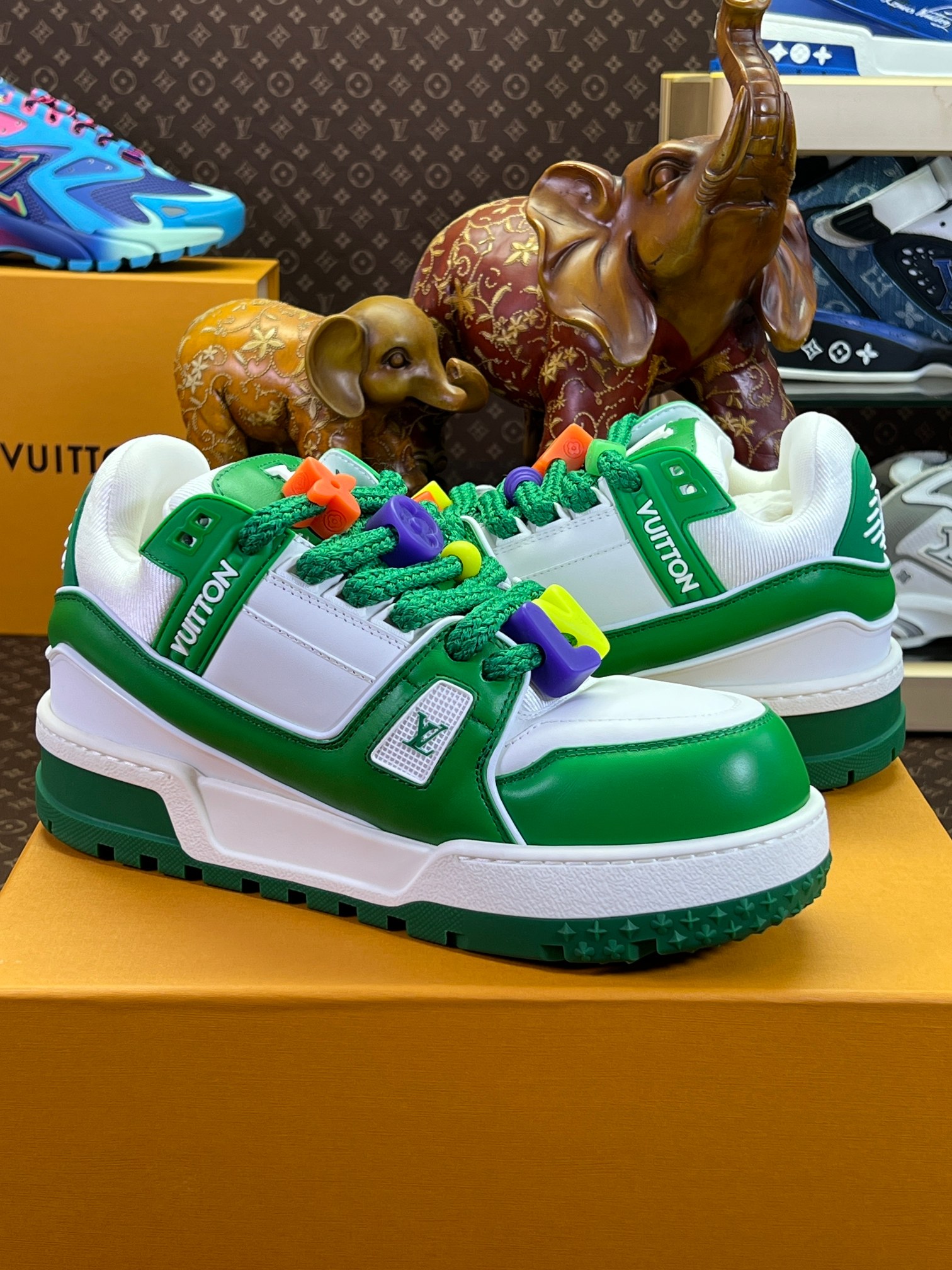 这款鞋子是AAAAA 1:1 质量 (非常棒). 使用了和原版一模一样的材料. 商标部分也保持了和路易威登/Louis Vuitton一样. 图片拍摄是实物鞋子拍摄, 您所收到的实物保证和我们图片一模一样.