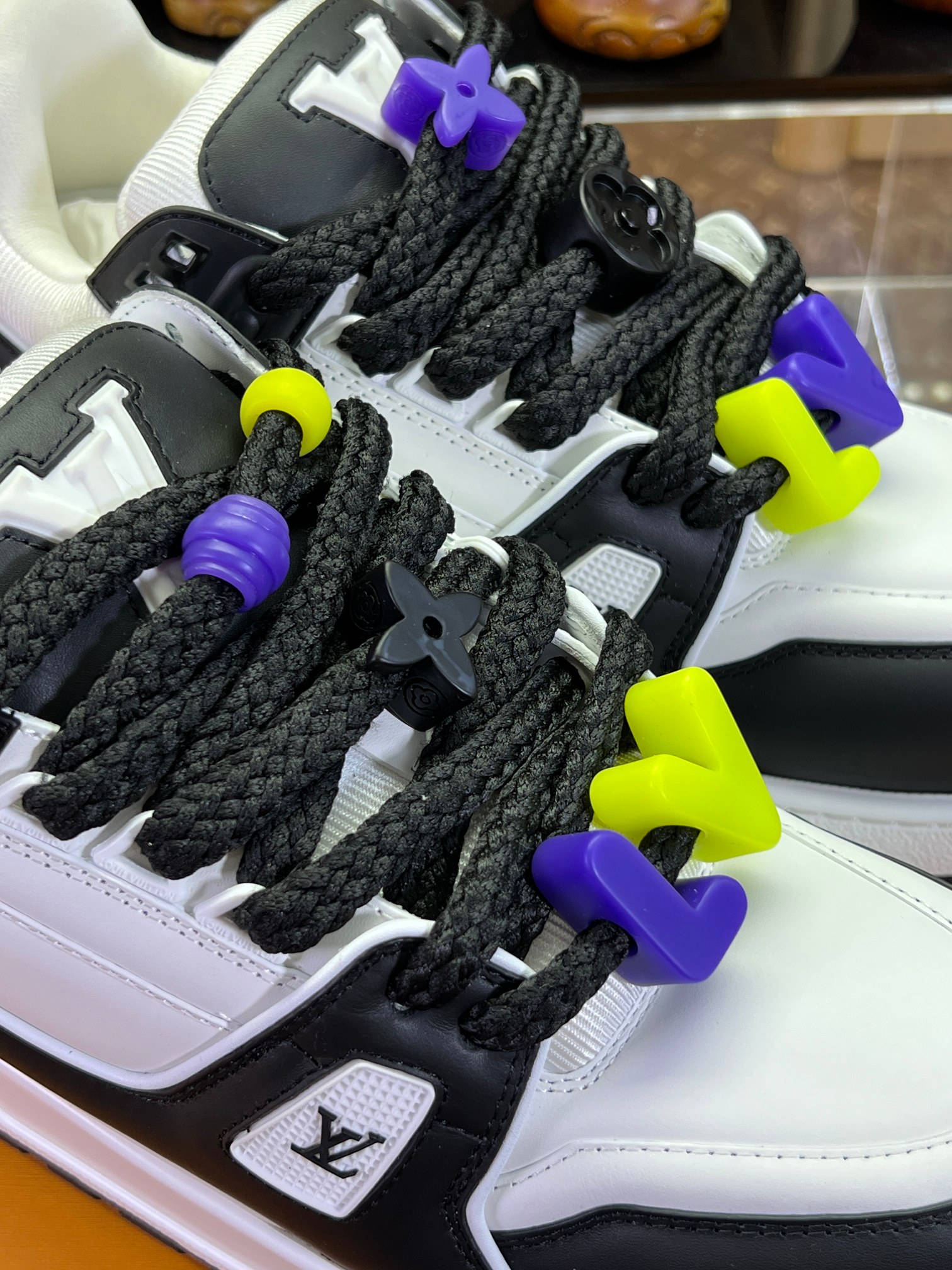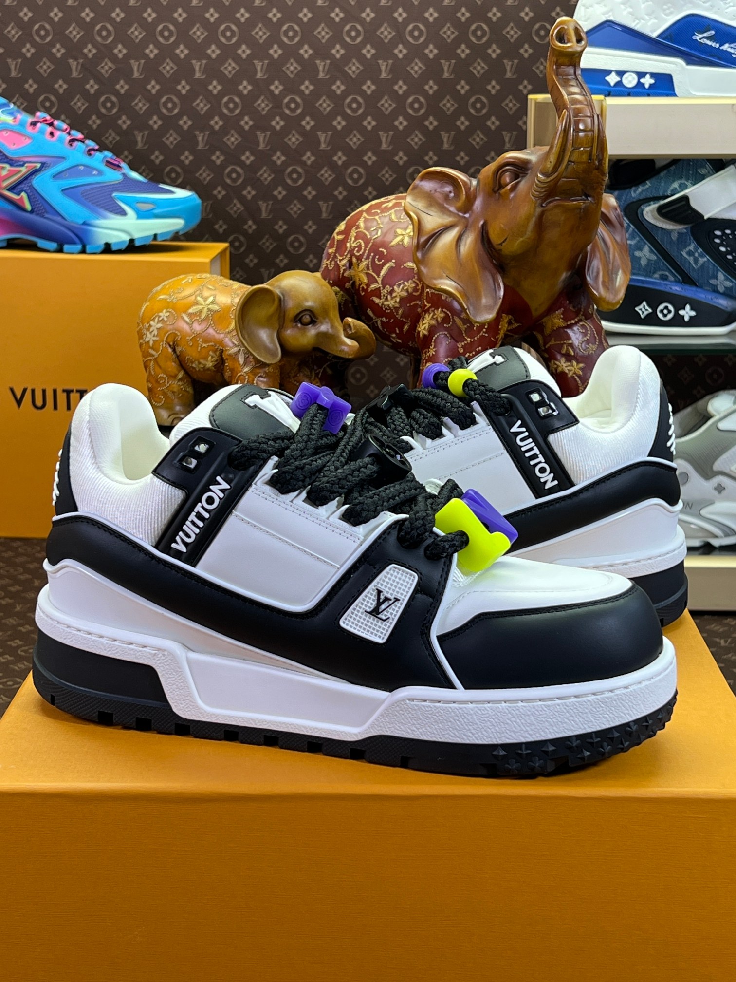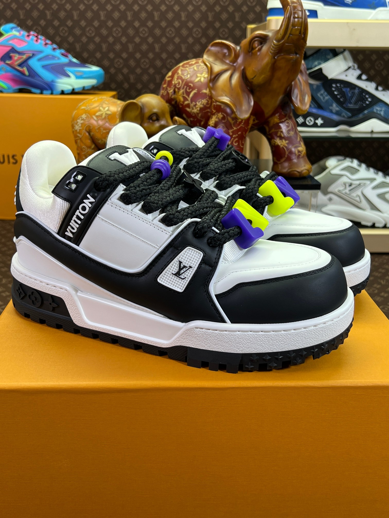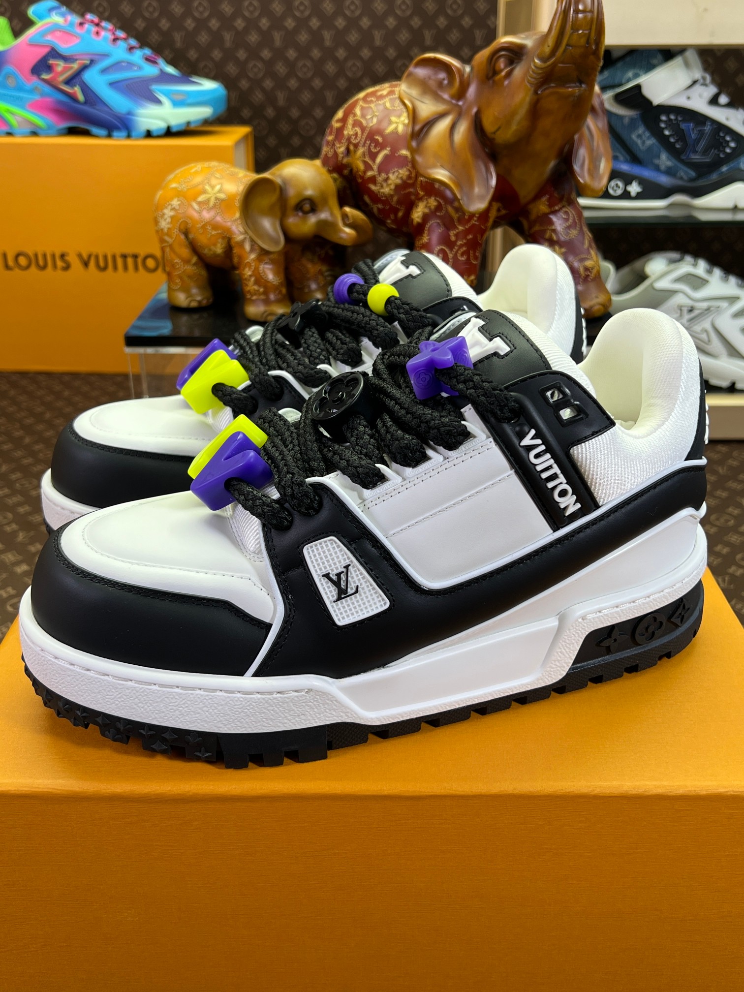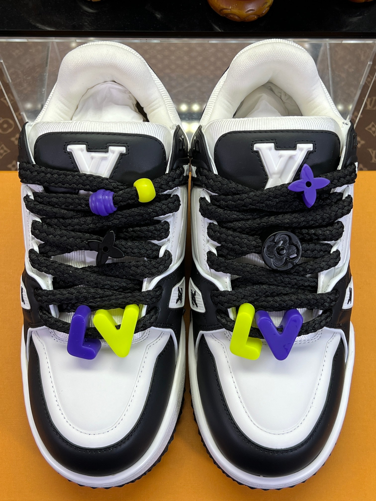 这款鞋子是AAAAA 1:1 质量 (非常棒). 使用了和原版一模一样的材料. 商标部分也保持了和路易威登/Louis Vuitton一样. 图片拍摄是实物鞋子拍摄, 您所收到的实物保证和我们图片一模一样.