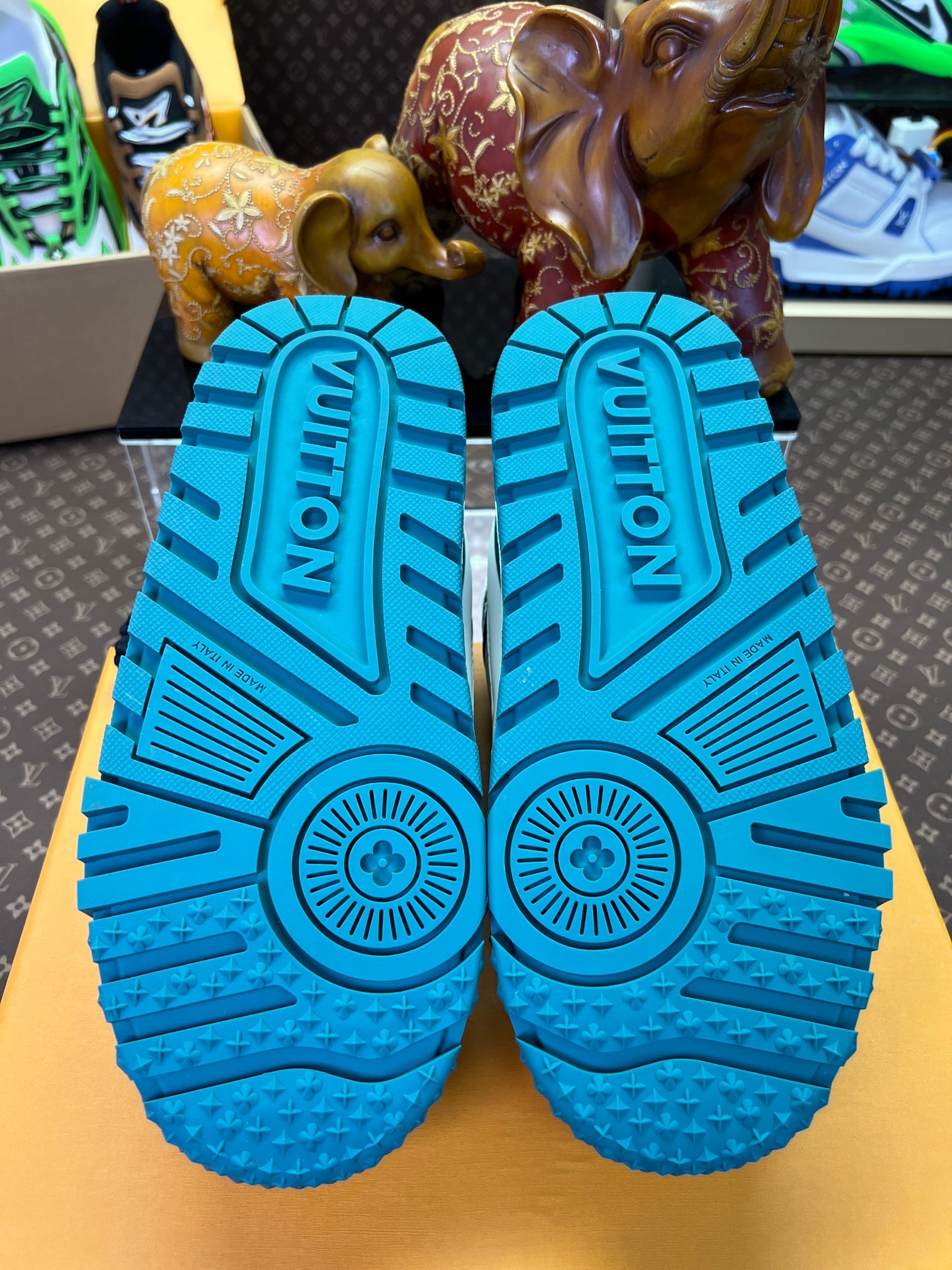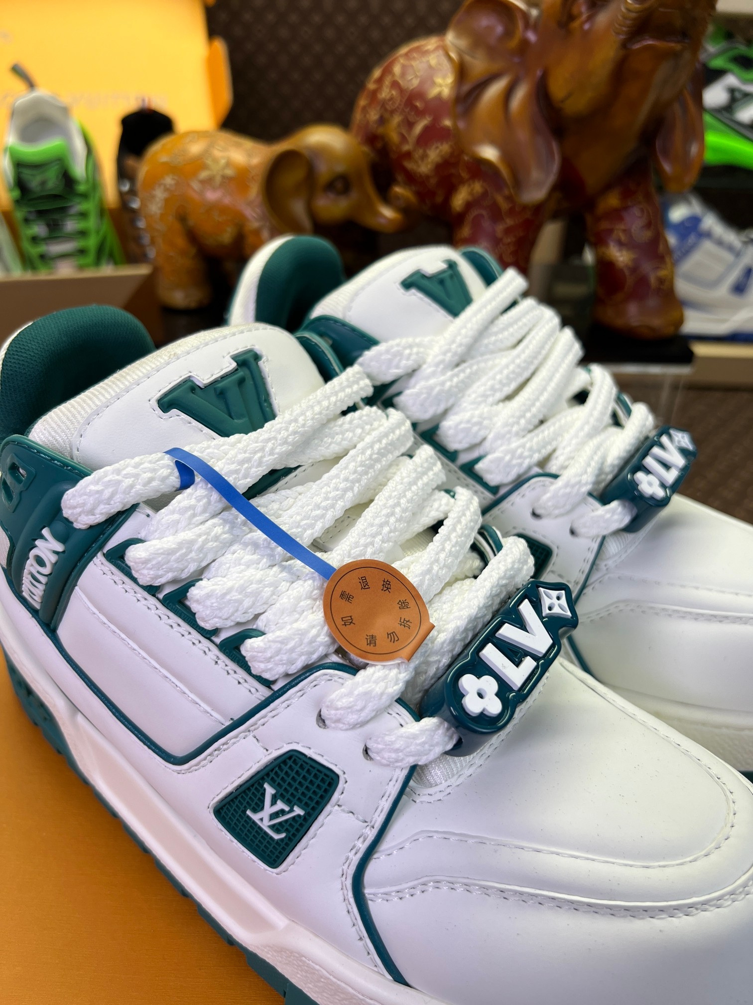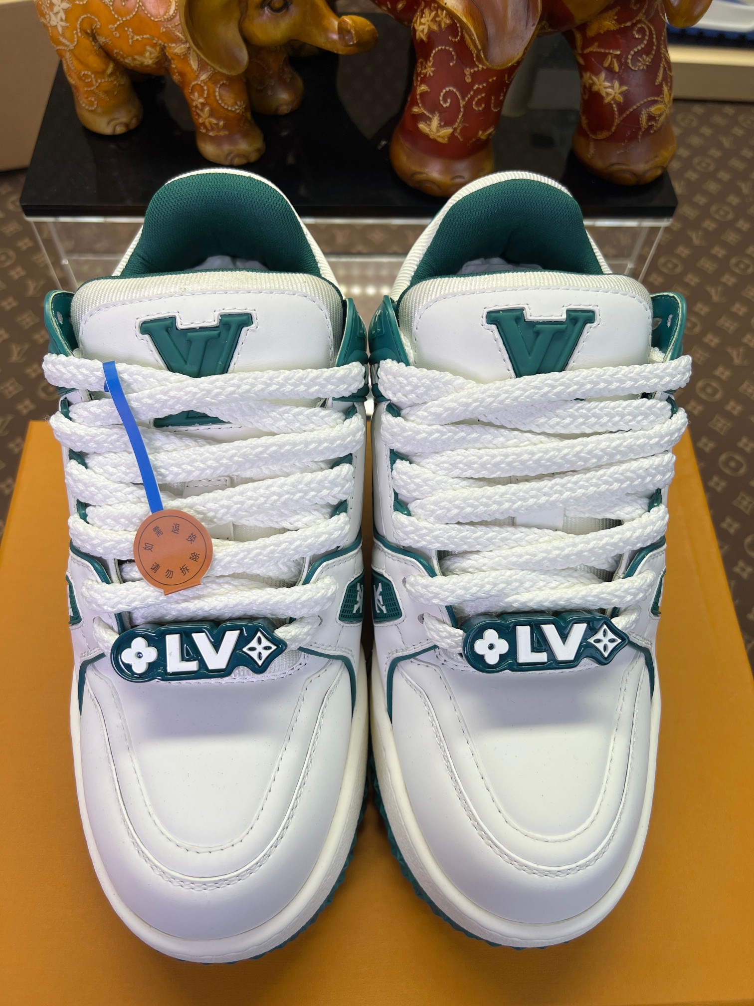 这款鞋子是AAAAA 1:1 质量 (非常棒). 使用了和原版一模一样的材料. 商标部分也保持了和路易威登/Louis Vuitton一样. 图片拍摄是实物鞋子拍摄, 您所收到的实物保证和我们图片一模一样.