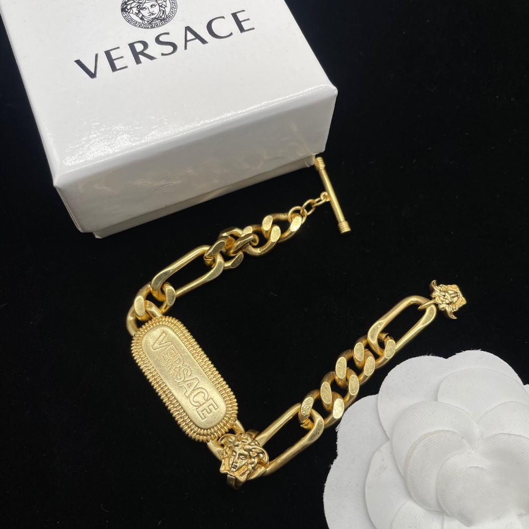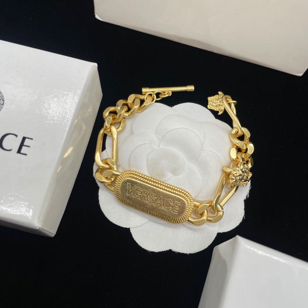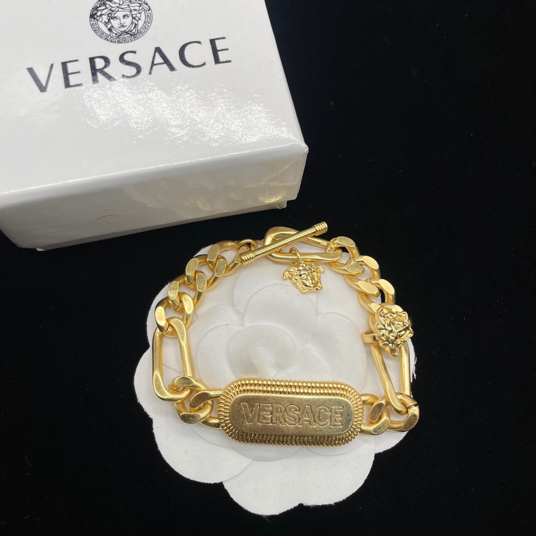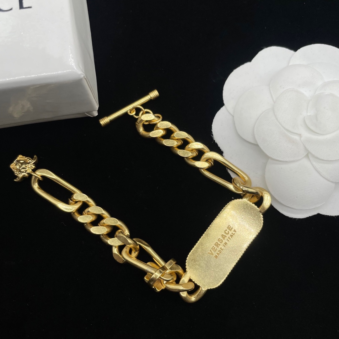 这款首饰是AAAAA 1:1 质量 (非常棒). 使用了和原版一模一样的材料. 商标部分也保持了和范思哲/Versace一样. 图片拍摄是实物首饰拍摄, 您所收到的实物保证和我们图片一模一样.