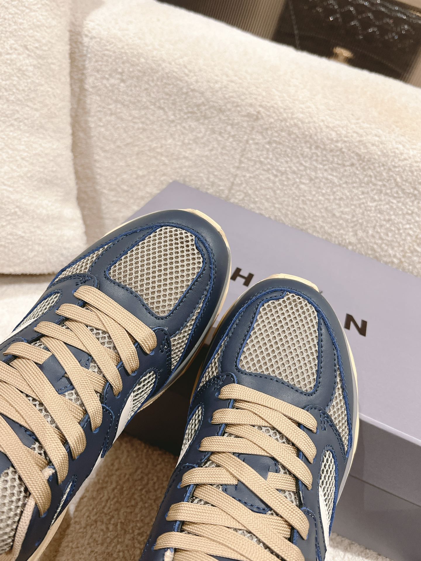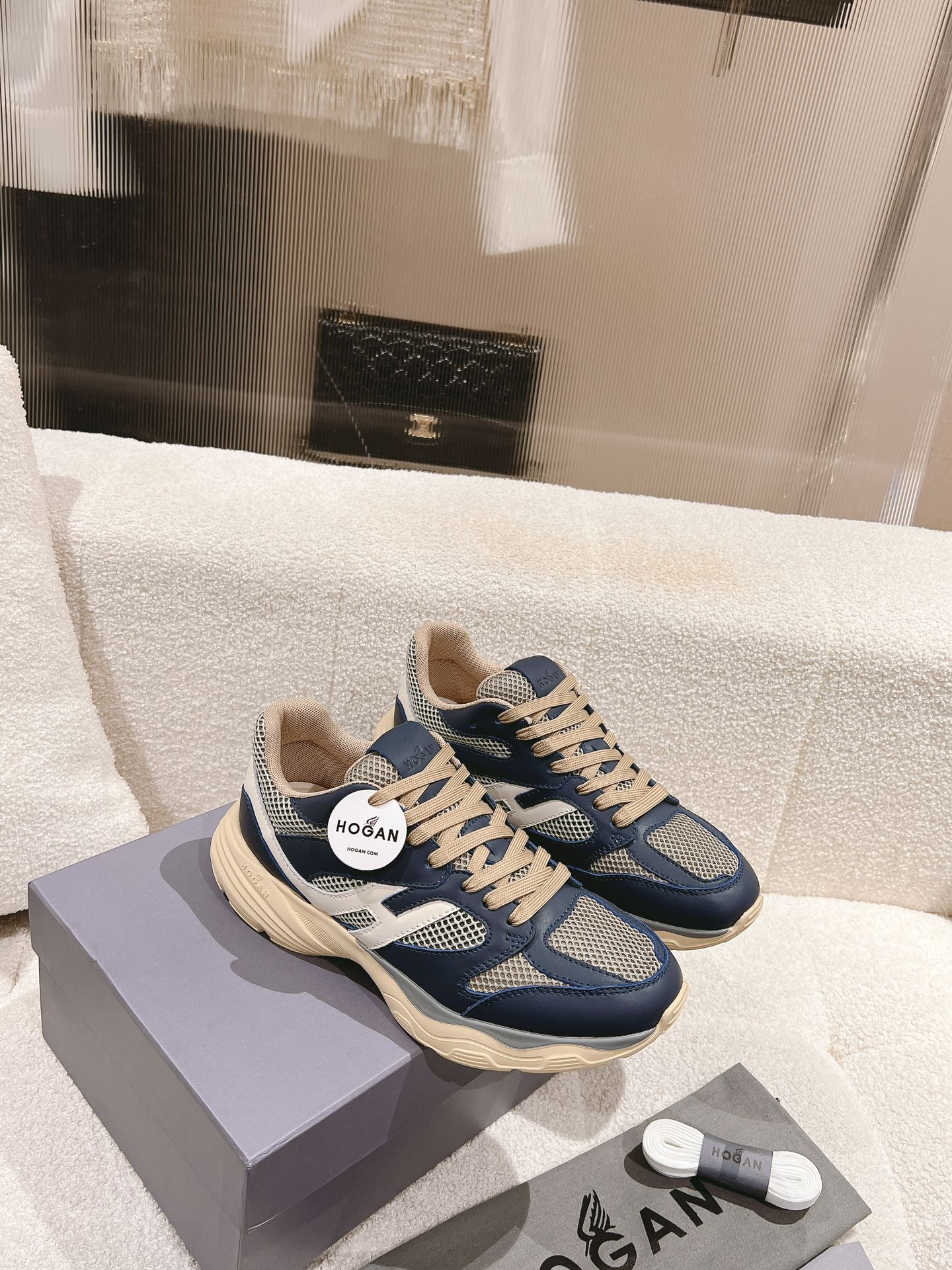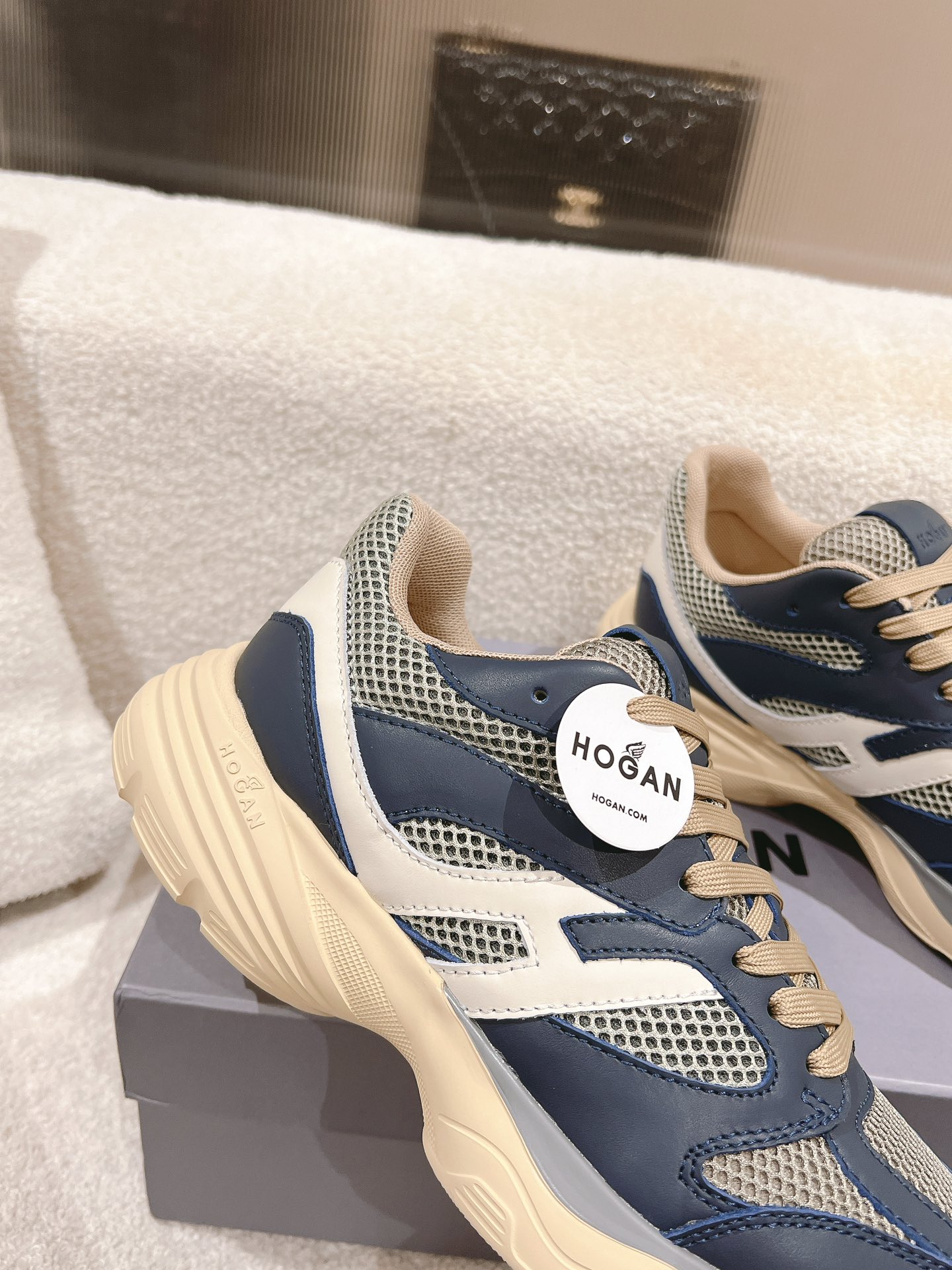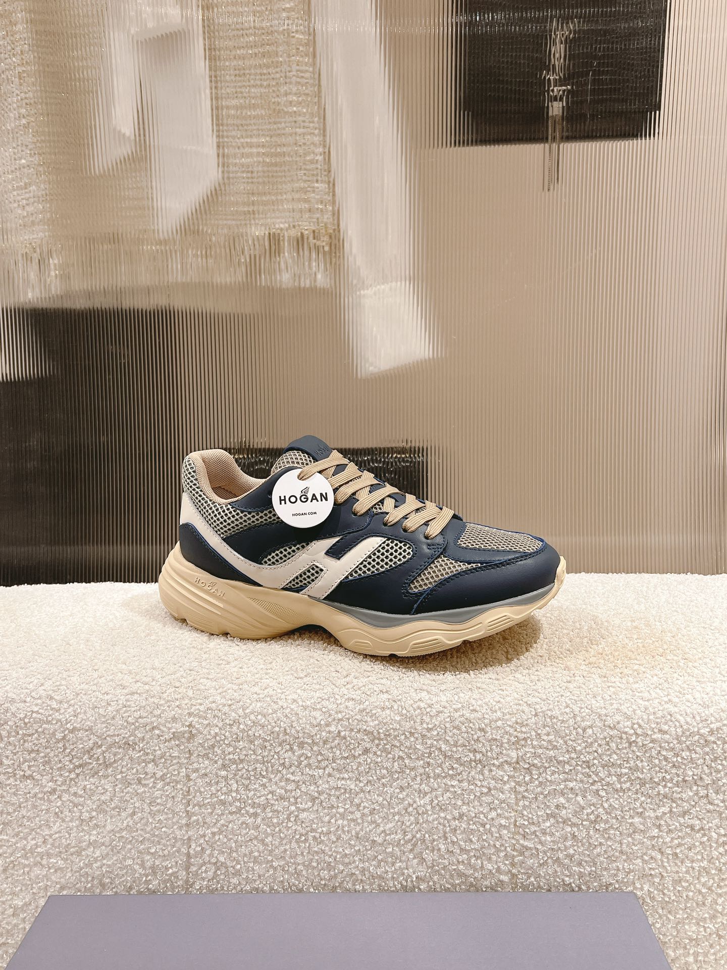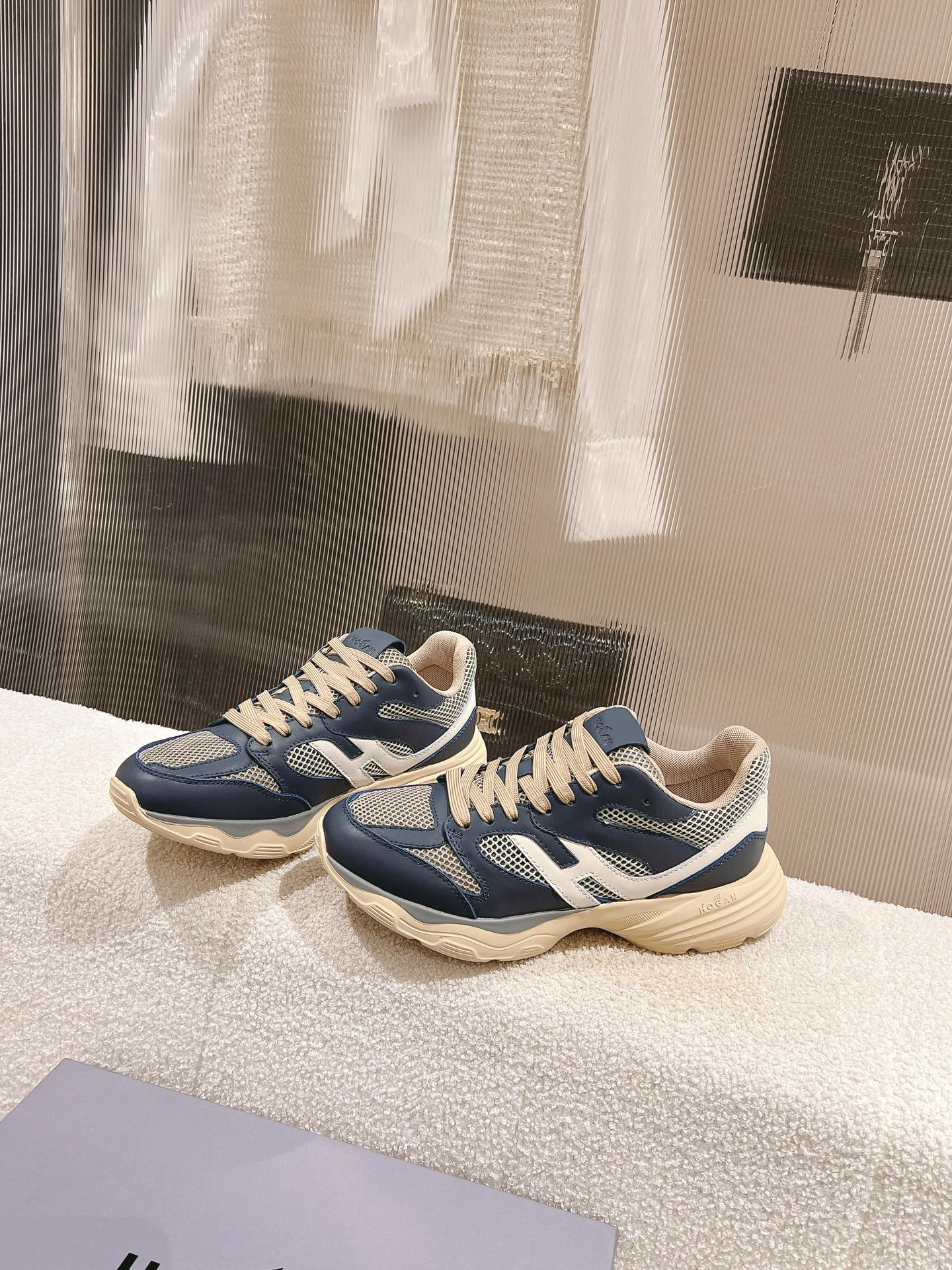 这款鞋子是AAAAA 1:1 质量 (非常棒). 使用了和原版一模一样的材料. 商标部分也保持了和Hogan一样. 图片拍摄是实物鞋子拍摄, 您所收到的实物保证和我们图片一模一样.