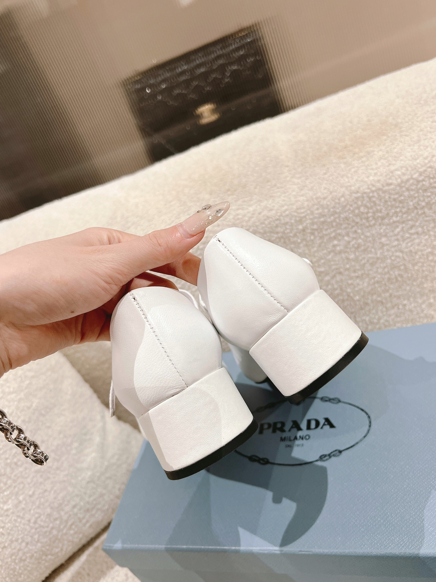 这款鞋子是AAAAA 1:1 质量 (非常棒). 使用了和原版一模一样的材料. 商标部分也保持了和普拉达/Prada一样. 图片拍摄是实物鞋子拍摄, 您所收到的实物保证和我们图片一模一样.