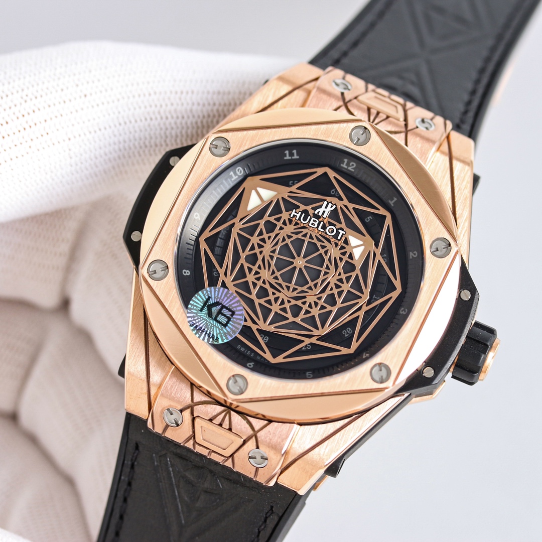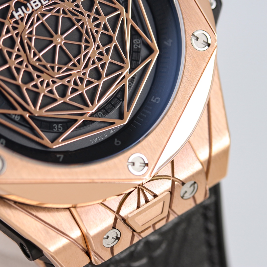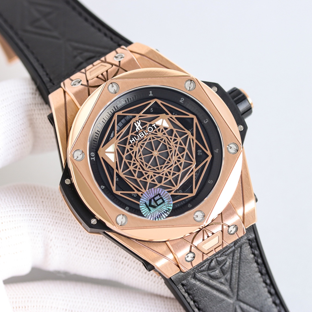 这款手表是AAAAA 1:1 质量 (非常棒). 使用了和原版一模一样的材料. 商标部分也保持了和Hublot一样. 图片拍摄是实物手表拍摄, 您所收到的实物保证和我们图片一模一样.