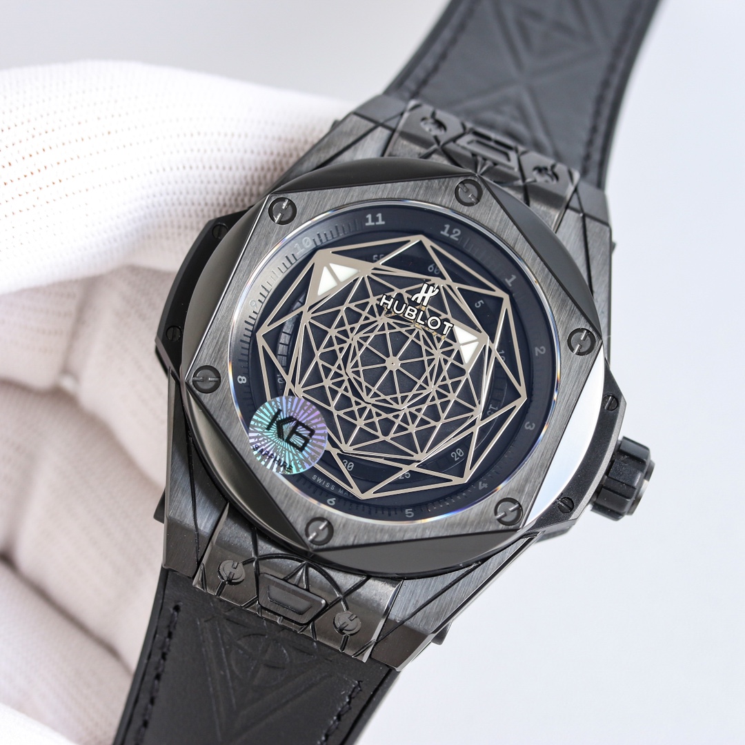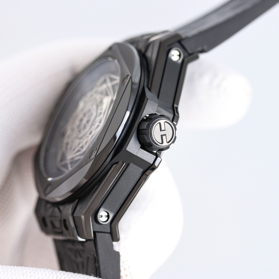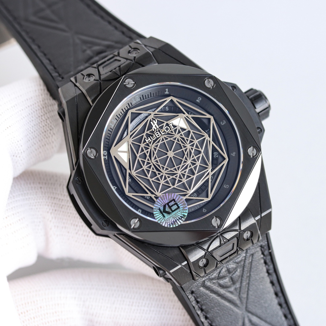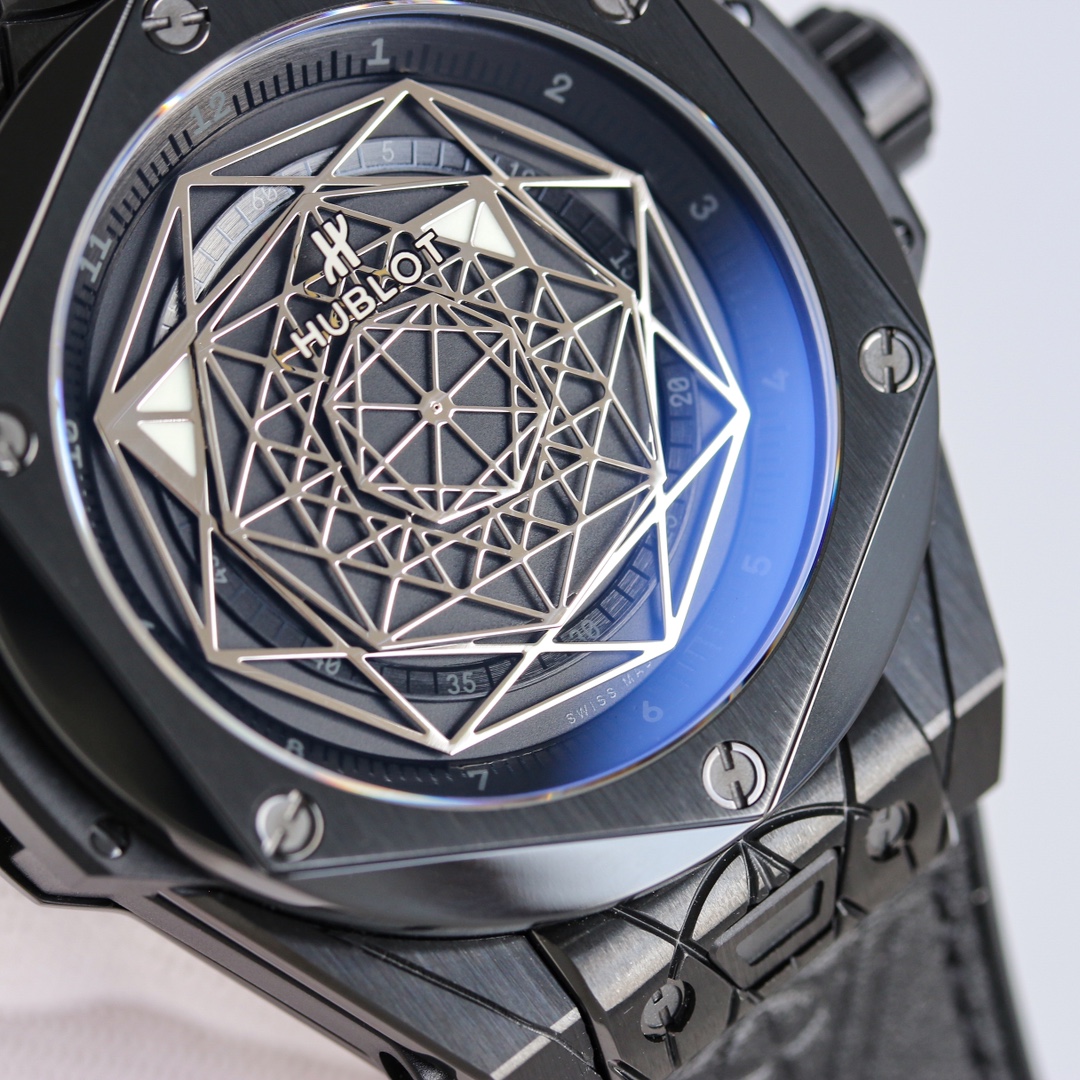 这款手表是AAAAA 1:1 质量 (非常棒). 使用了和原版一模一样的材料. 商标部分也保持了和Hublot一样. 图片拍摄是实物手表拍摄, 您所收到的实物保证和我们图片一模一样.