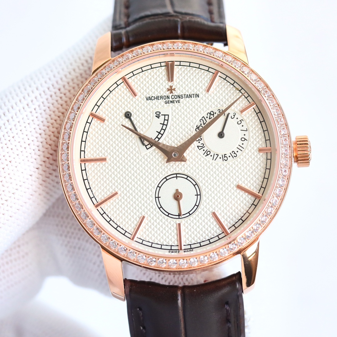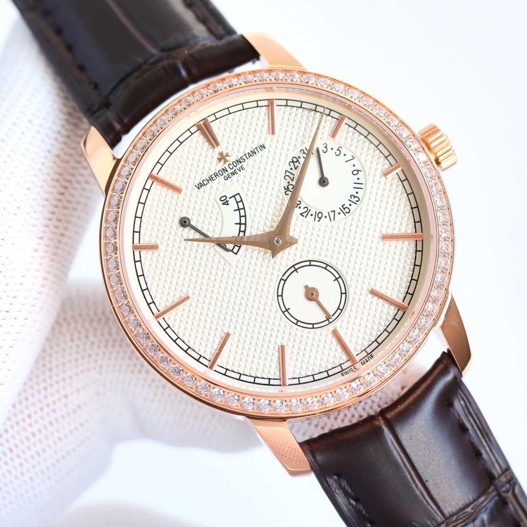 这款手表是AAAAA 1:1 质量 (非常棒). 使用了和原版一模一样的材料. 商标部分也保持了和江诗丹顿/Vacheron Constantin一样. 图片拍摄是实物手表拍摄, 您所收到的实物保证和我们图片一模一样.