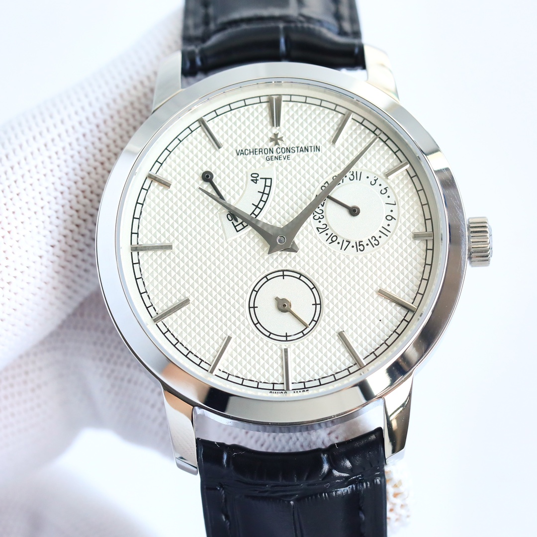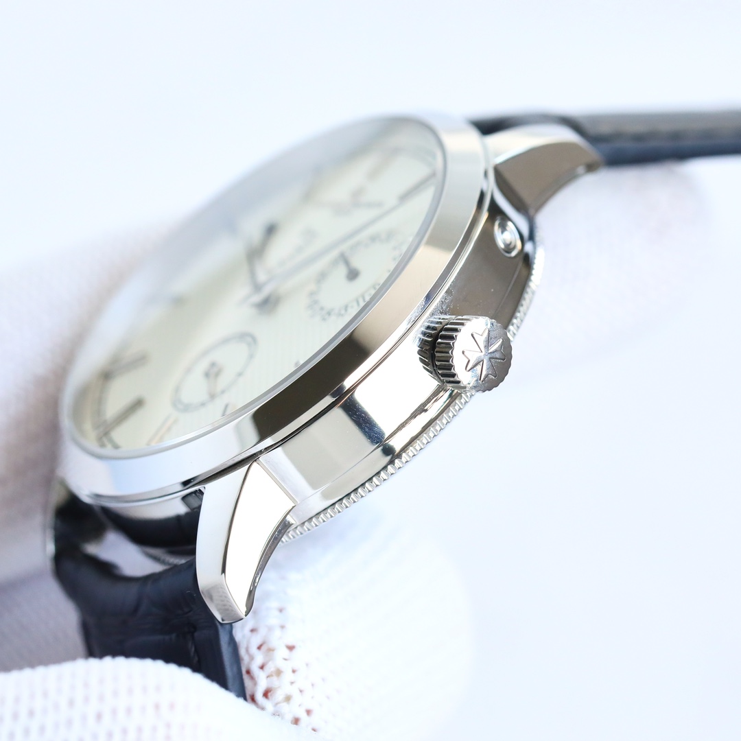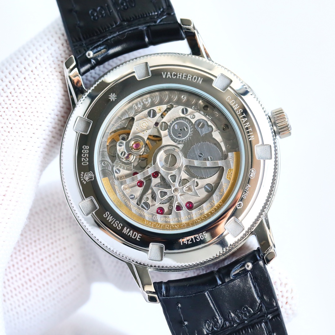 这款手表是AAAAA 1:1 质量 (非常棒). 使用了和原版一模一样的材料. 商标部分也保持了和江诗丹顿/Vacheron Constantin一样. 图片拍摄是实物手表拍摄, 您所收到的实物保证和我们图片一模一样.