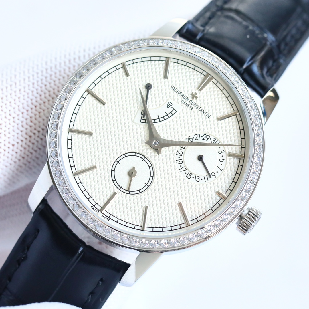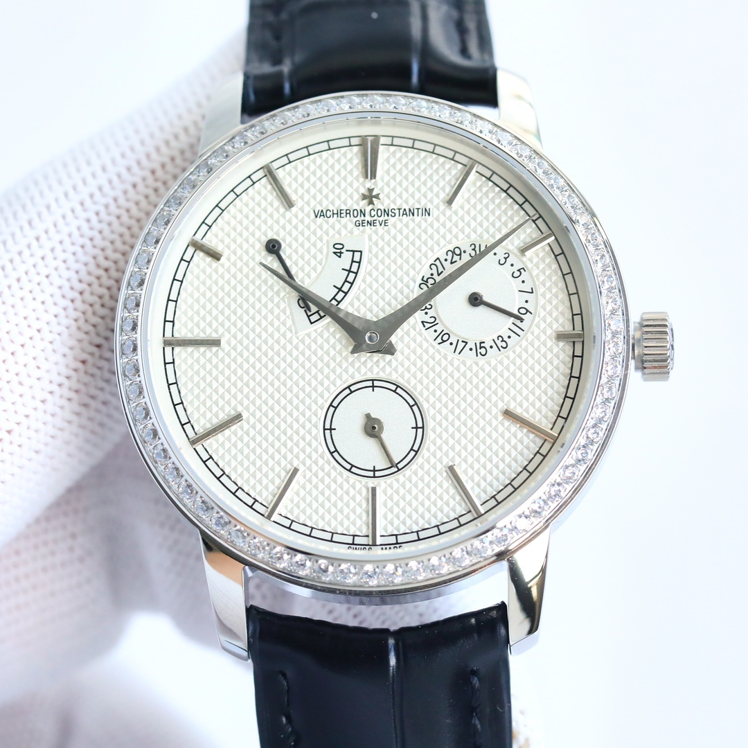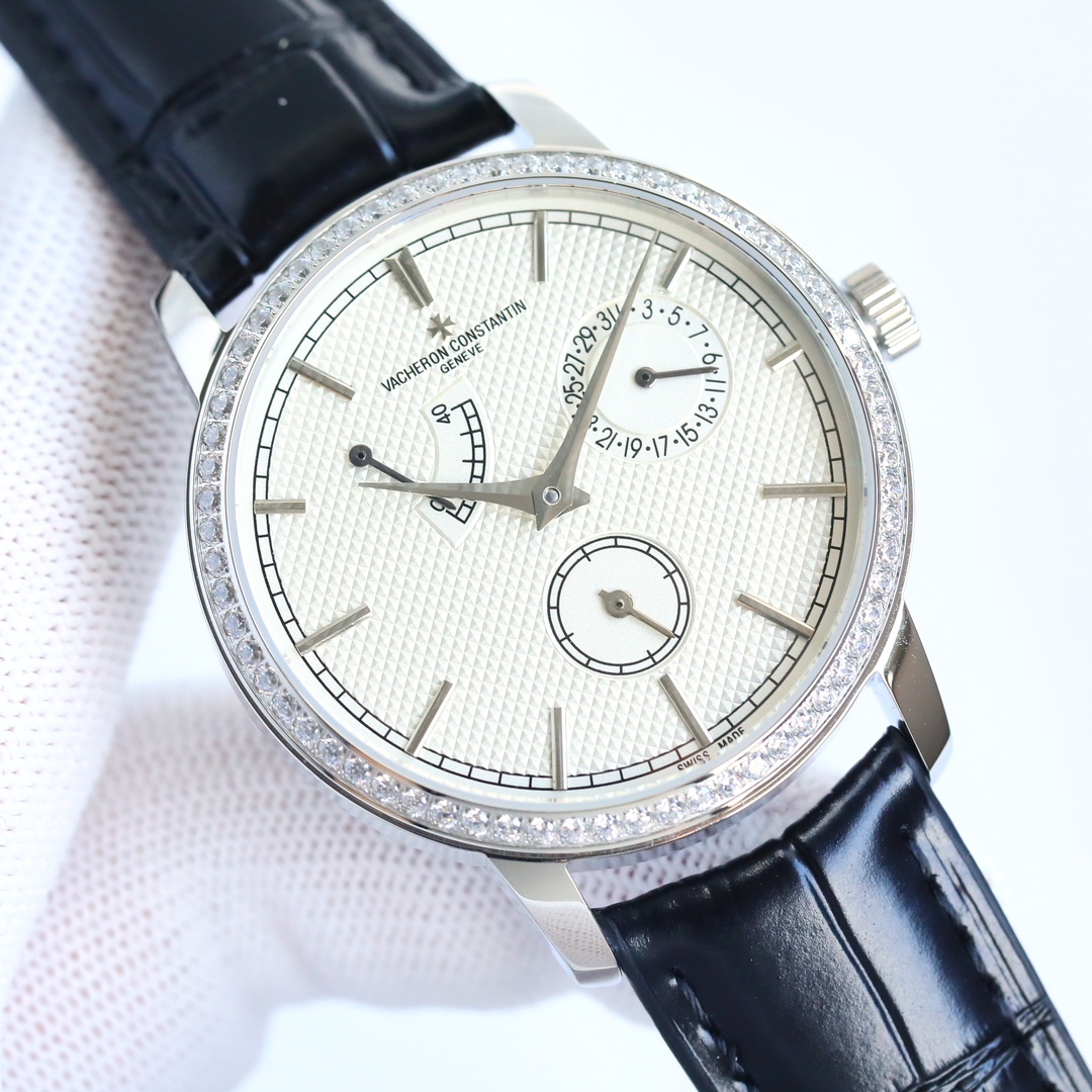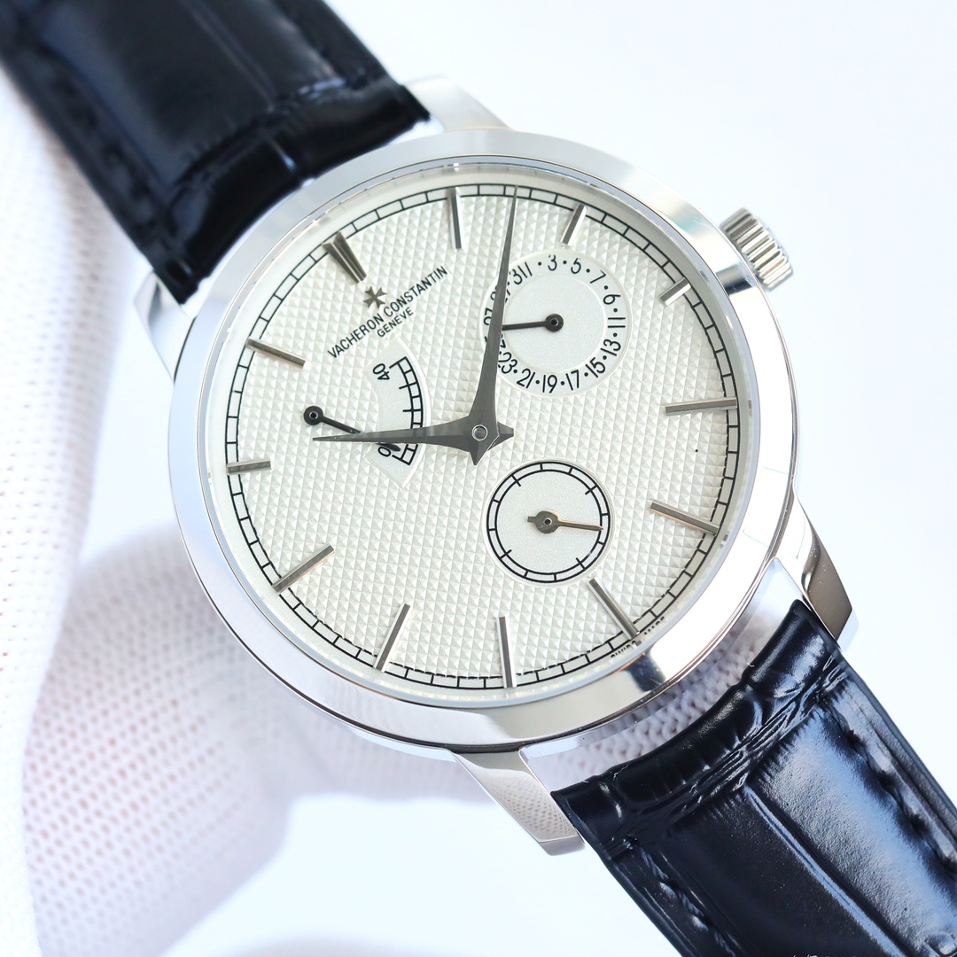 这款手表是AAAAA 1:1 质量 (非常棒). 使用了和原版一模一样的材料. 商标部分也保持了和江诗丹顿/Vacheron Constantin一样. 图片拍摄是实物手表拍摄, 您所收到的实物保证和我们图片一模一样.