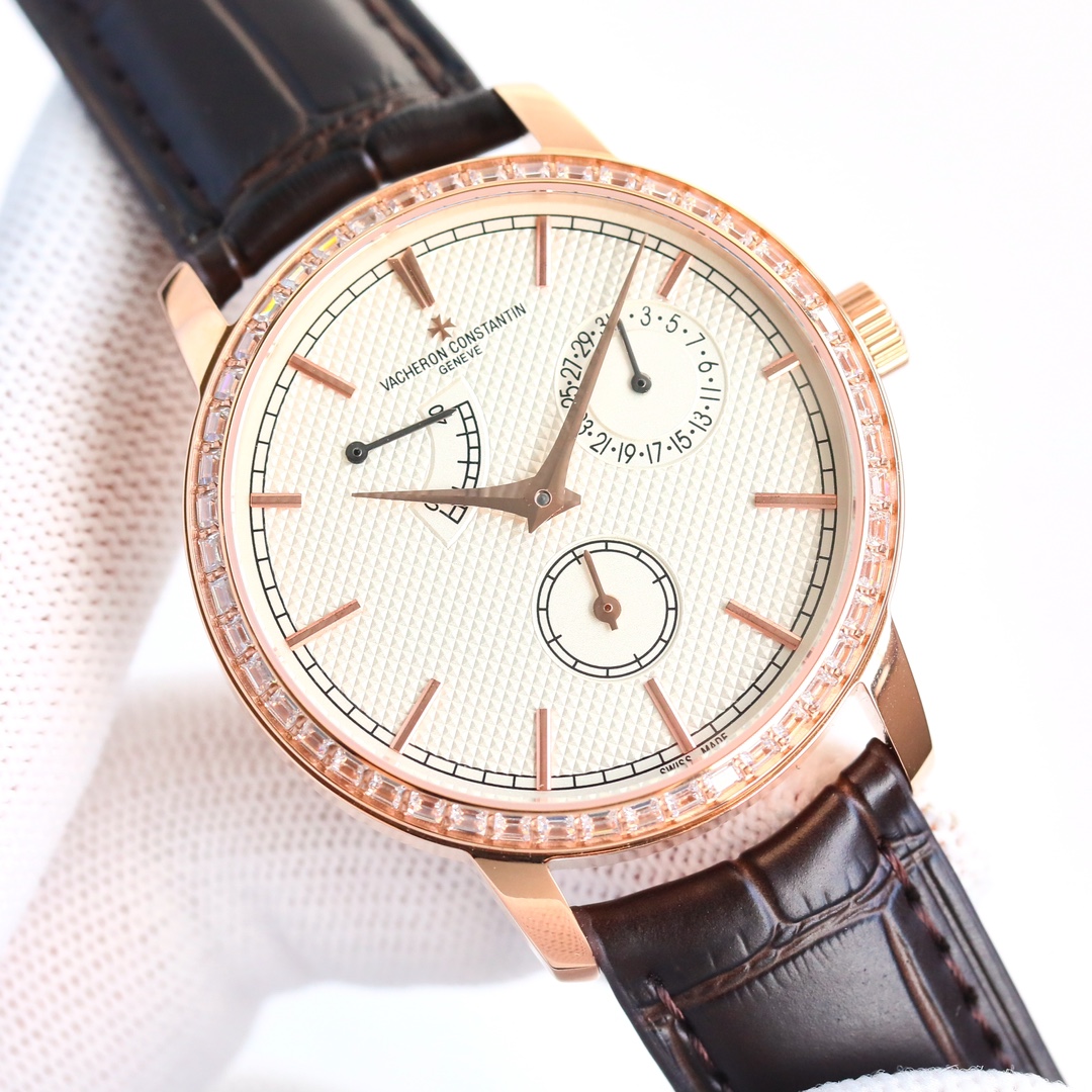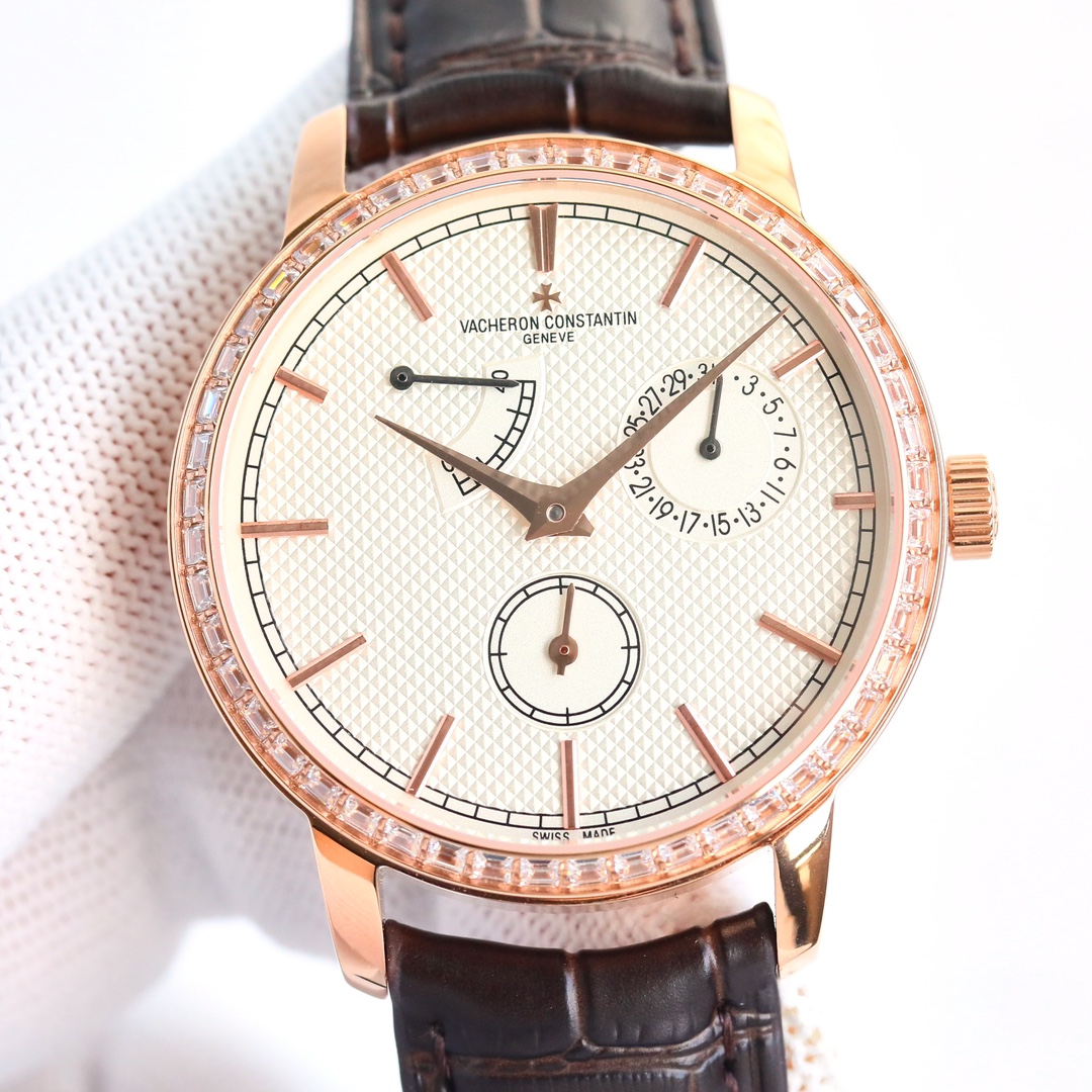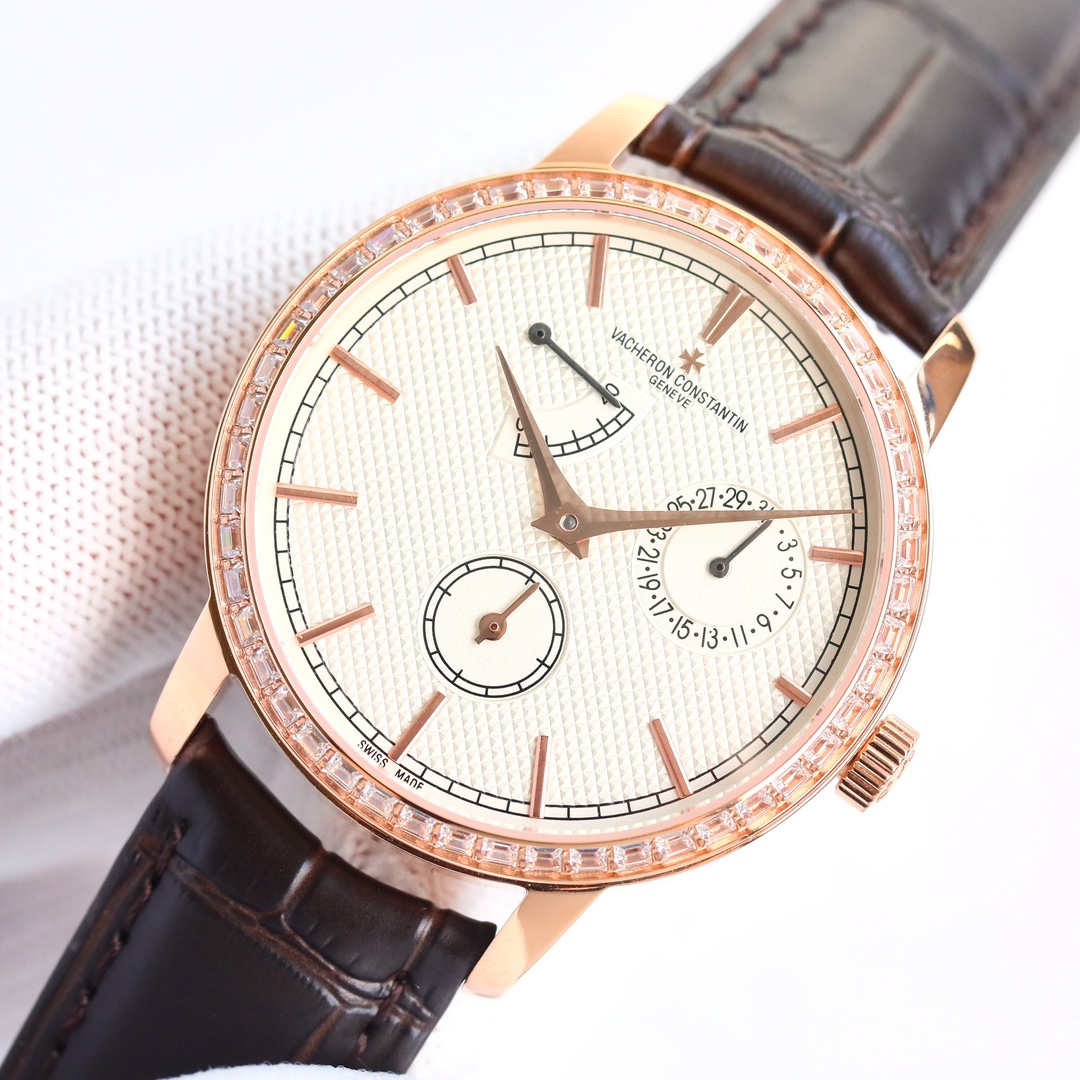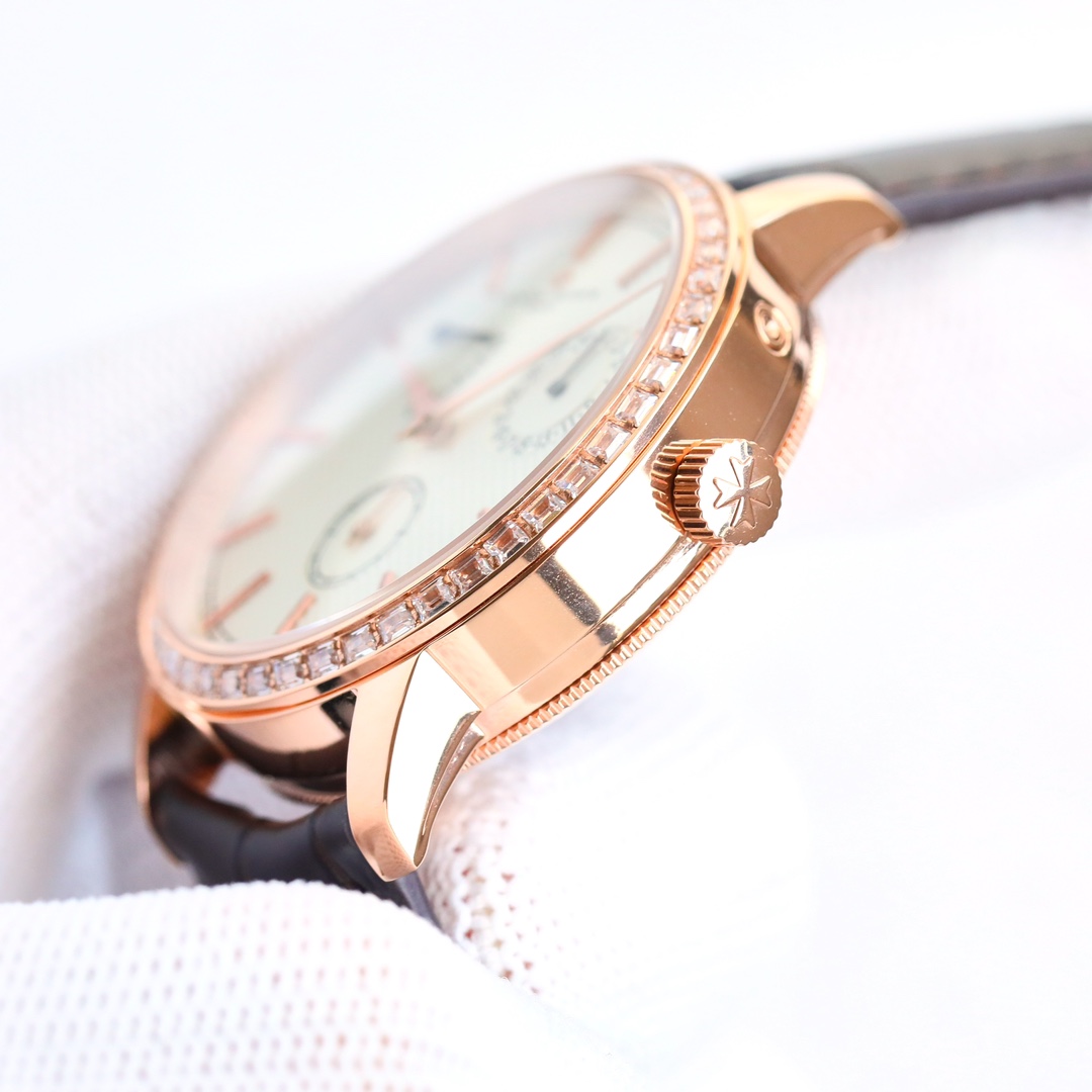 这款手表是AAAAA 1:1 质量 (非常棒). 使用了和原版一模一样的材料. 商标部分也保持了和江诗丹顿/Vacheron Constantin一样. 图片拍摄是实物手表拍摄, 您所收到的实物保证和我们图片一模一样.