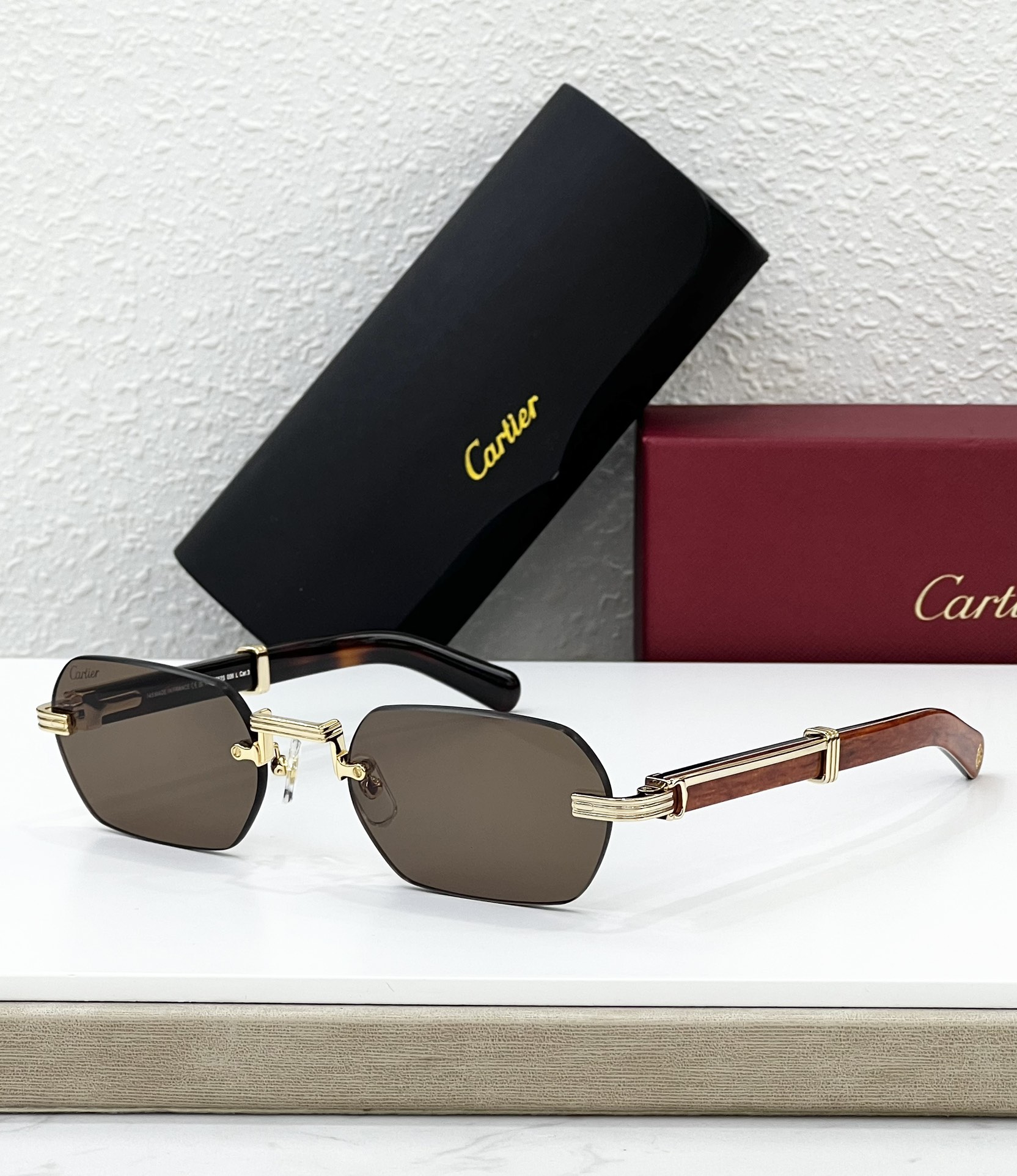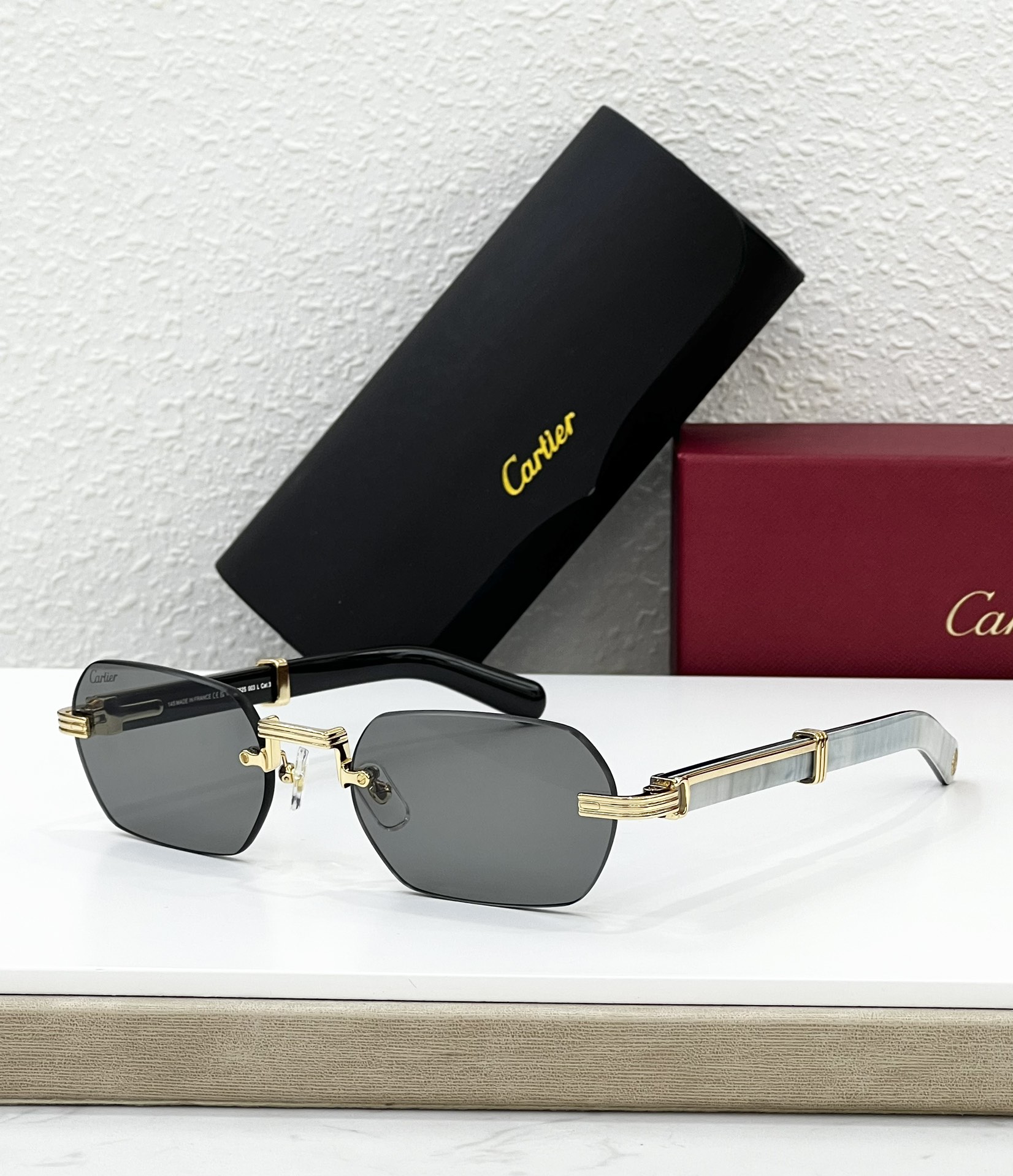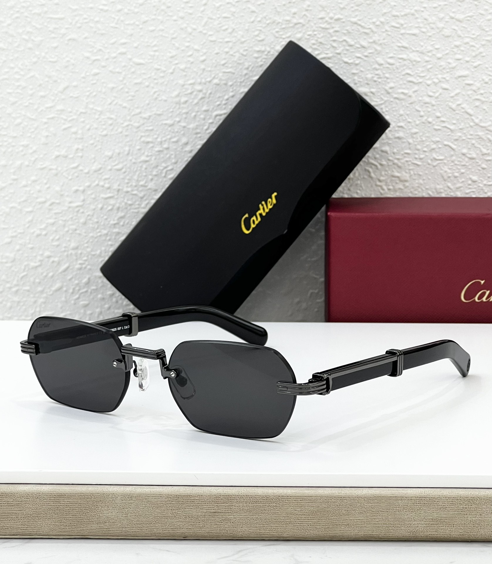 这款太阳眼镜是AAAAA 1:1 质量 (非常棒). 使用了和原版一模一样的材料. 商标部分也保持了和卡地亚/Cartier一样. 图片拍摄是实物太阳眼镜拍摄, 您所收到的实物保证和我们图片一模一样.