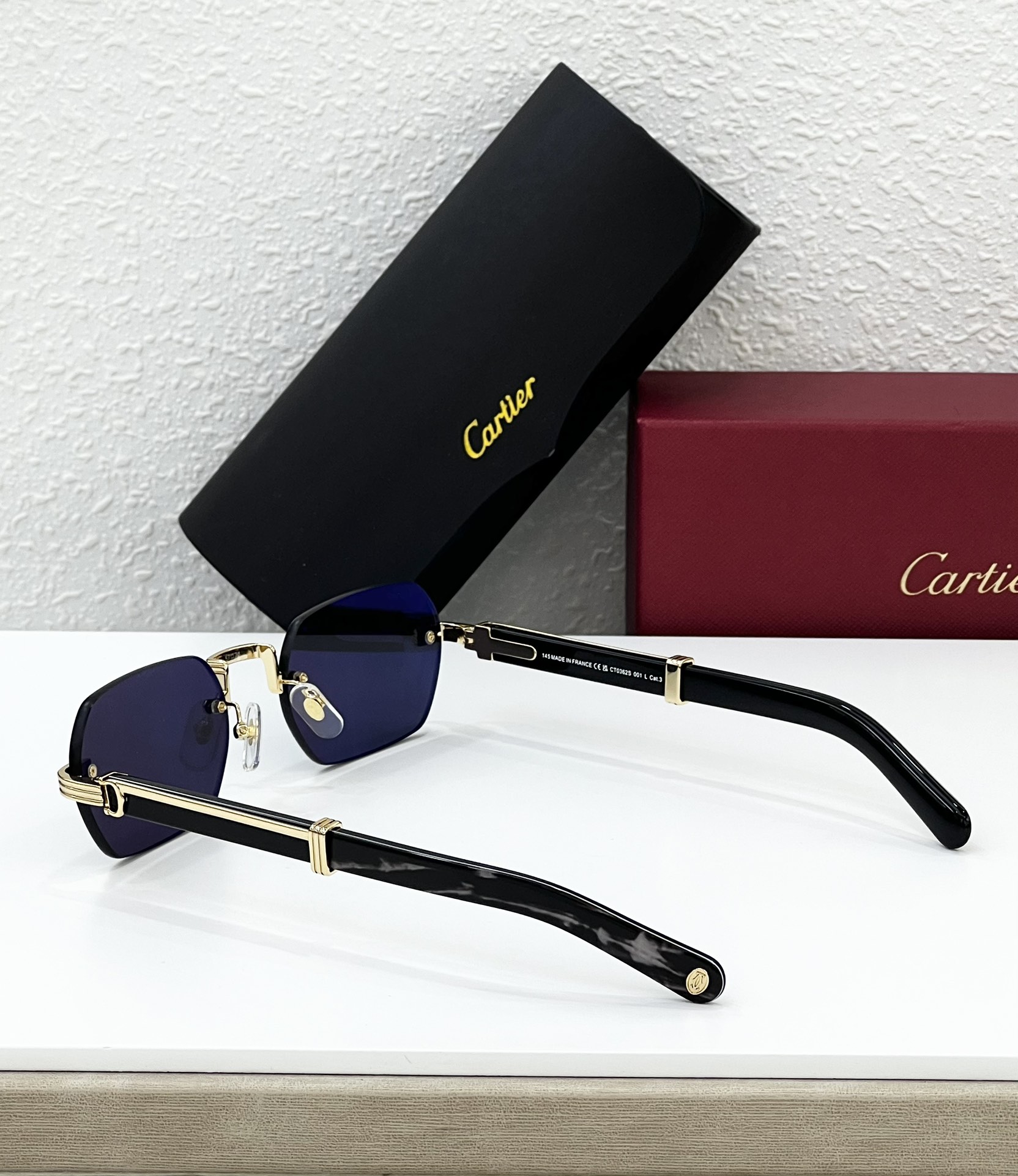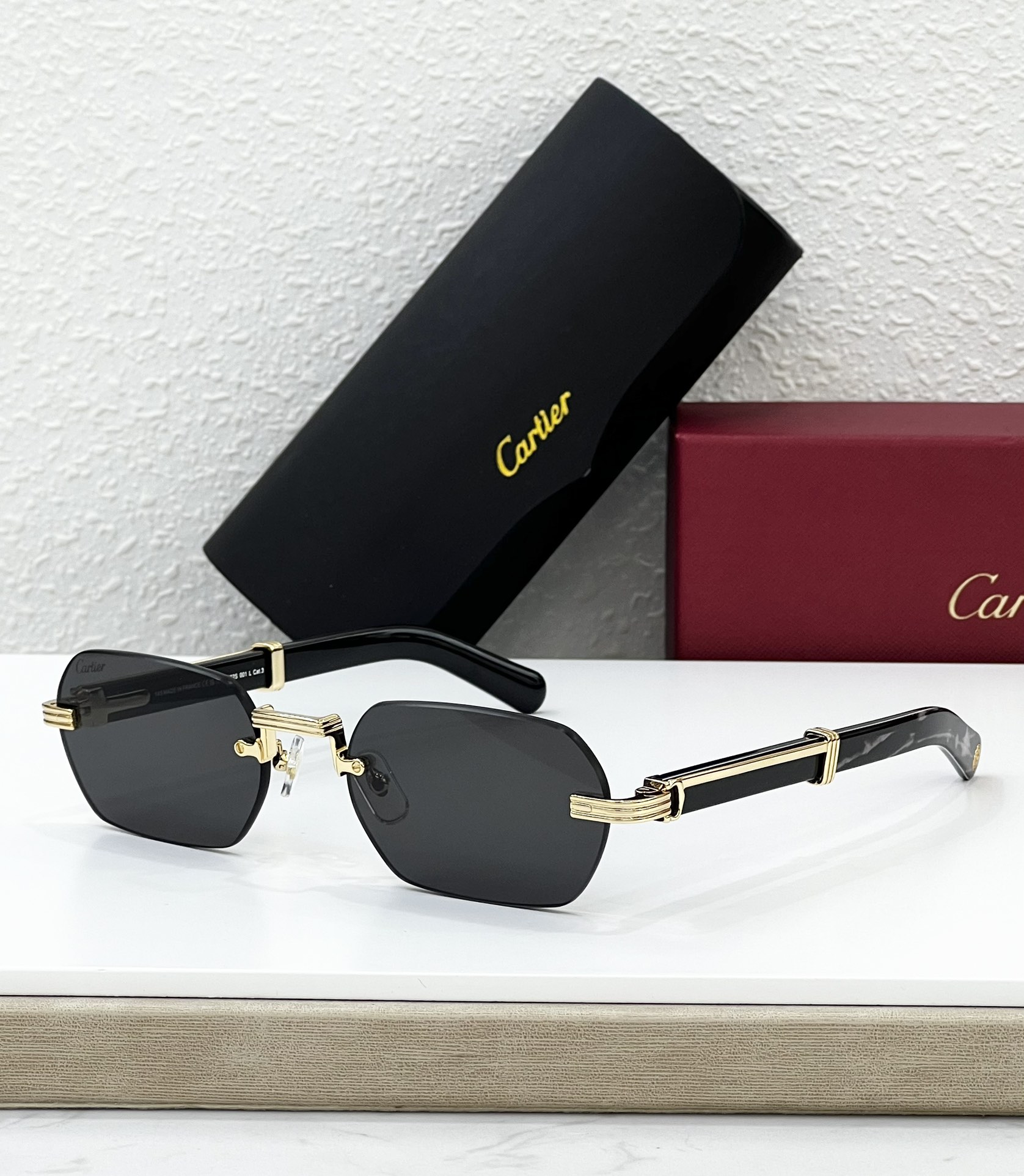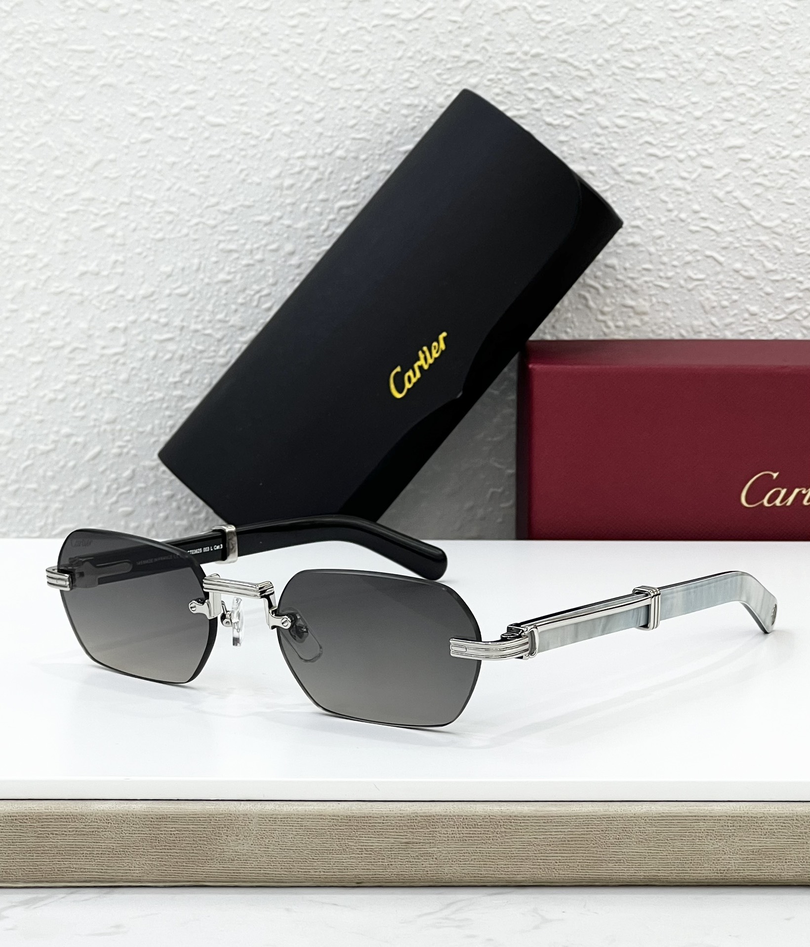 这款太阳眼镜是AAAAA 1:1 质量 (非常棒). 使用了和原版一模一样的材料. 商标部分也保持了和卡地亚/Cartier一样. 图片拍摄是实物太阳眼镜拍摄, 您所收到的实物保证和我们图片一模一样.