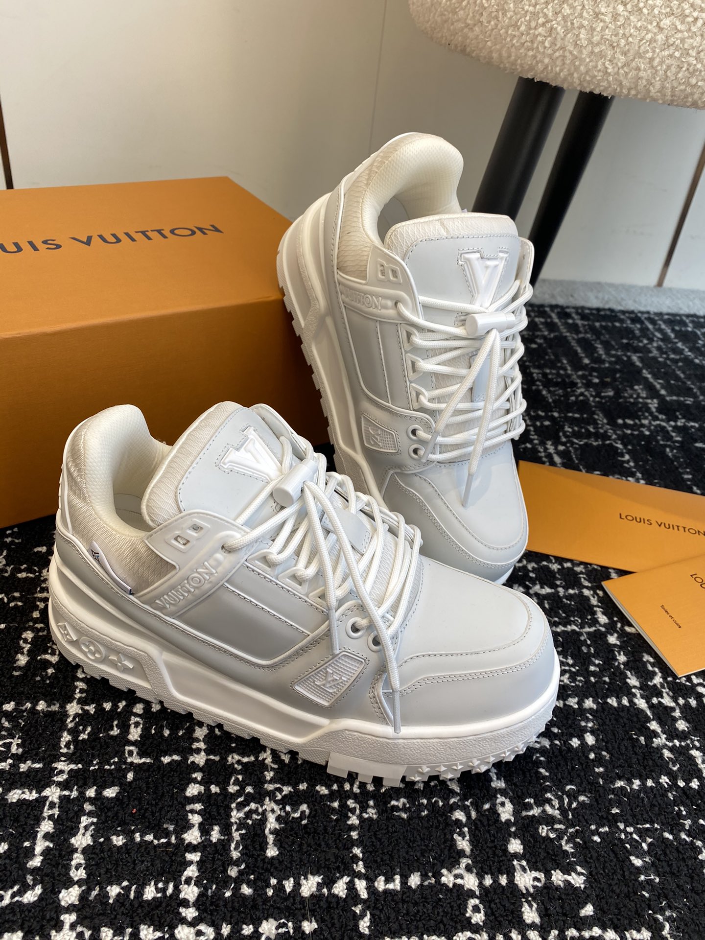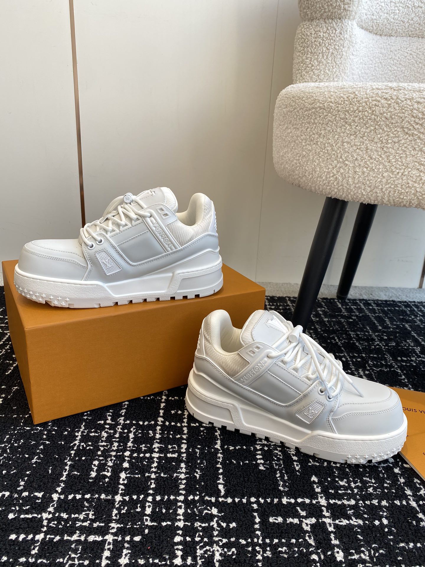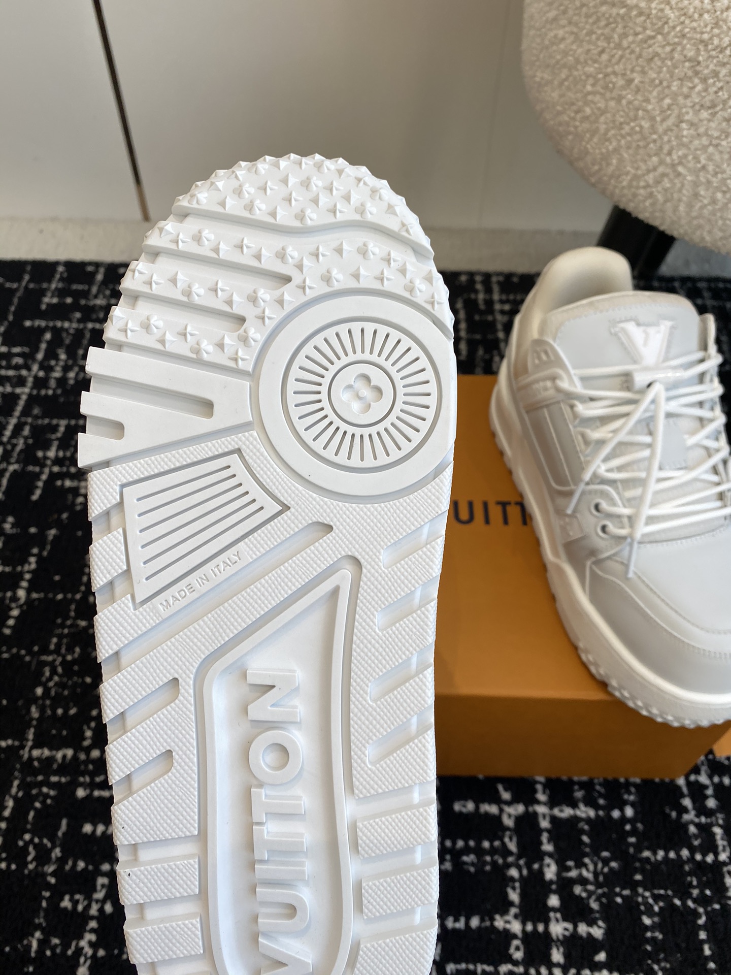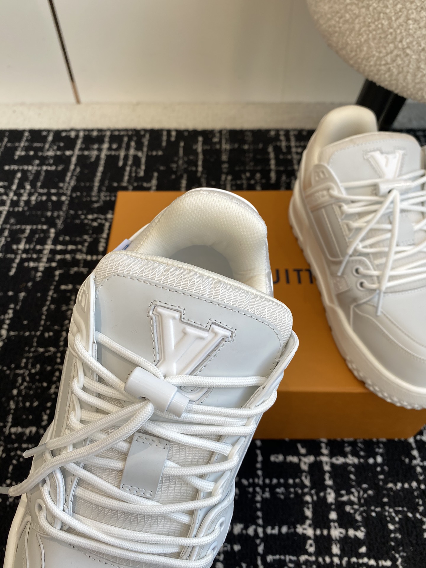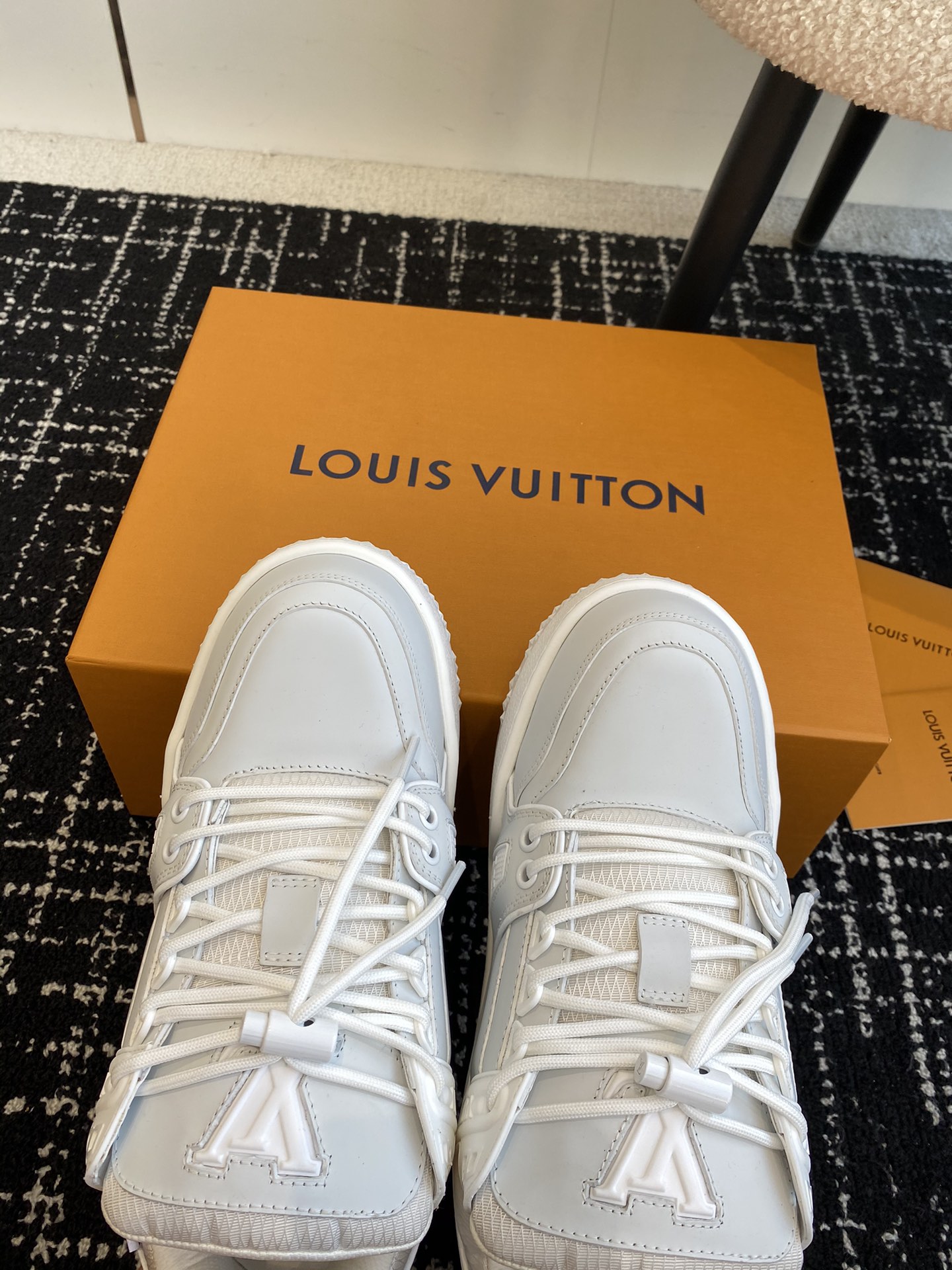 这款鞋子是AAAAA 1:1 质量 (非常棒). 使用了和原版一模一样的材料. 商标部分也保持了和路易威登/Louis Vuitton一样. 图片拍摄是实物鞋子拍摄, 您所收到的实物保证和我们图片一模一样.