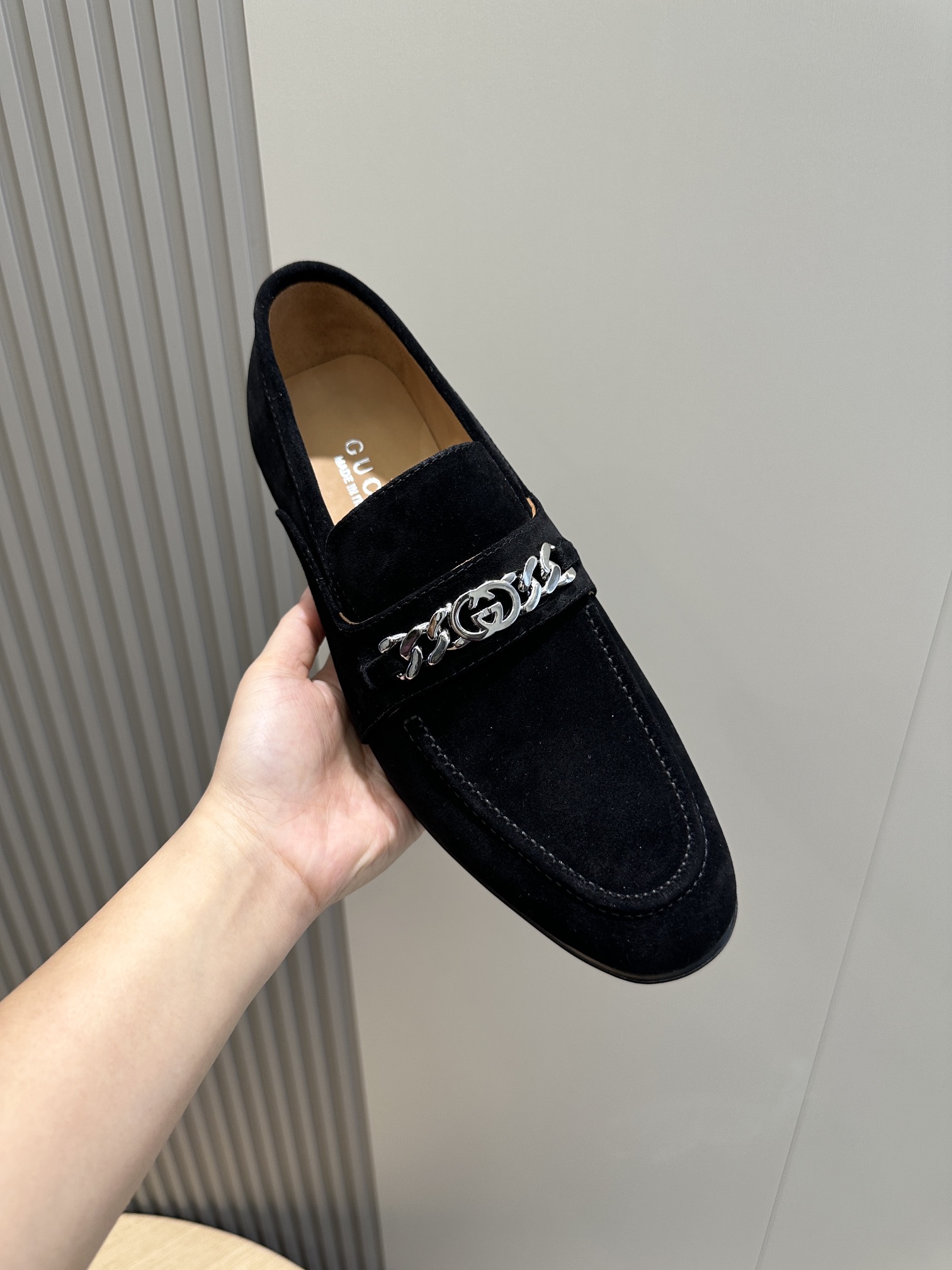 这款鞋子是AAAAA 1:1 质量 (非常棒). 使用了和原版一模一样的材料. 商标部分也保持了和古奇/Gucci一样. 图片拍摄是实物鞋子拍摄, 您所收到的实物保证和我们图片一模一样.