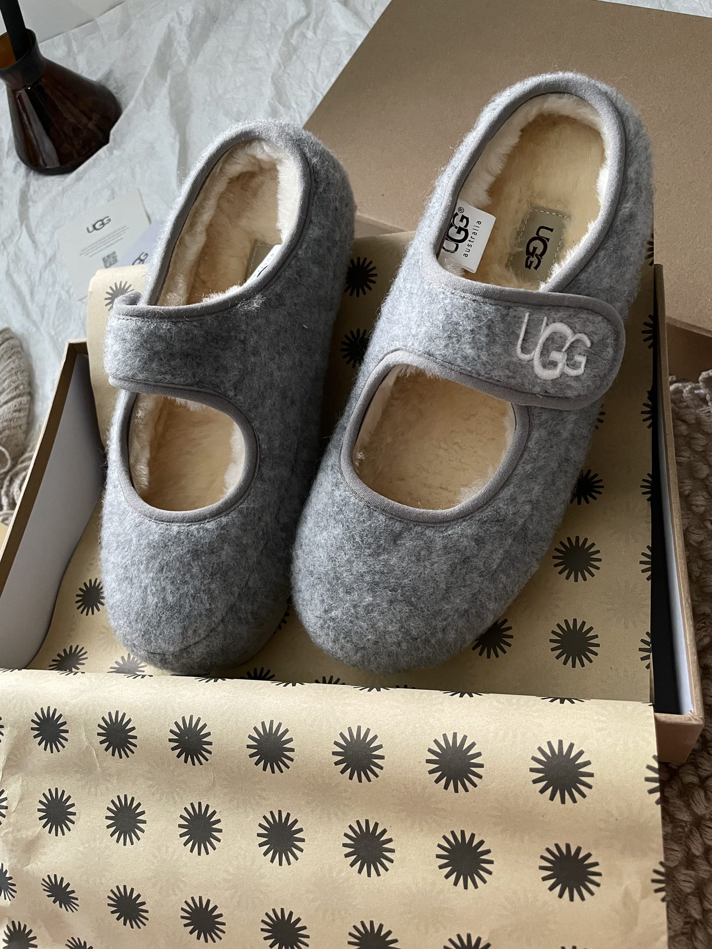 这款鞋子是AAAAA 1:1 质量 (非常棒). 使用了和原版一模一样的材料. 商标部分也保持了和UGG雪地靴一样. 图片拍摄是实物鞋子拍摄, 您所收到的实物保证和我们图片一模一样.