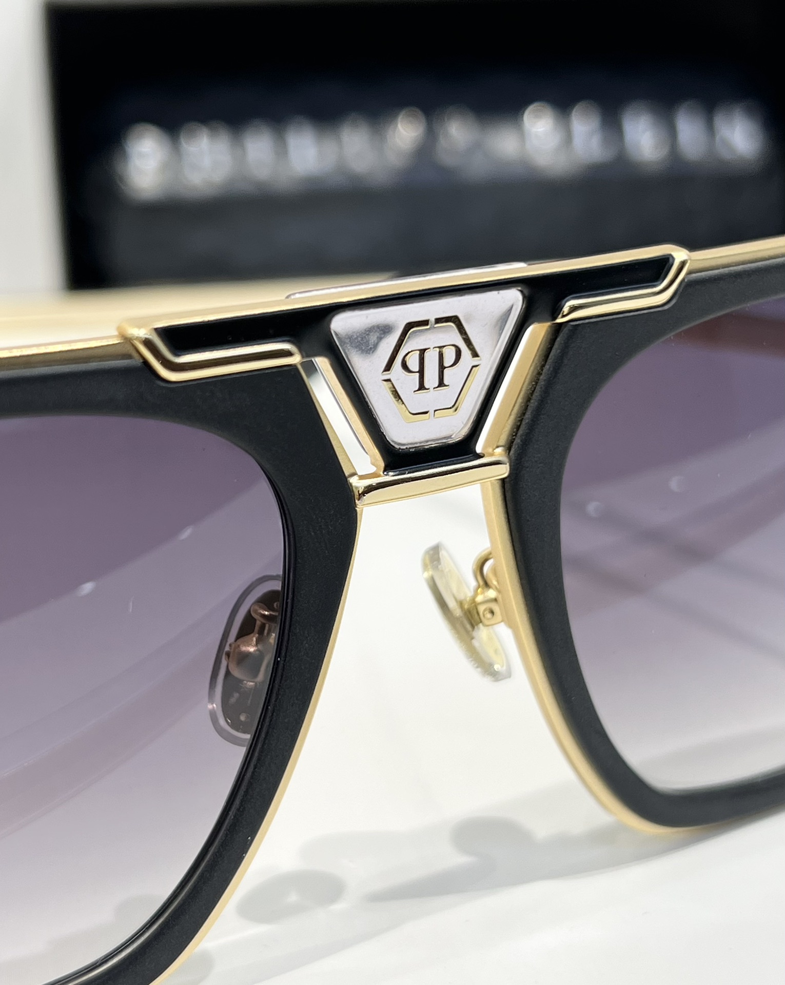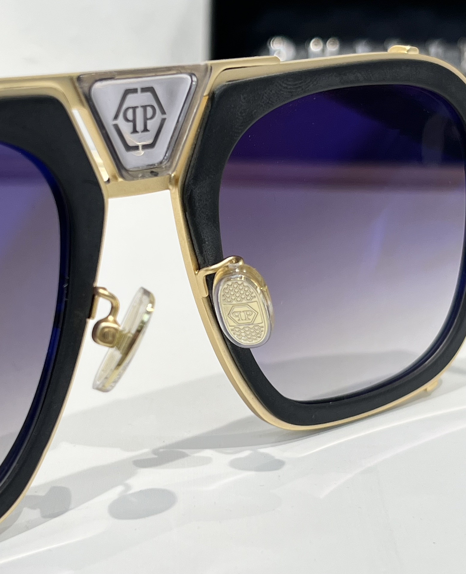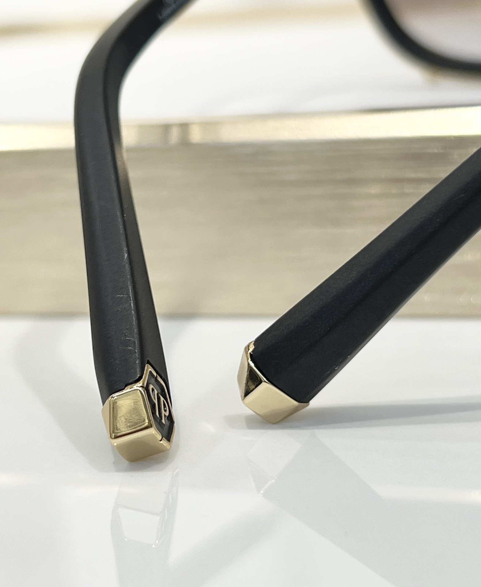这款太阳眼镜是AAAAA 1:1 质量 (非常棒). 使用了和原版一模一样的材料. 商标部分也保持了和菲利普·普林/Philipp Plein一样. 图片拍摄是实物太阳眼镜拍摄, 您所收到的实物保证和我们图片一模一样.