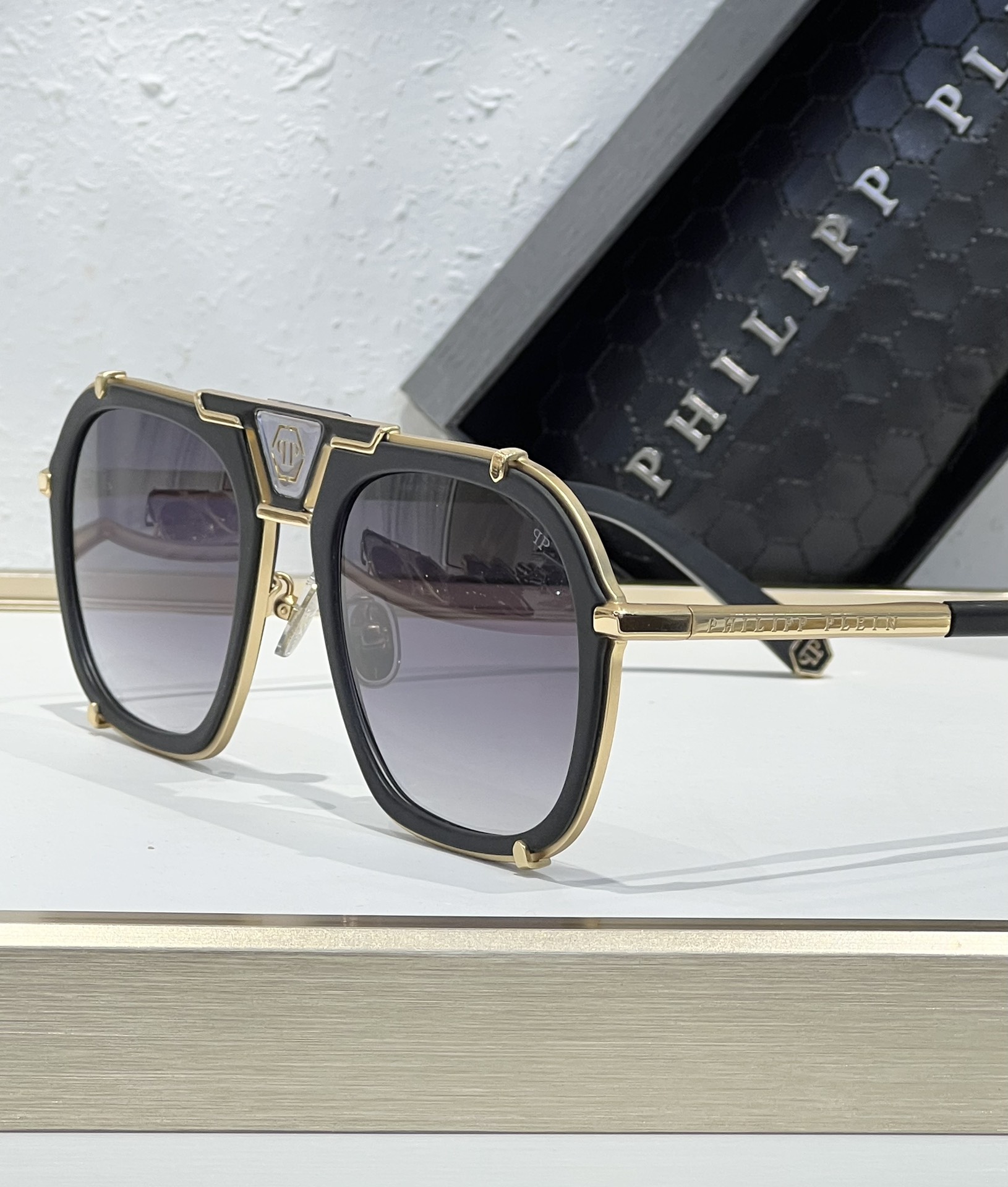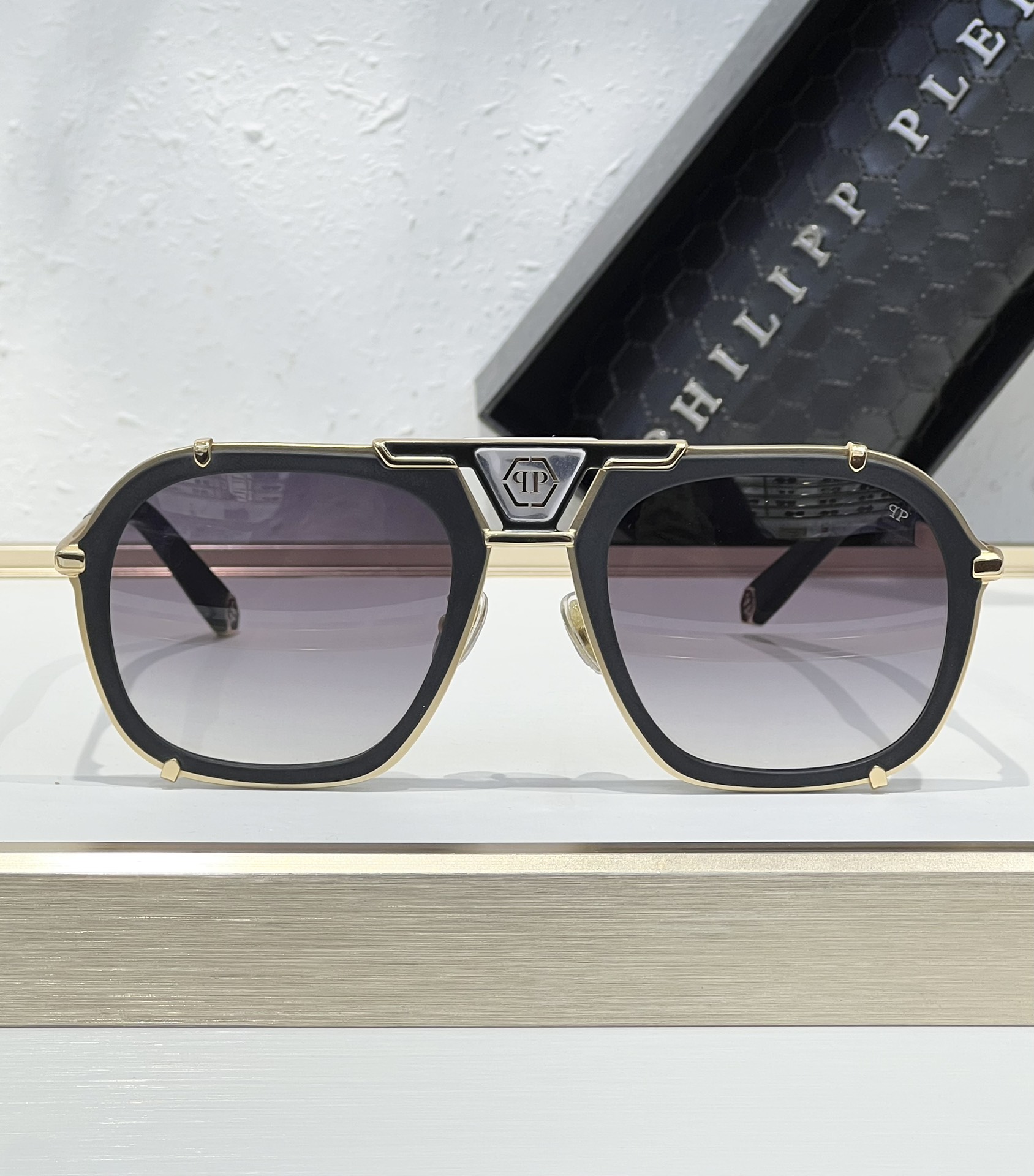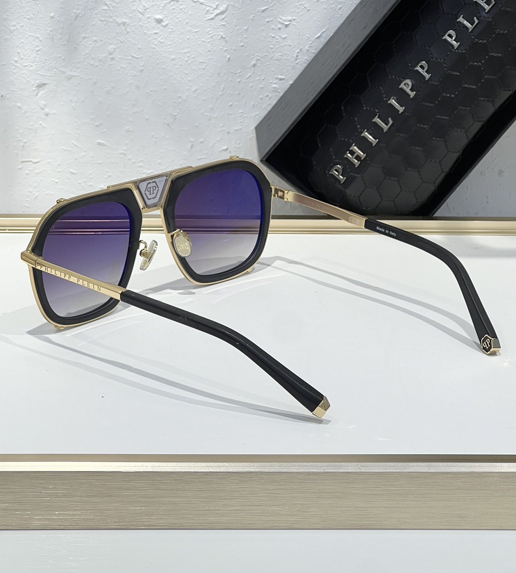 这款太阳眼镜是AAAAA 1:1 质量 (非常棒). 使用了和原版一模一样的材料. 商标部分也保持了和菲利普·普林/Philipp Plein一样. 图片拍摄是实物太阳眼镜拍摄, 您所收到的实物保证和我们图片一模一样.