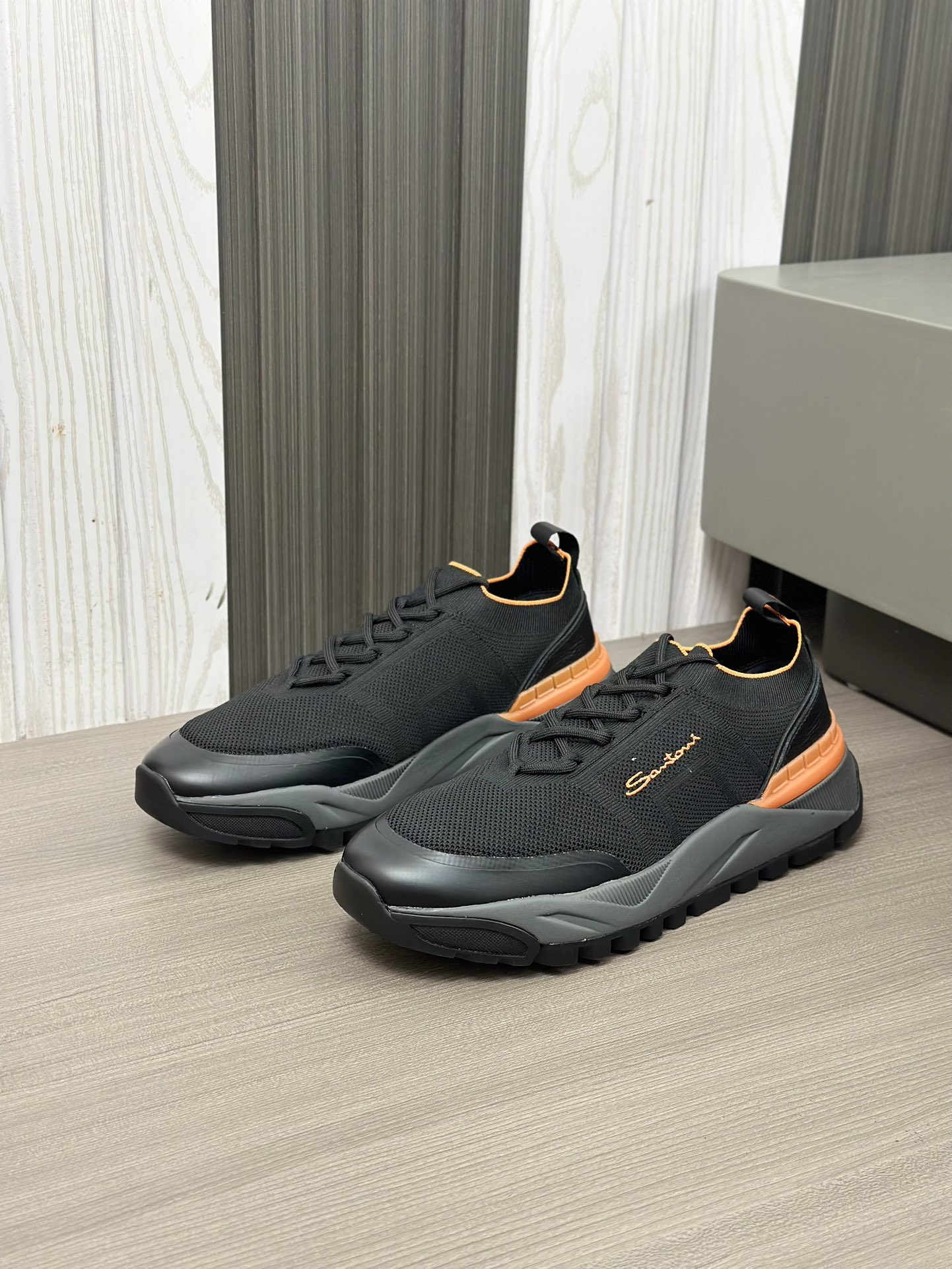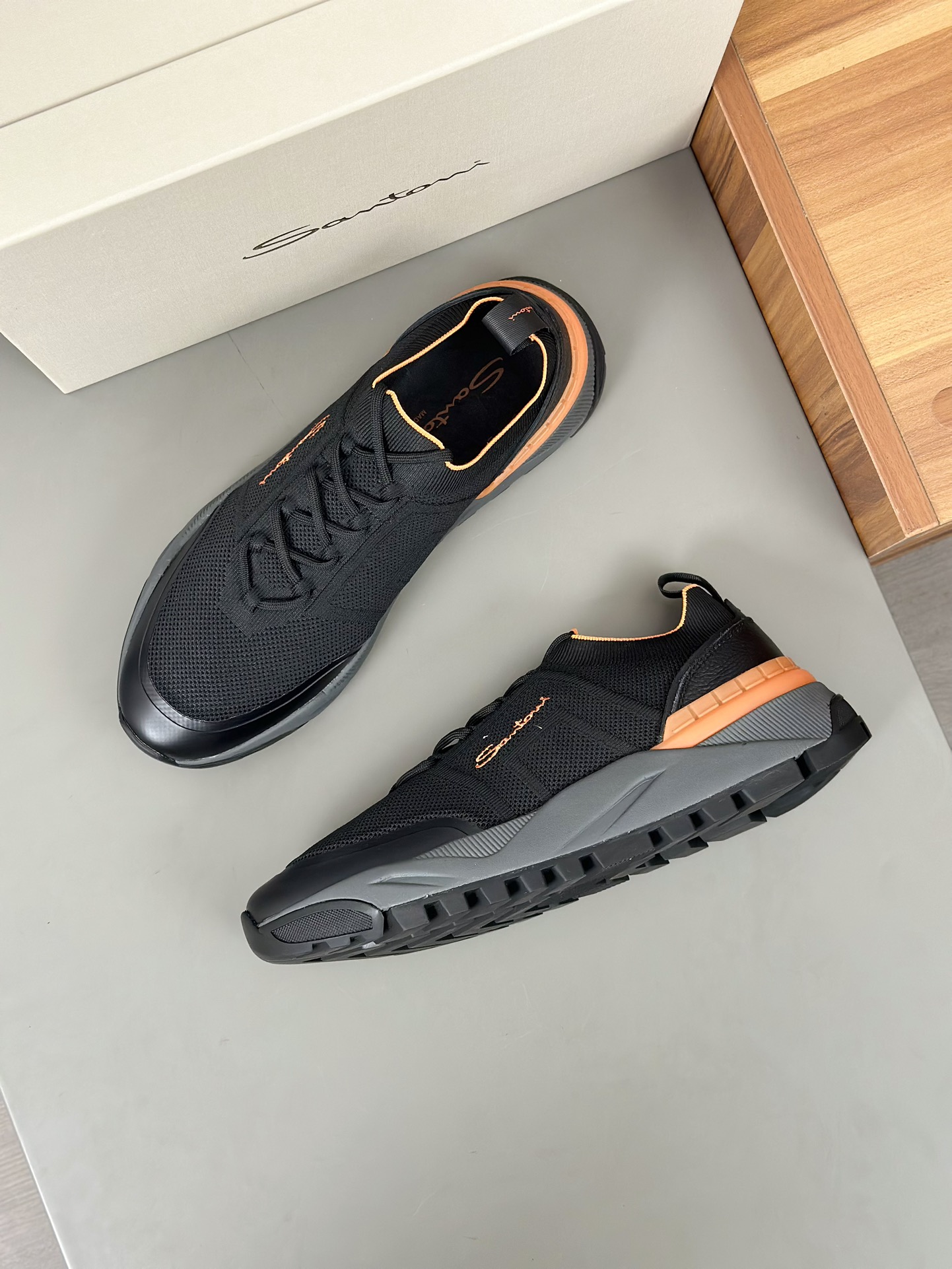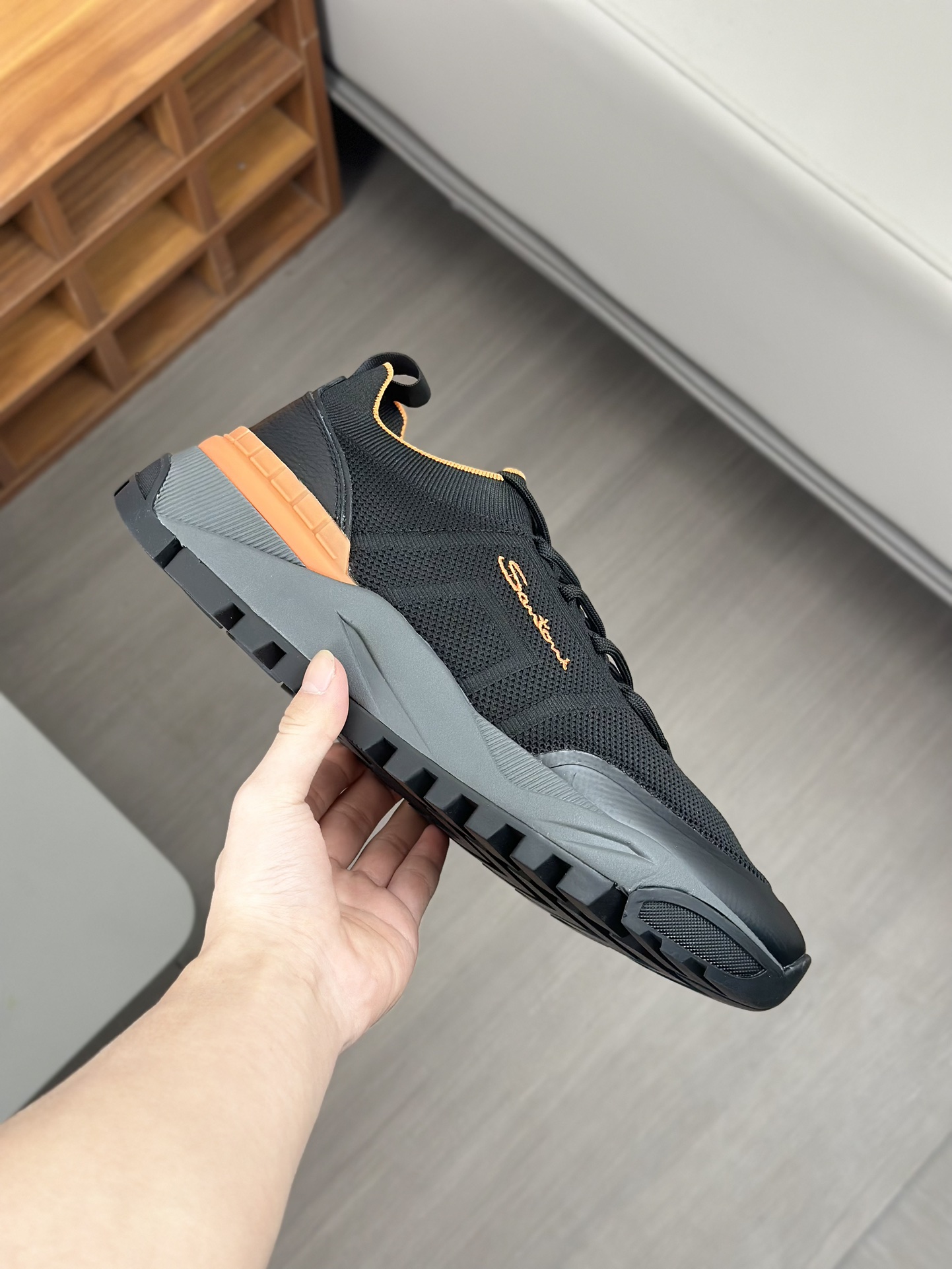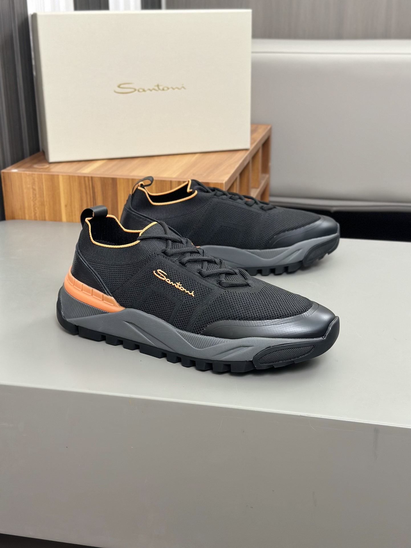 这款鞋子是AAAAA 1:1 质量 (非常棒). 使用了和原版一模一样的材料. 商标部分也保持了和Santoni一样. 图片拍摄是实物鞋子拍摄, 您所收到的实物保证和我们图片一模一样.