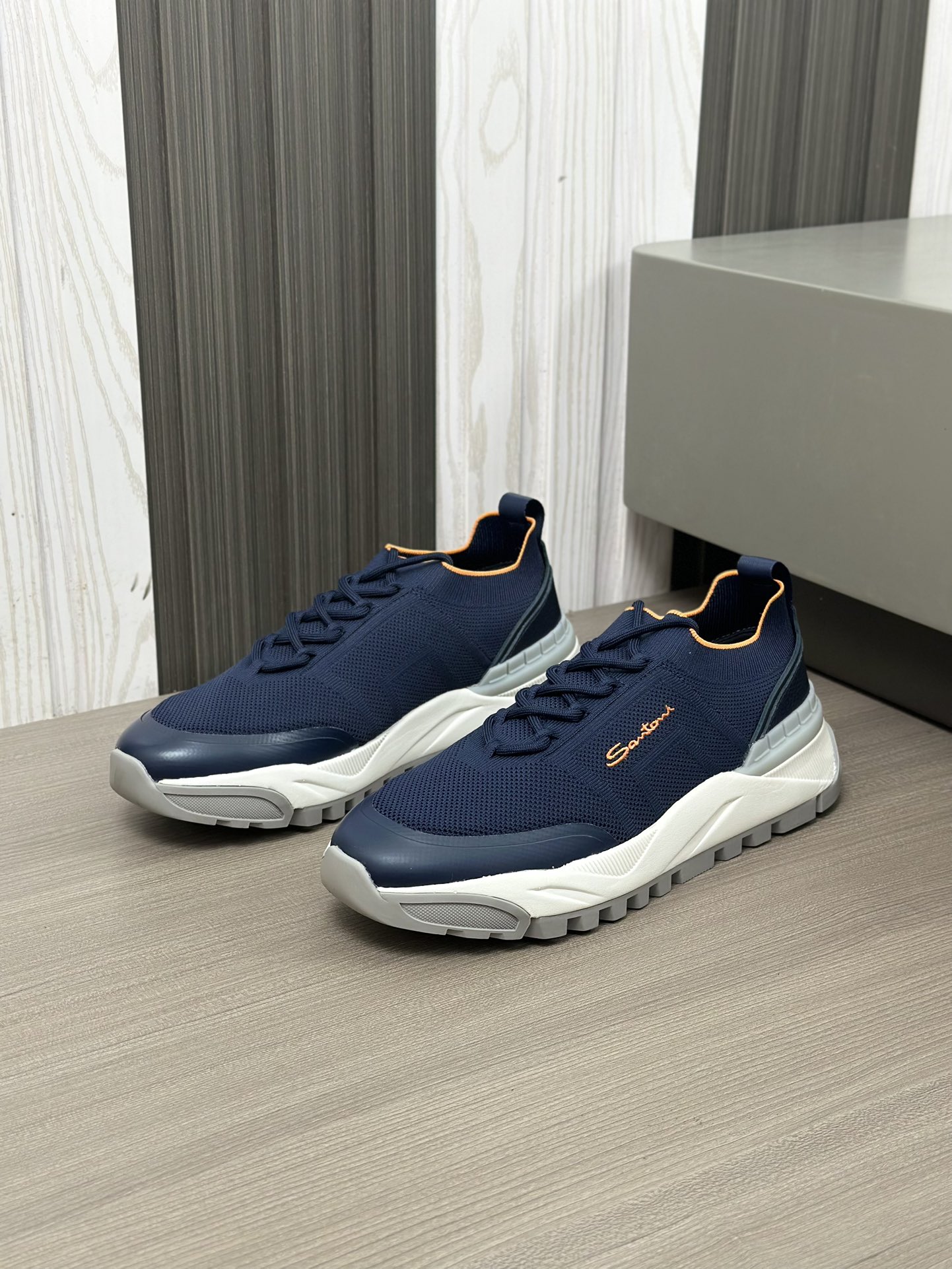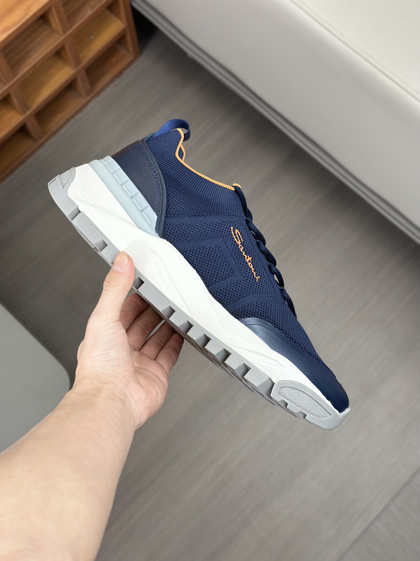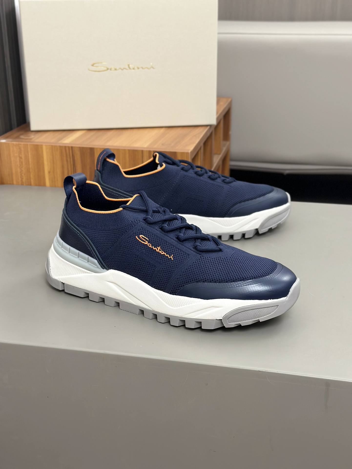 这款鞋子是AAAAA 1:1 质量 (非常棒). 使用了和原版一模一样的材料. 商标部分也保持了和Santoni一样. 图片拍摄是实物鞋子拍摄, 您所收到的实物保证和我们图片一模一样.
