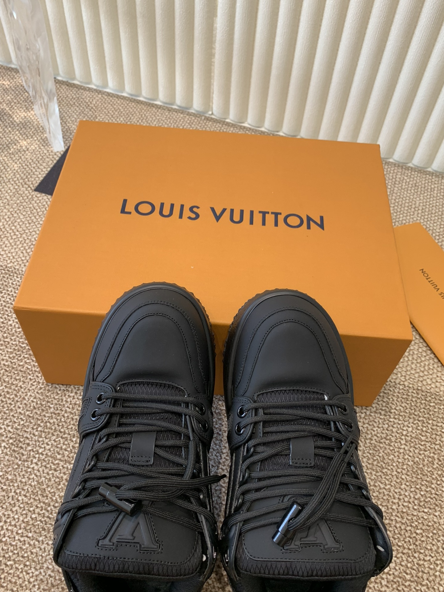 这款鞋子是AAAAA 1:1 质量 (非常棒). 使用了和原版一模一样的材料. 商标部分也保持了和路易威登/Louis Vuitton一样. 图片拍摄是实物鞋子拍摄, 您所收到的实物保证和我们图片一模一样.