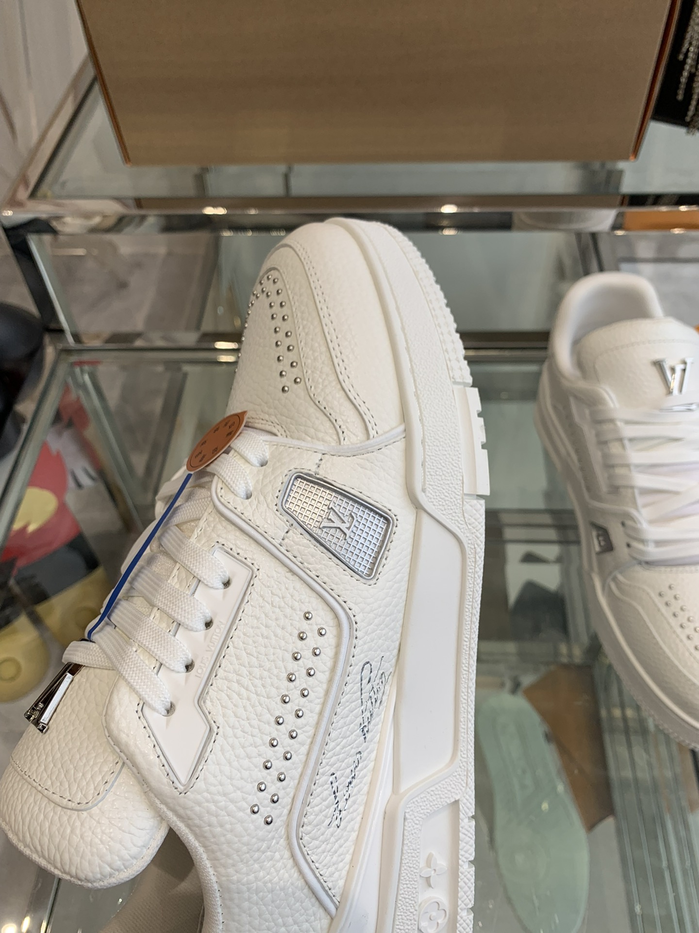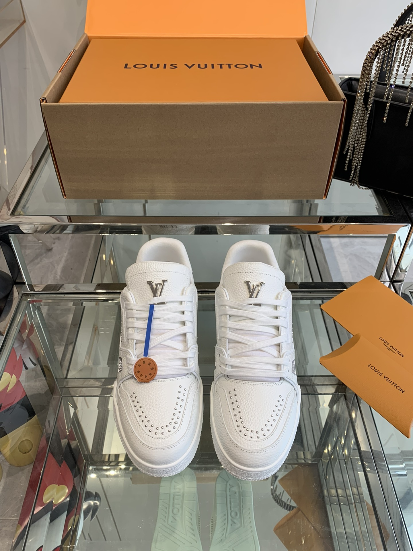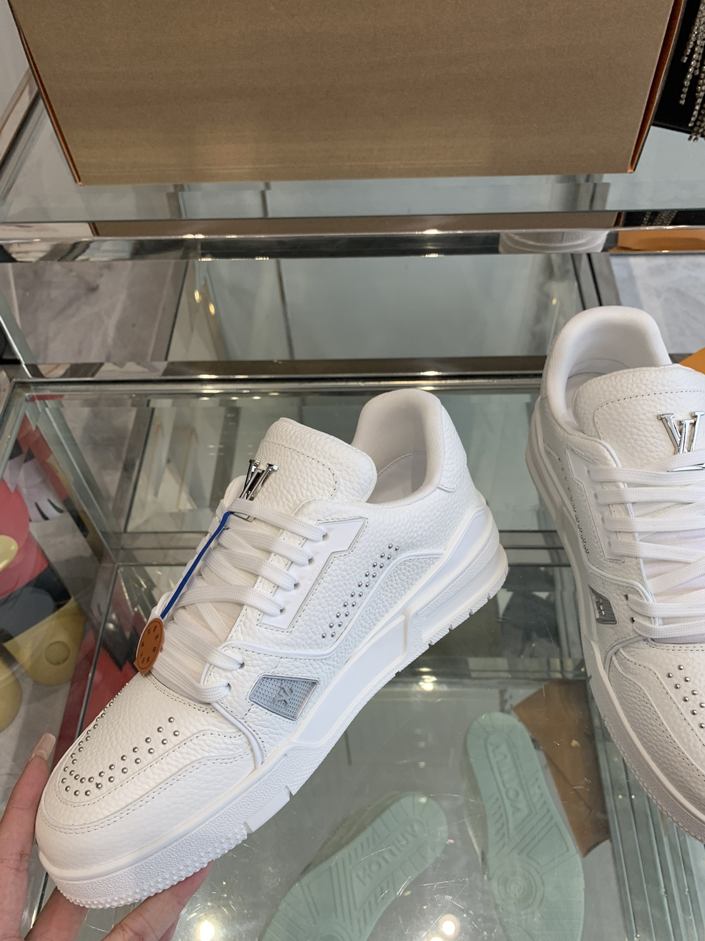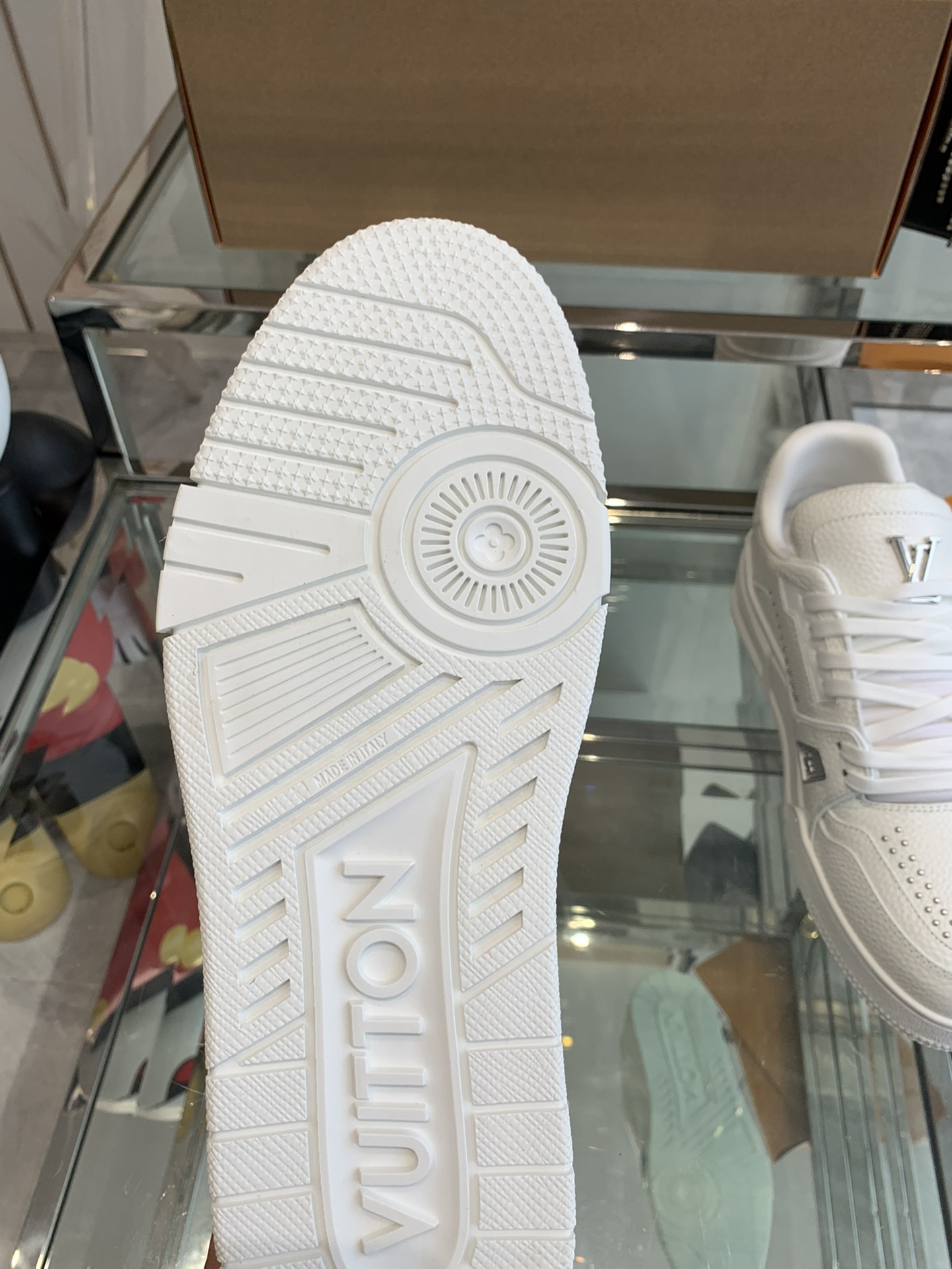 这款鞋子是AAAAA 1:1 质量 (非常棒). 使用了和原版一模一样的材料. 商标部分也保持了和路易威登/Louis Vuitton一样. 图片拍摄是实物鞋子拍摄, 您所收到的实物保证和我们图片一模一样.