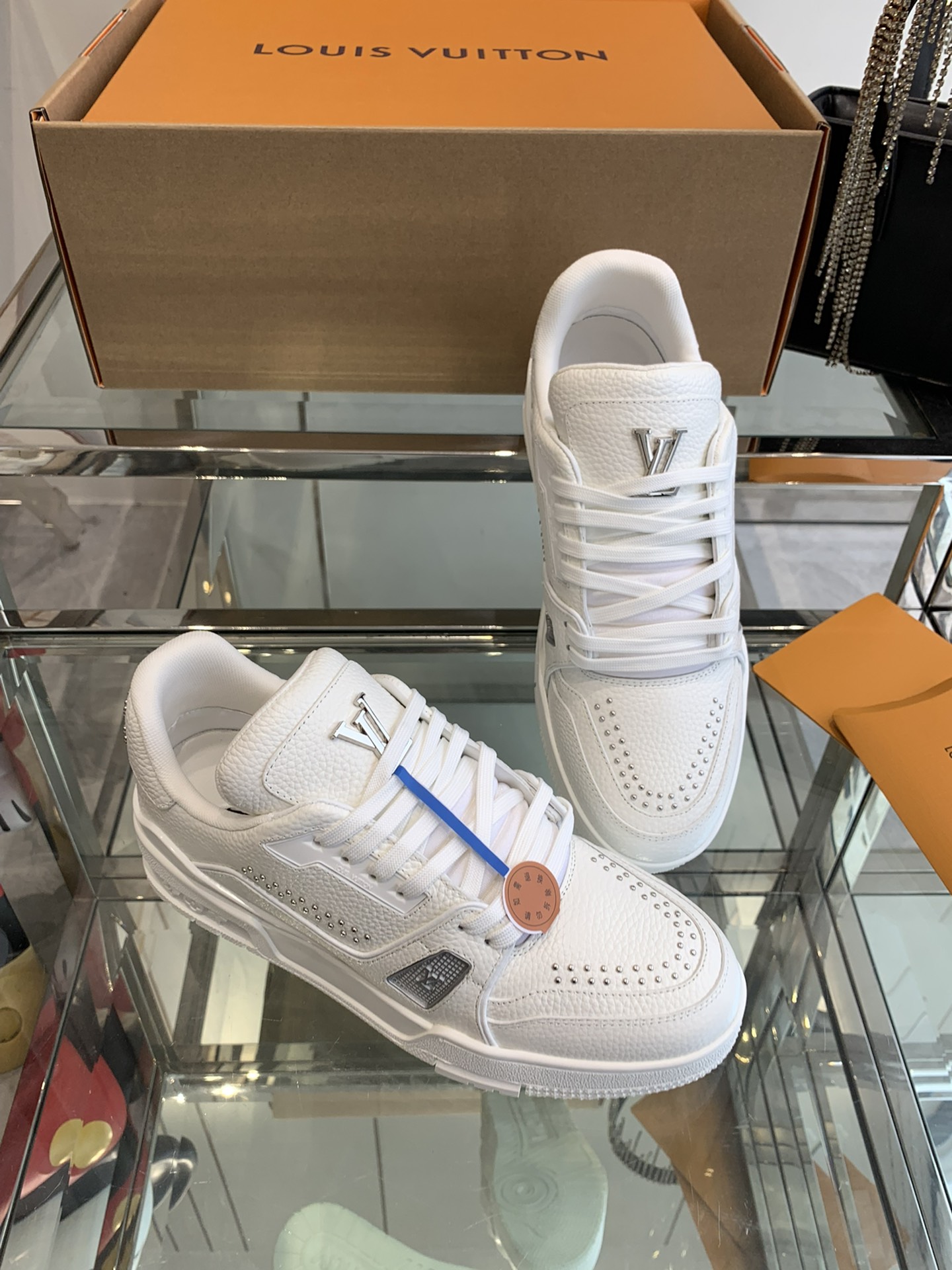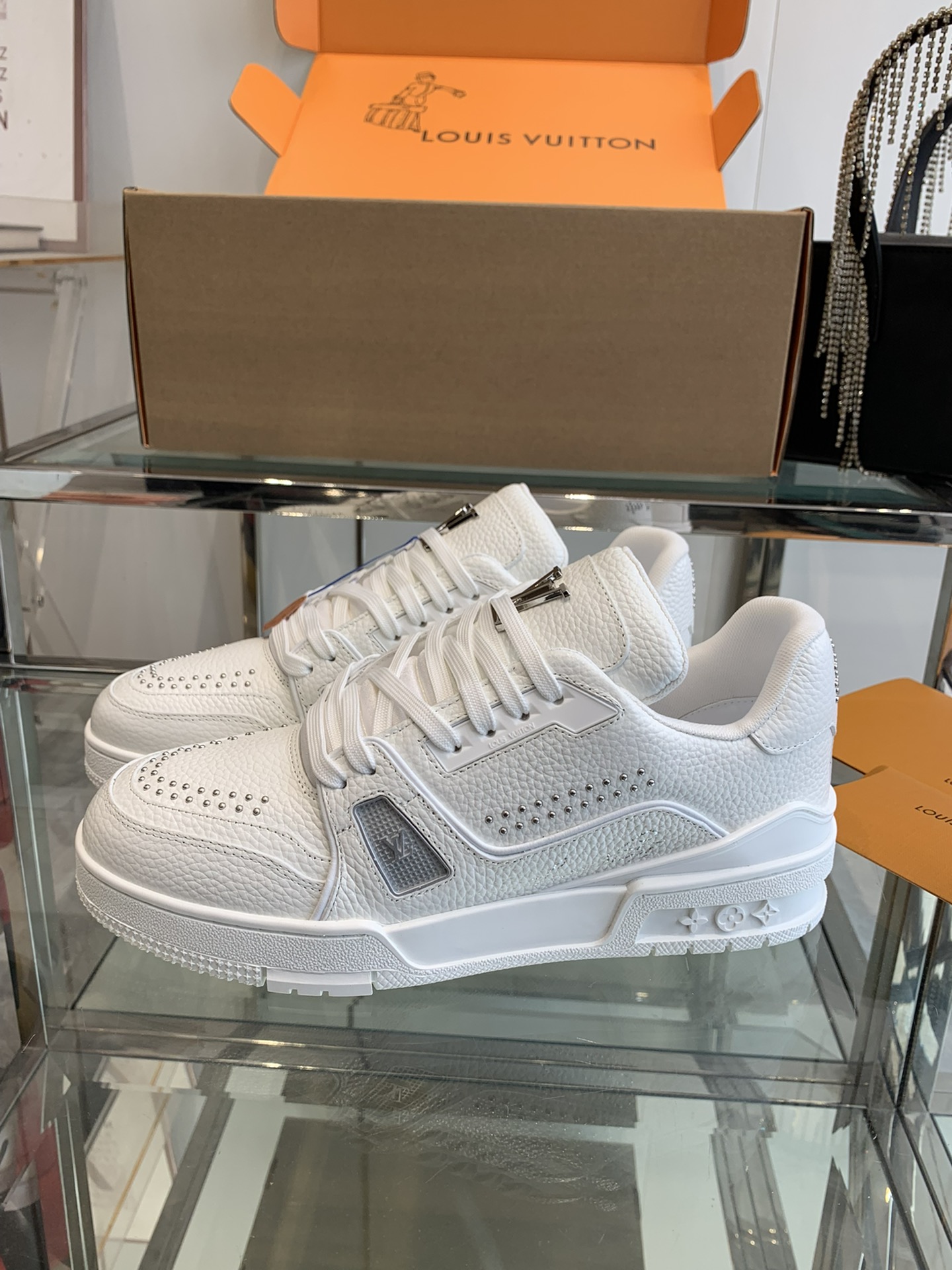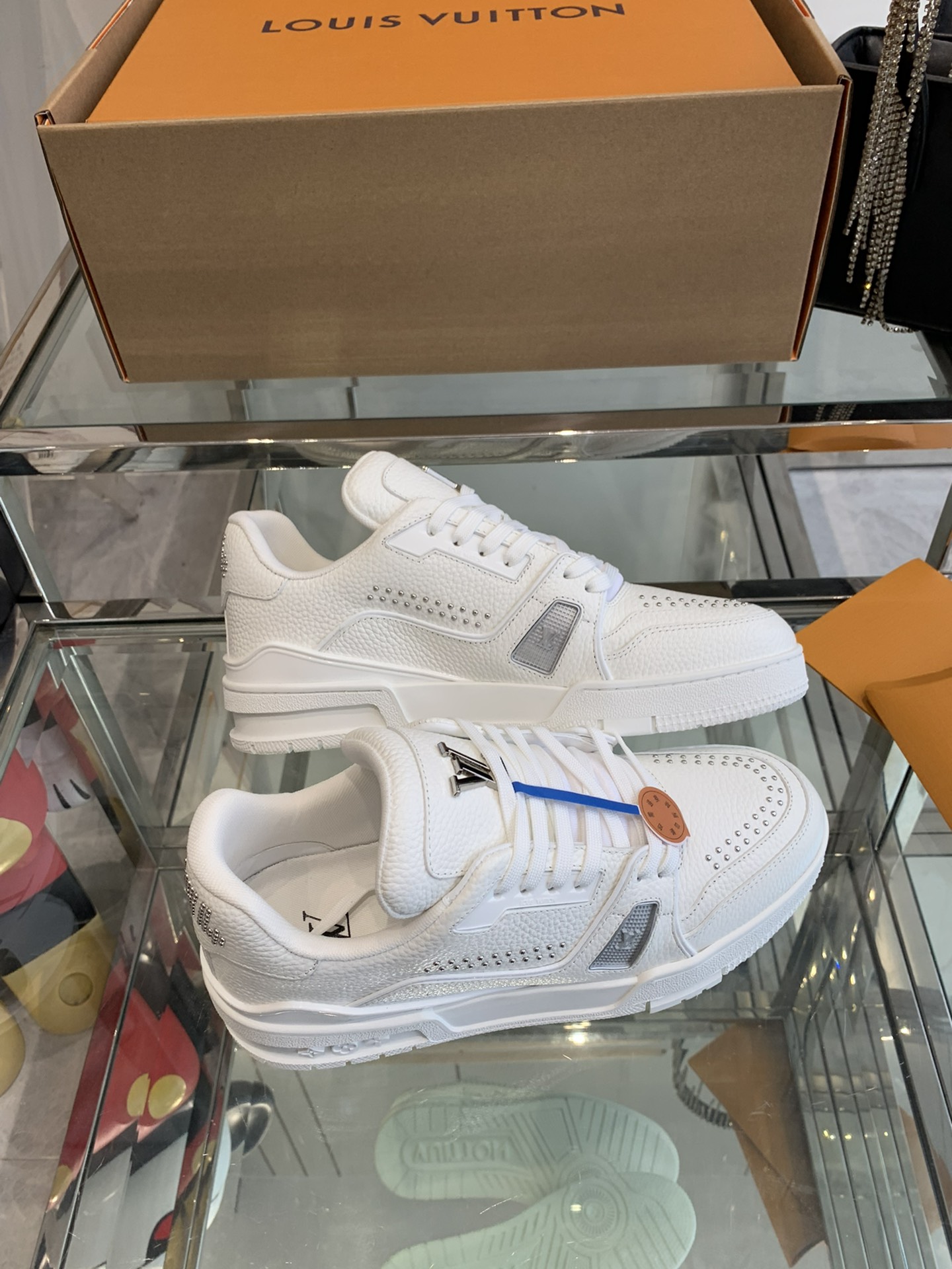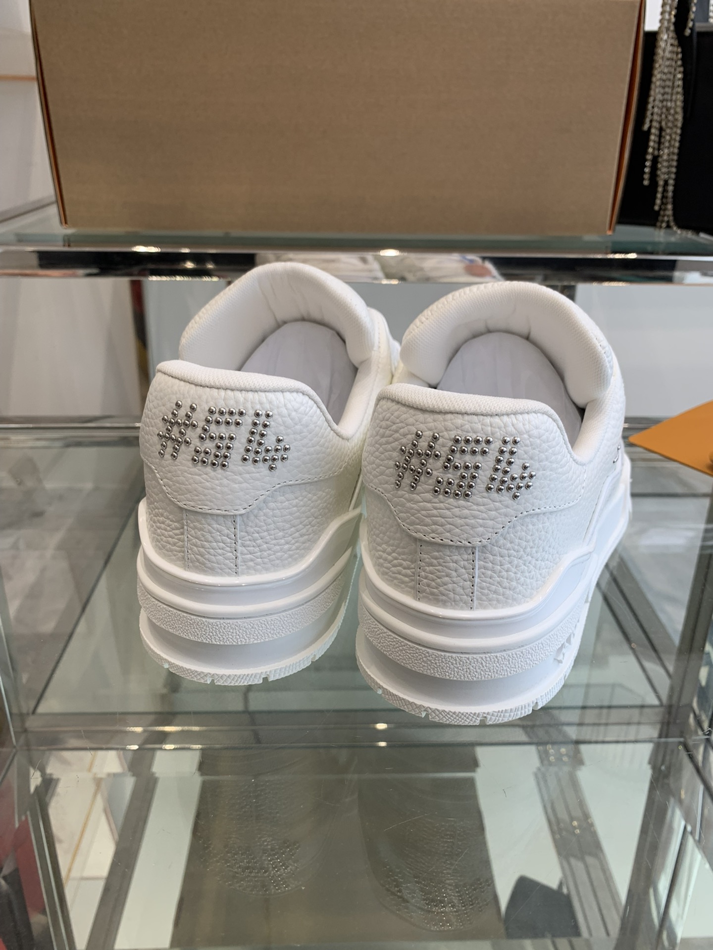 这款鞋子是AAAAA 1:1 质量 (非常棒). 使用了和原版一模一样的材料. 商标部分也保持了和路易威登/Louis Vuitton一样. 图片拍摄是实物鞋子拍摄, 您所收到的实物保证和我们图片一模一样.