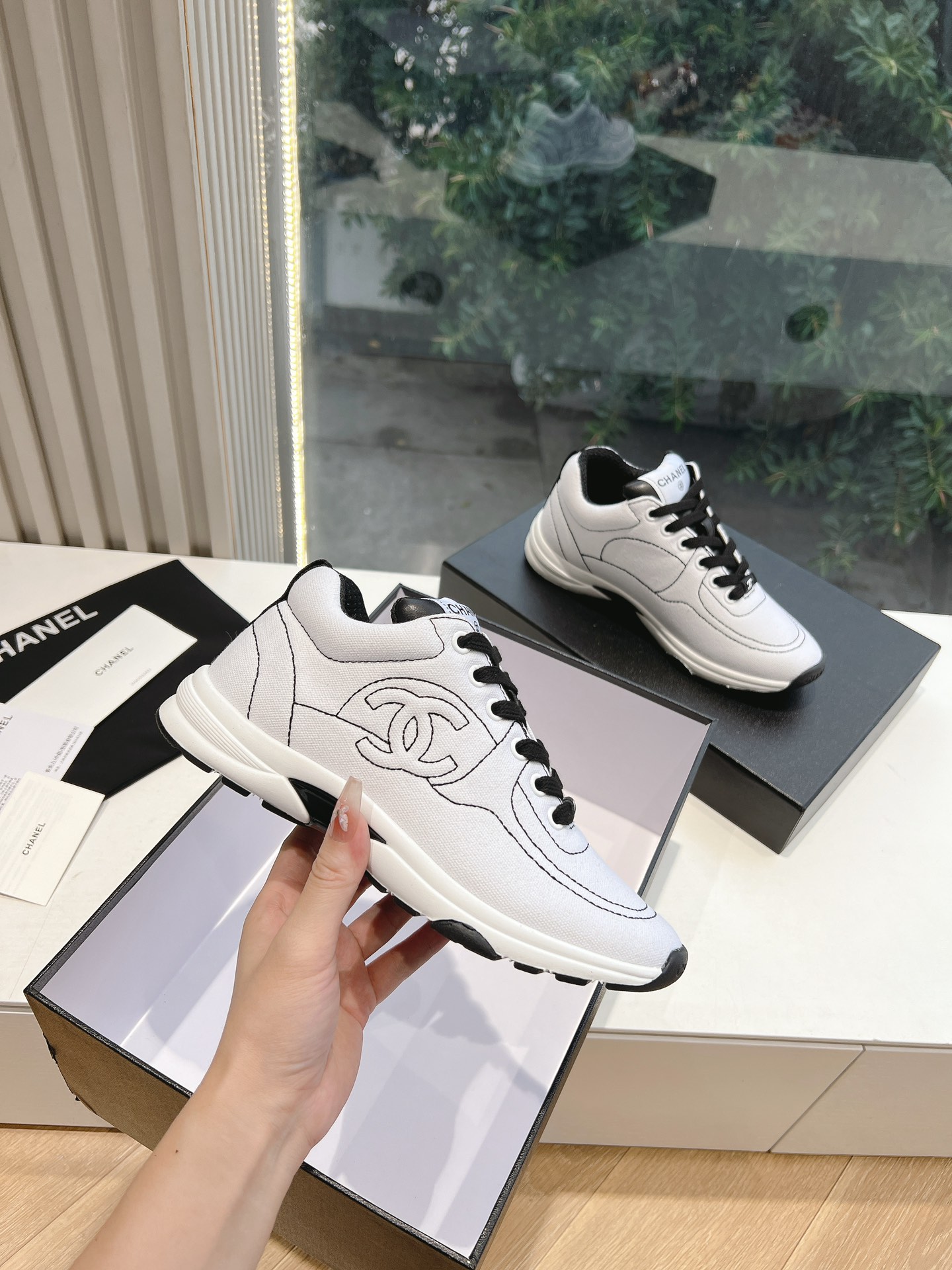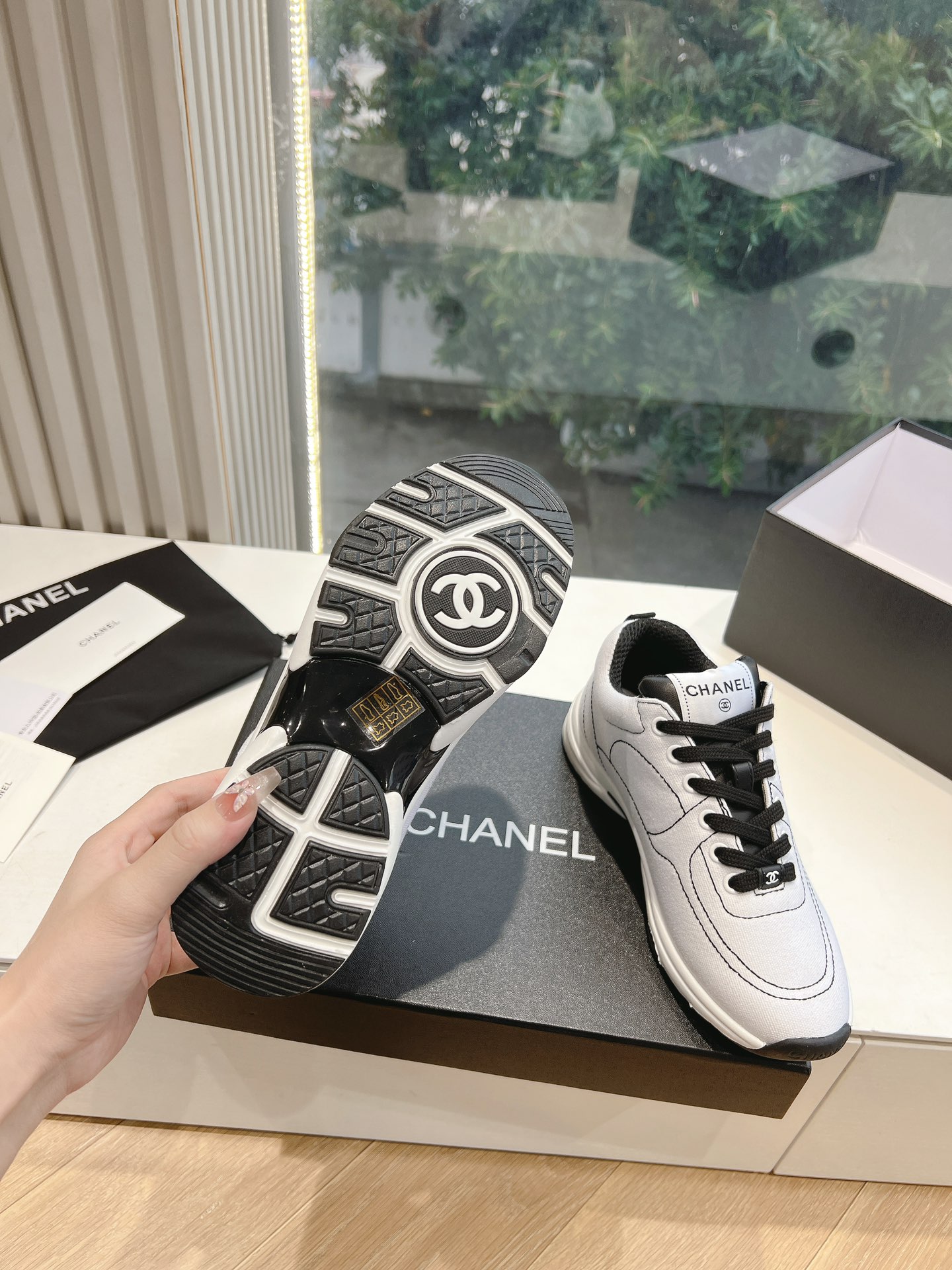 这款鞋子是AAAAA 1:1 质量 (非常棒). 使用了和原版一模一样的材料. 商标部分也保持了和香奈儿/Chanel一样. 图片拍摄是实物鞋子拍摄, 您所收到的实物保证和我们图片一模一样.