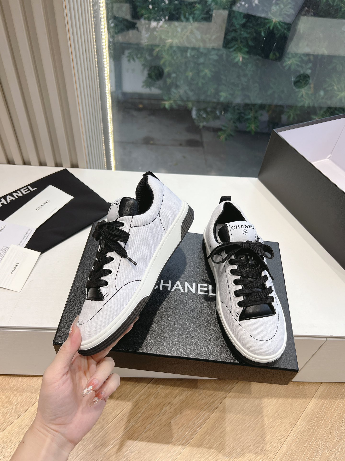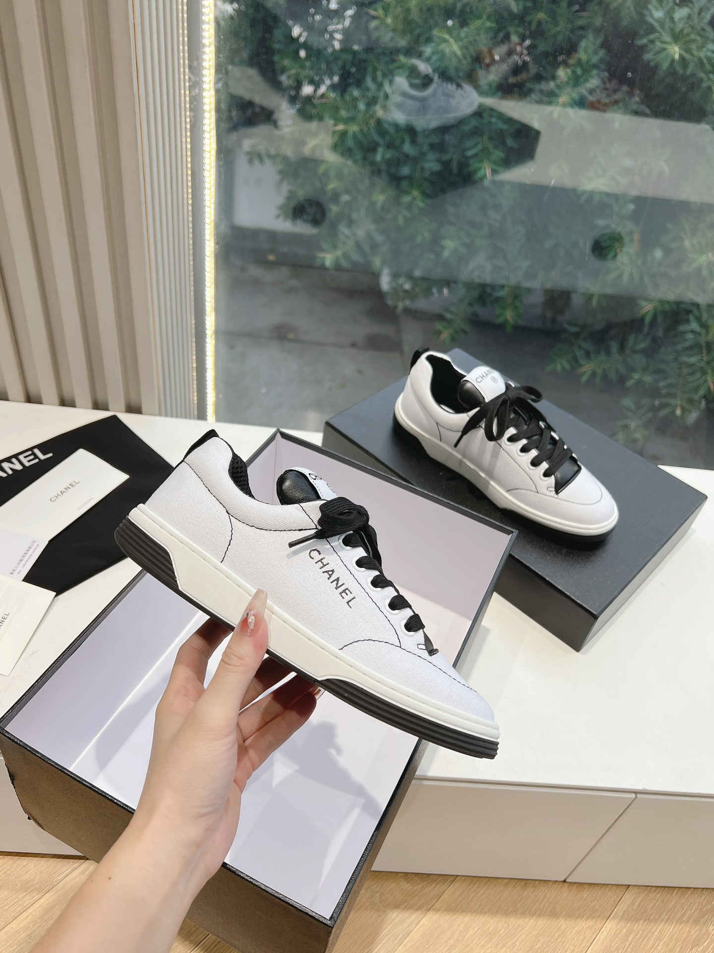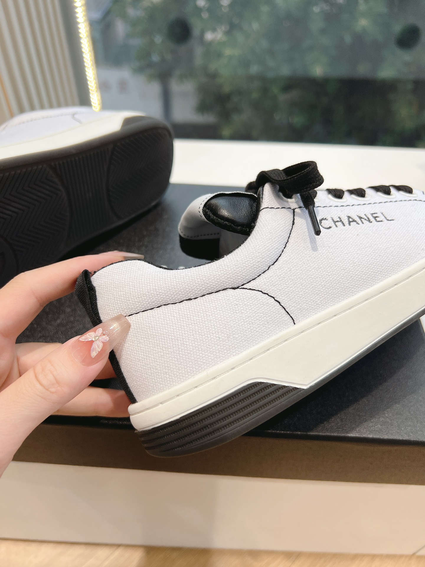 这款鞋子是AAAAA 1:1 质量 (非常棒). 使用了和原版一模一样的材料. 商标部分也保持了和香奈儿/Chanel一样. 图片拍摄是实物鞋子拍摄, 您所收到的实物保证和我们图片一模一样.