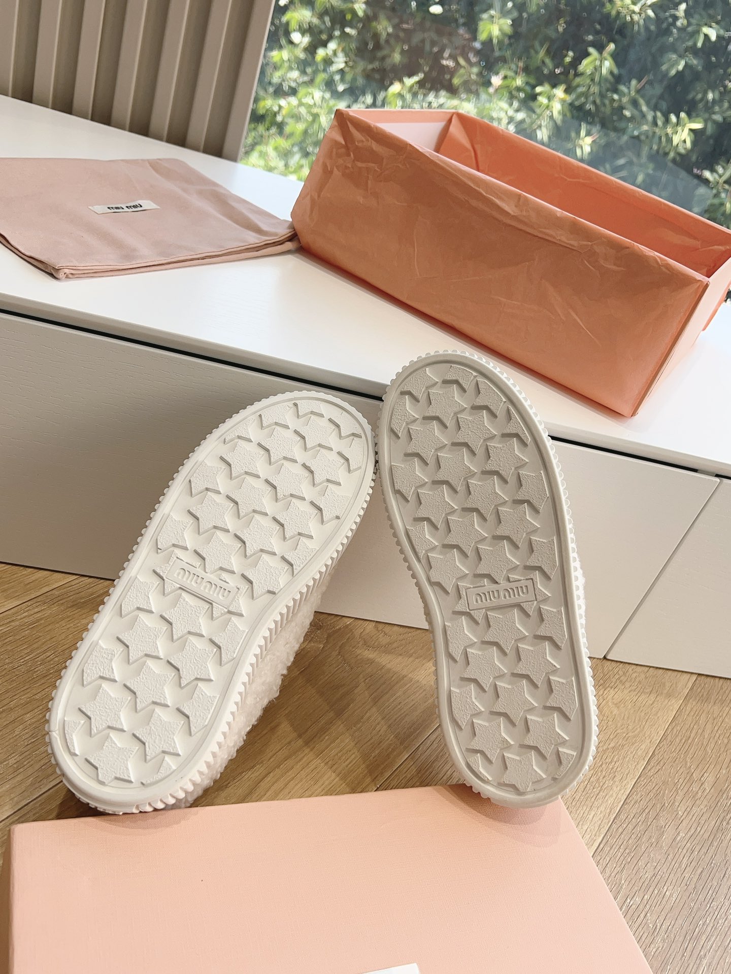 这款鞋子是AAAAA 1:1 质量 (非常棒). 使用了和原版一模一样的材料. 商标部分也保持了和缪缪/Miu Miu一样. 图片拍摄是实物鞋子拍摄, 您所收到的实物保证和我们图片一模一样.