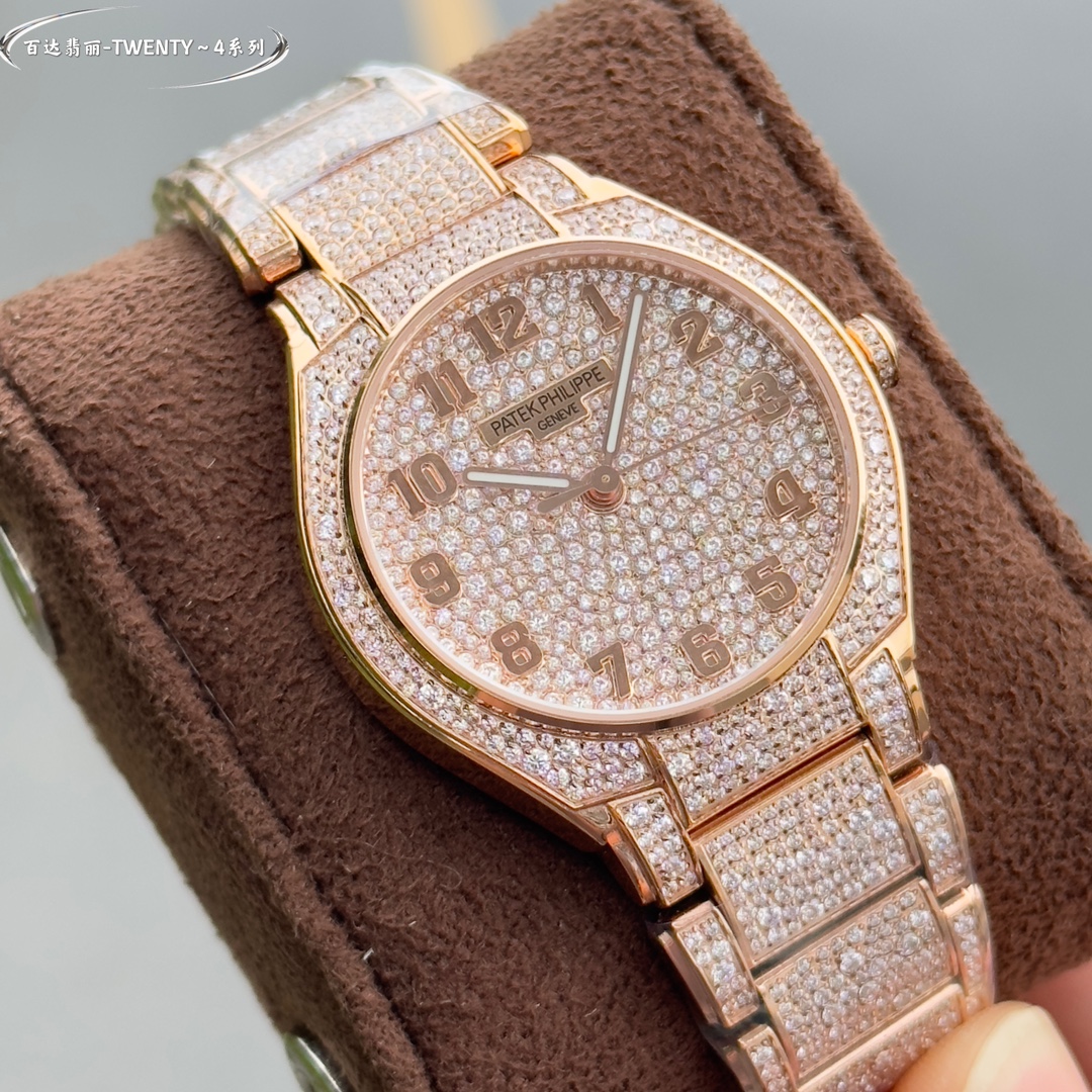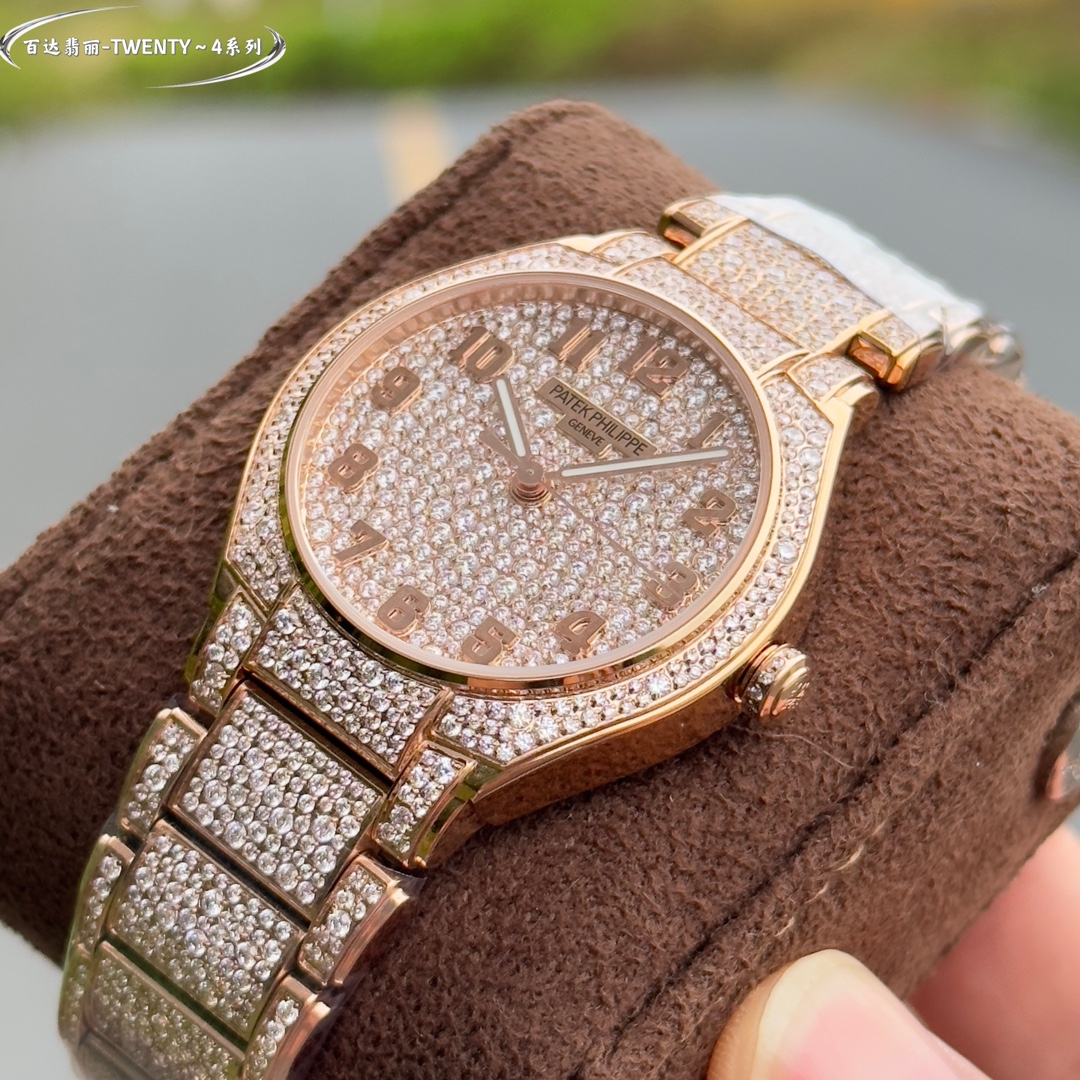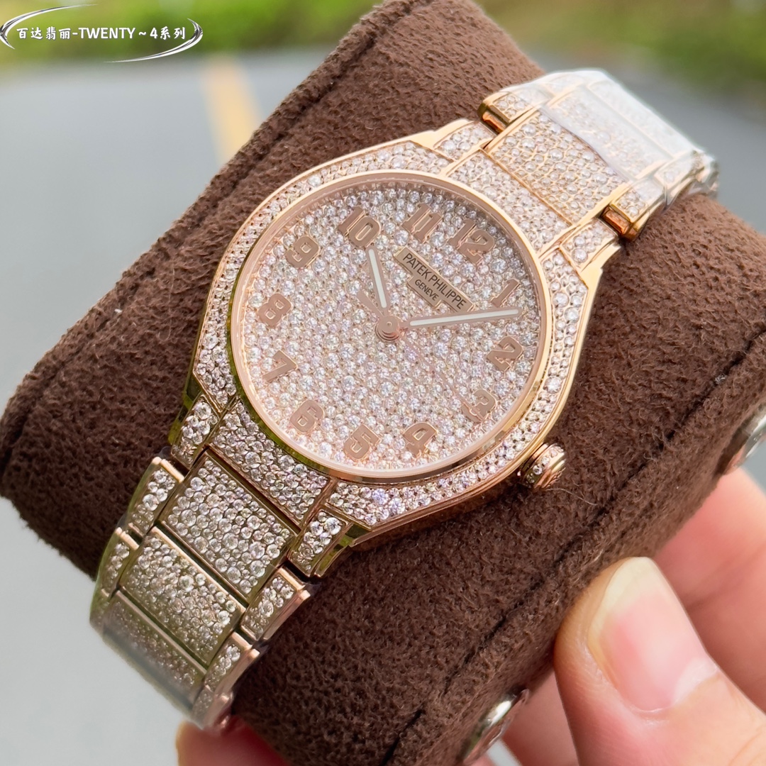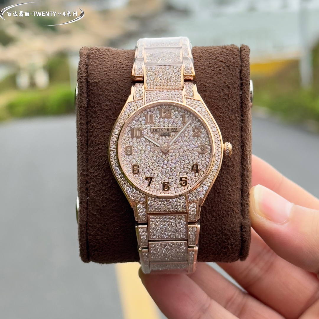 这款手表是AAAAA 1:1 质量 (非常棒). 使用了和原版一模一样的材料. 商标部分也保持了和百达翡丽/Patek Philippe一样. 图片拍摄是实物手表拍摄, 您所收到的实物保证和我们图片一模一样.