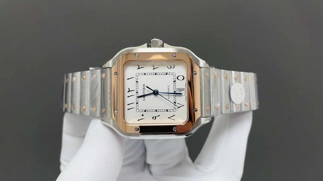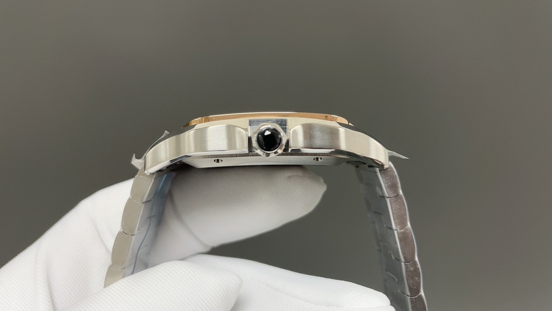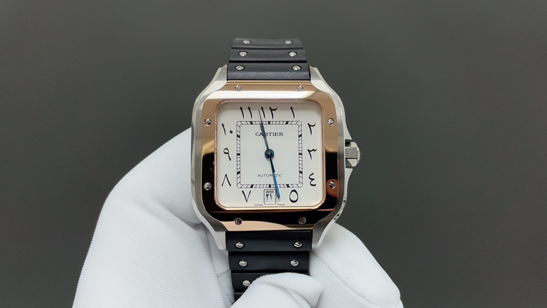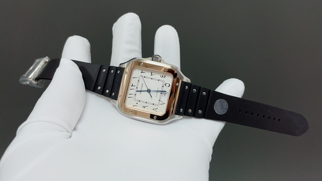这款手表是AAAAA 1:1 质量 (非常棒). 使用了和原版一模一样的材料. 商标部分也保持了和卡地亚/Cartier一样. 图片拍摄是实物手表拍摄, 您所收到的实物保证和我们图片一模一样.
