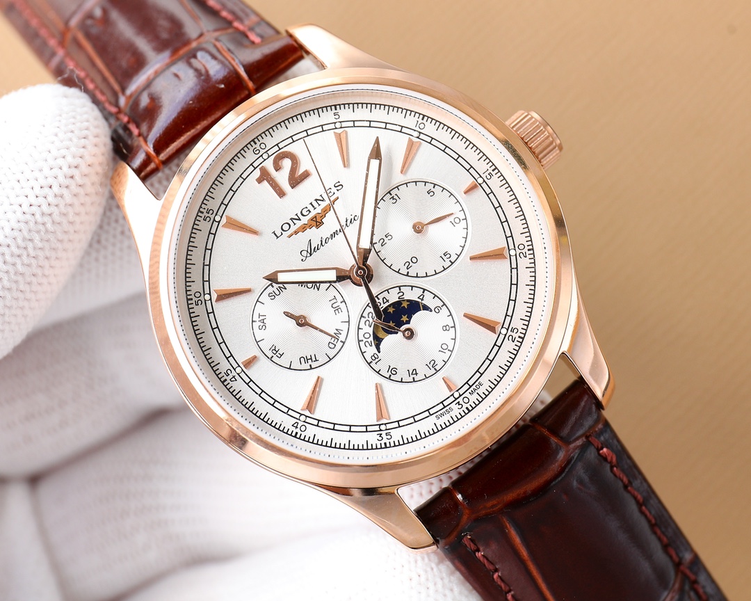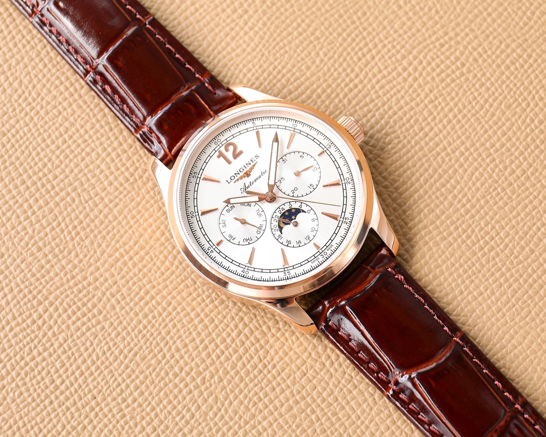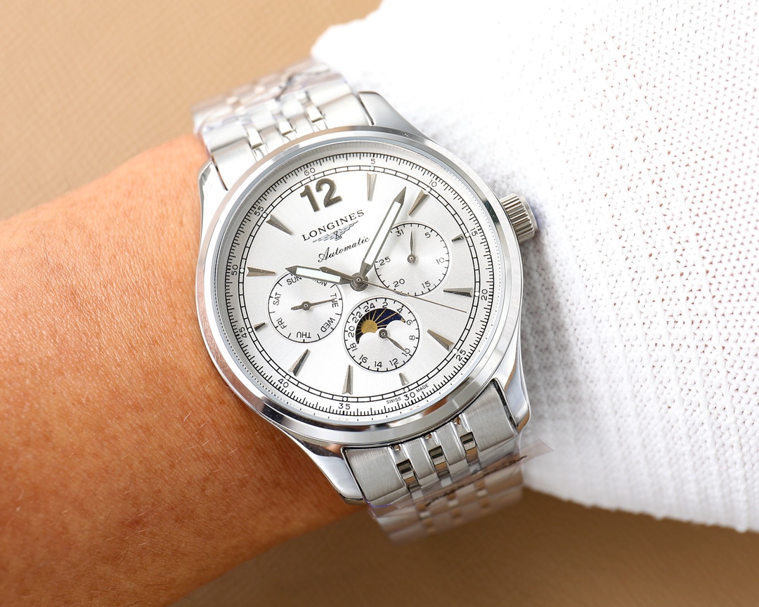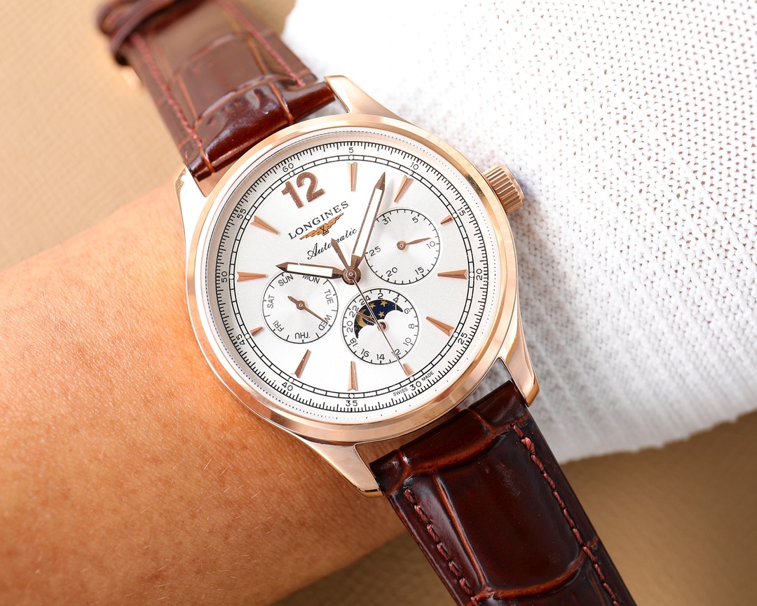 这款手表是AAAAA 1:1 质量 (非常棒). 使用了和原版一模一样的材料. 商标部分也保持了和浪琴/Longines一样. 图片拍摄是实物手表拍摄, 您所收到的实物保证和我们图片一模一样.