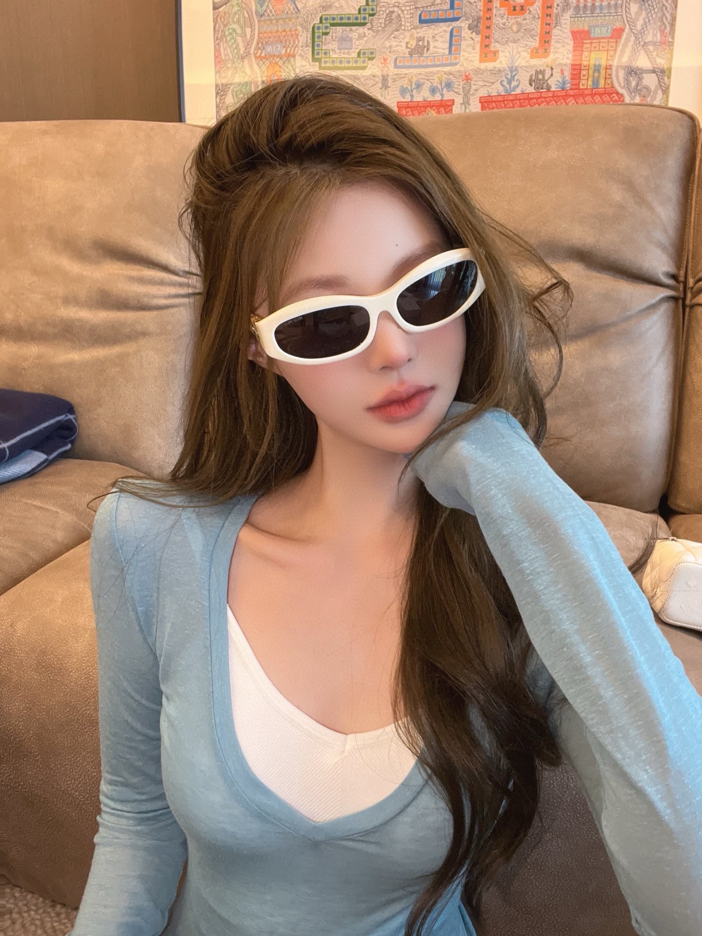 这款太阳眼镜是AAAAA 1:1 质量 (非常棒). 使用了和原版一模一样的材料. 商标部分也保持了和缪缪/Miu Miu一样. 图片拍摄是实物太阳眼镜拍摄, 您所收到的实物保证和我们图片一模一样.