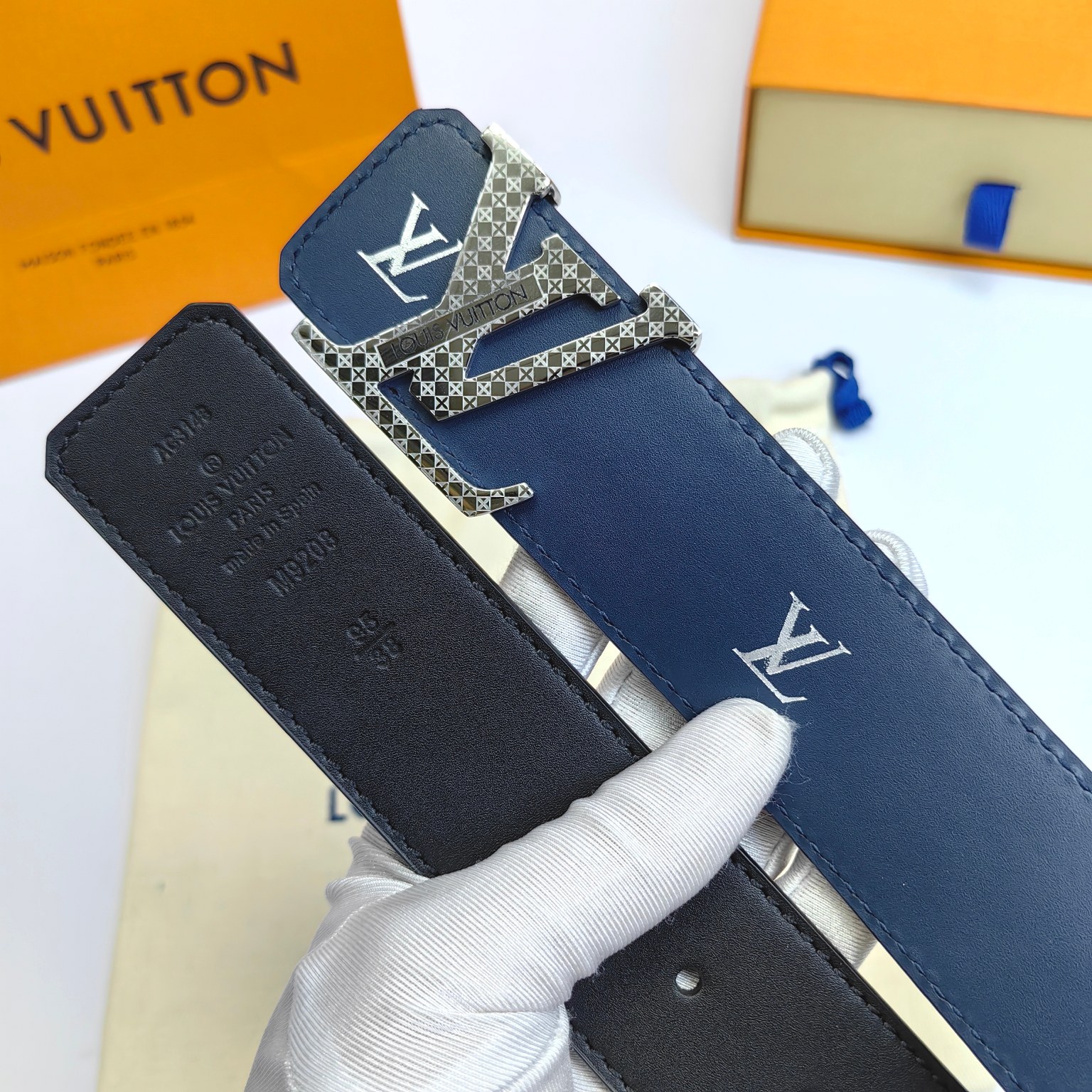 这款皮带是AAAAA 1:1 质量 (非常棒). 使用了和原版一模一样的材料. 商标部分也保持了和路易威登/Louis Vuitton一样. 图片拍摄是实物皮带拍摄, 您所收到的实物保证和我们图片一模一样.