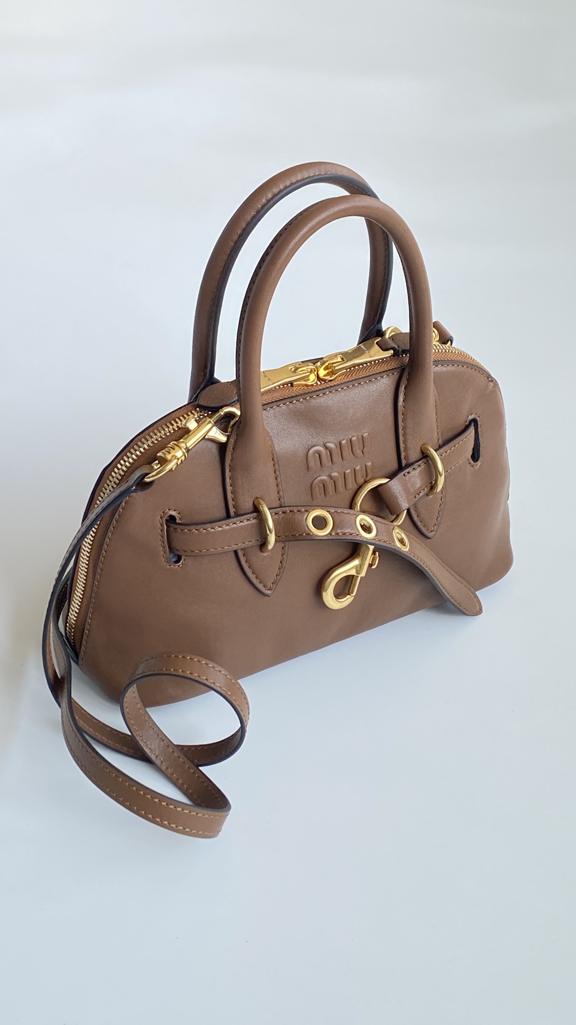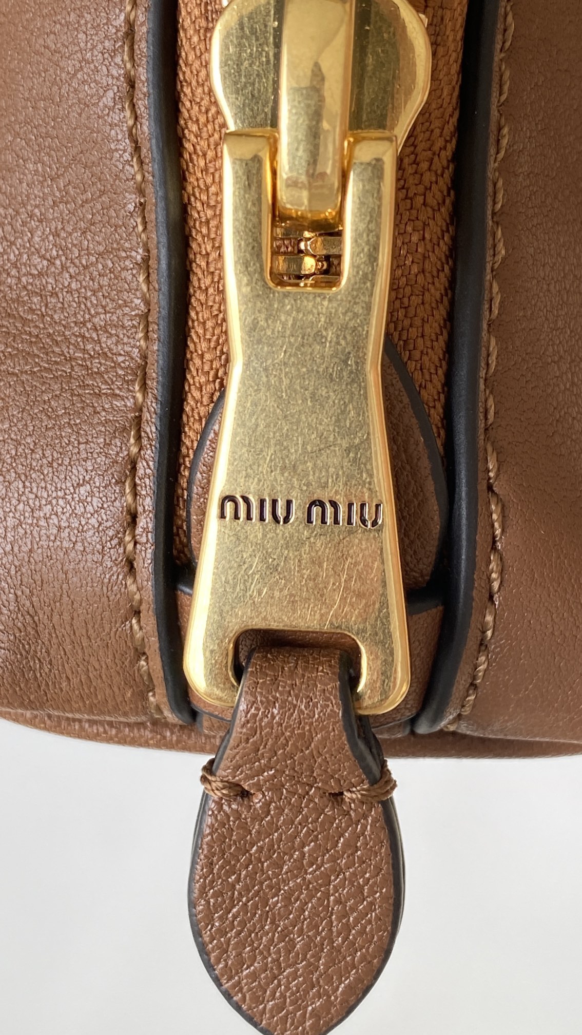 这款包包是AAAAA 1:1 质量 (非常棒). 使用了和原版一模一样的材料. 商标部分也保持了和缪缪/Miu Miu一样. 图片拍摄是实物包包拍摄, 您所收到的实物保证和我们图片一模一样.