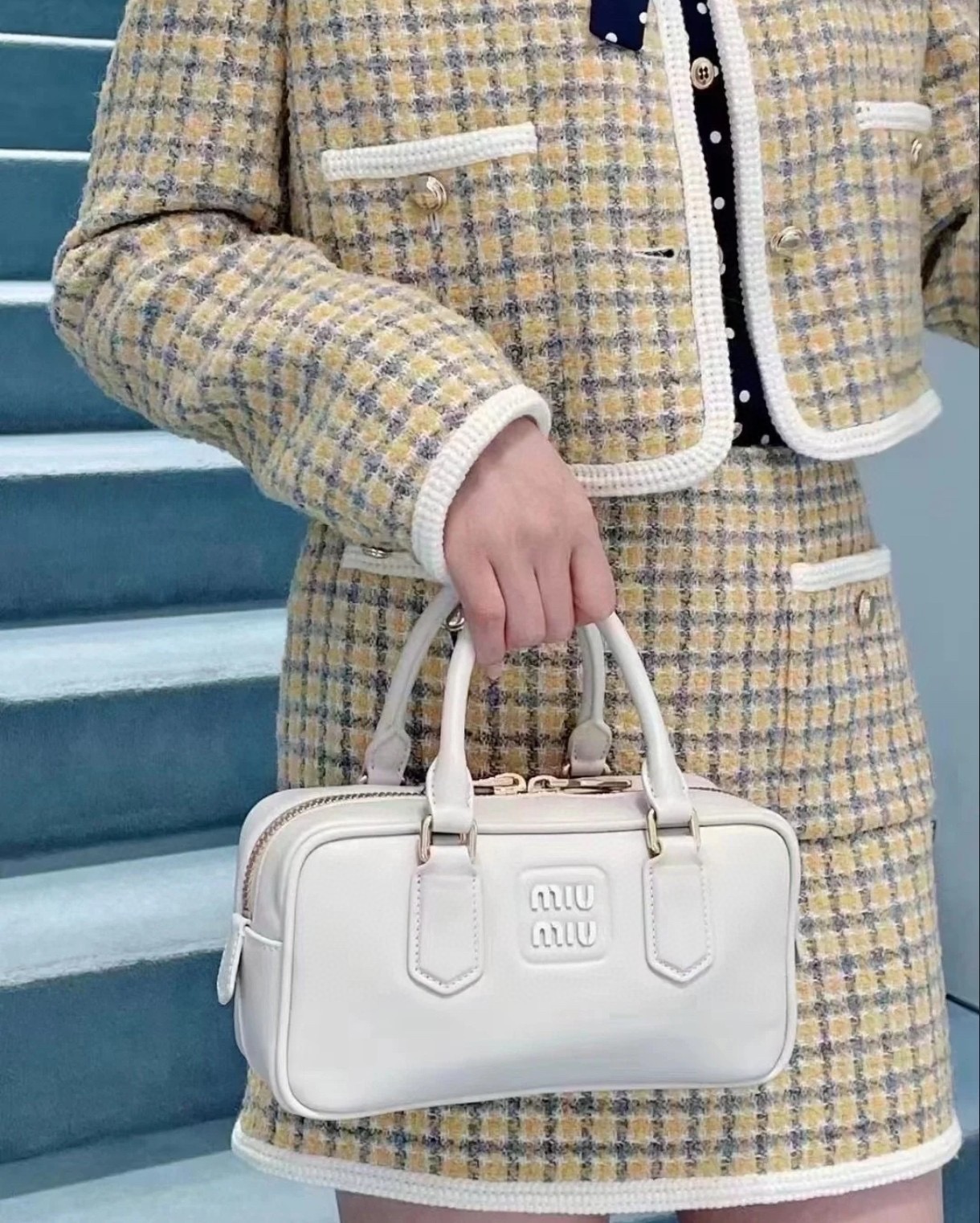 这款包包是AAAAA 1:1 质量 (非常棒). 使用了和原版一模一样的材料. 商标部分也保持了和缪缪/Miu Miu一样. 图片拍摄是实物包包拍摄, 您所收到的实物保证和我们图片一模一样.