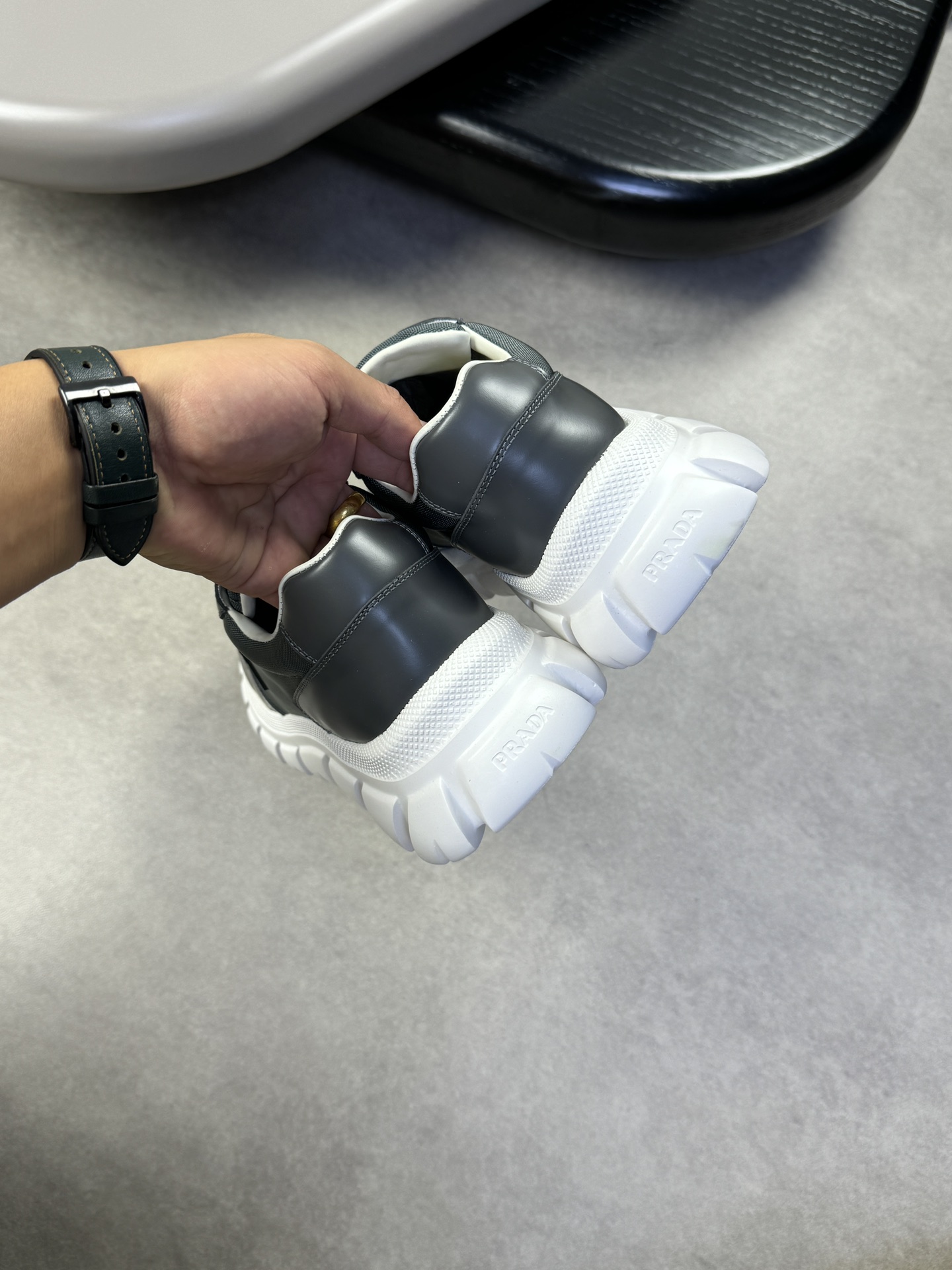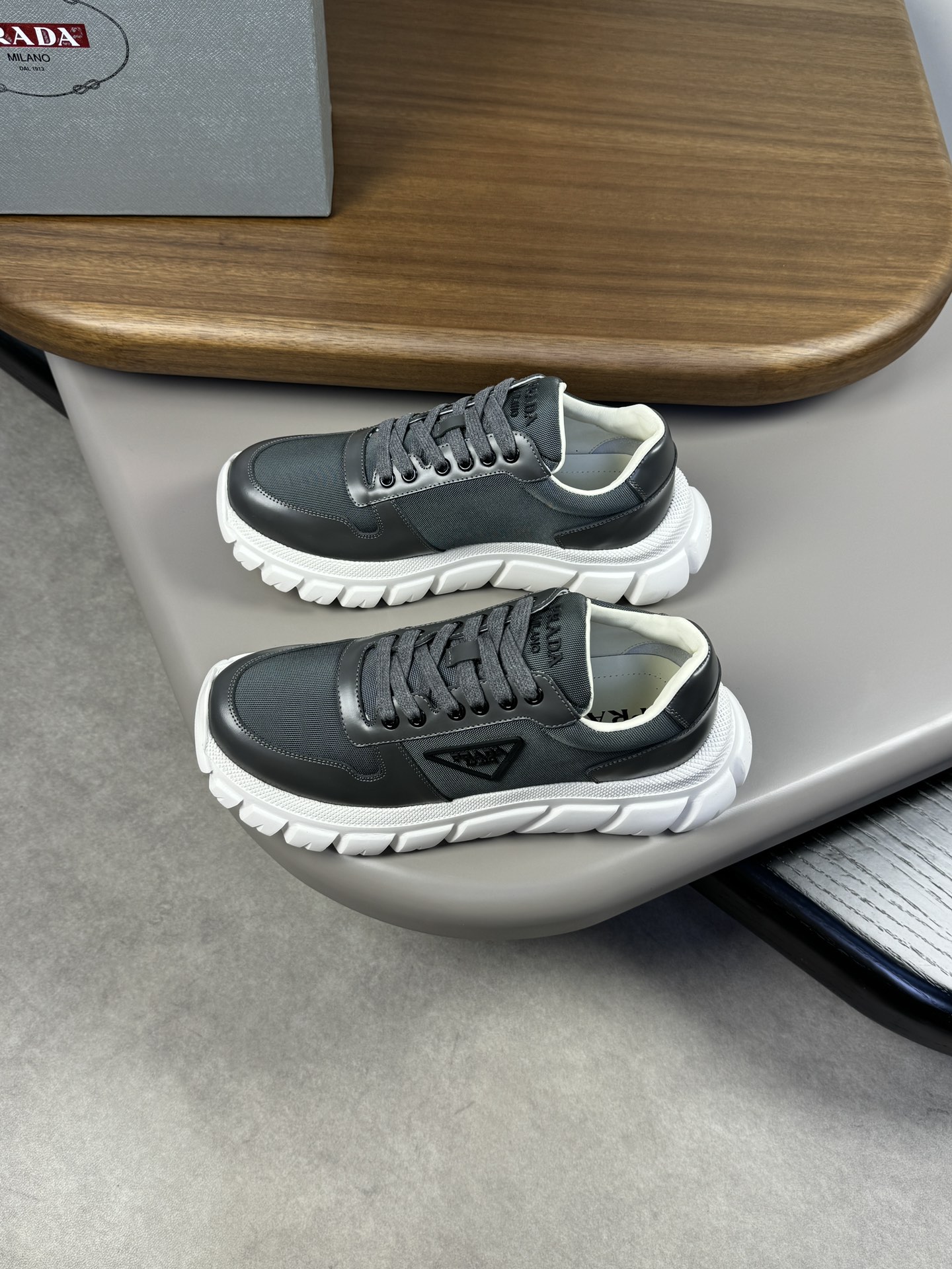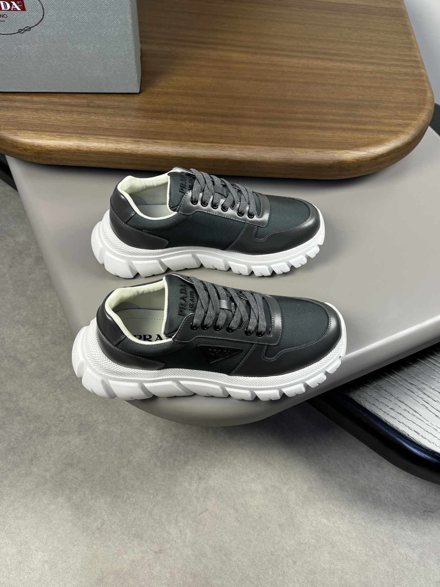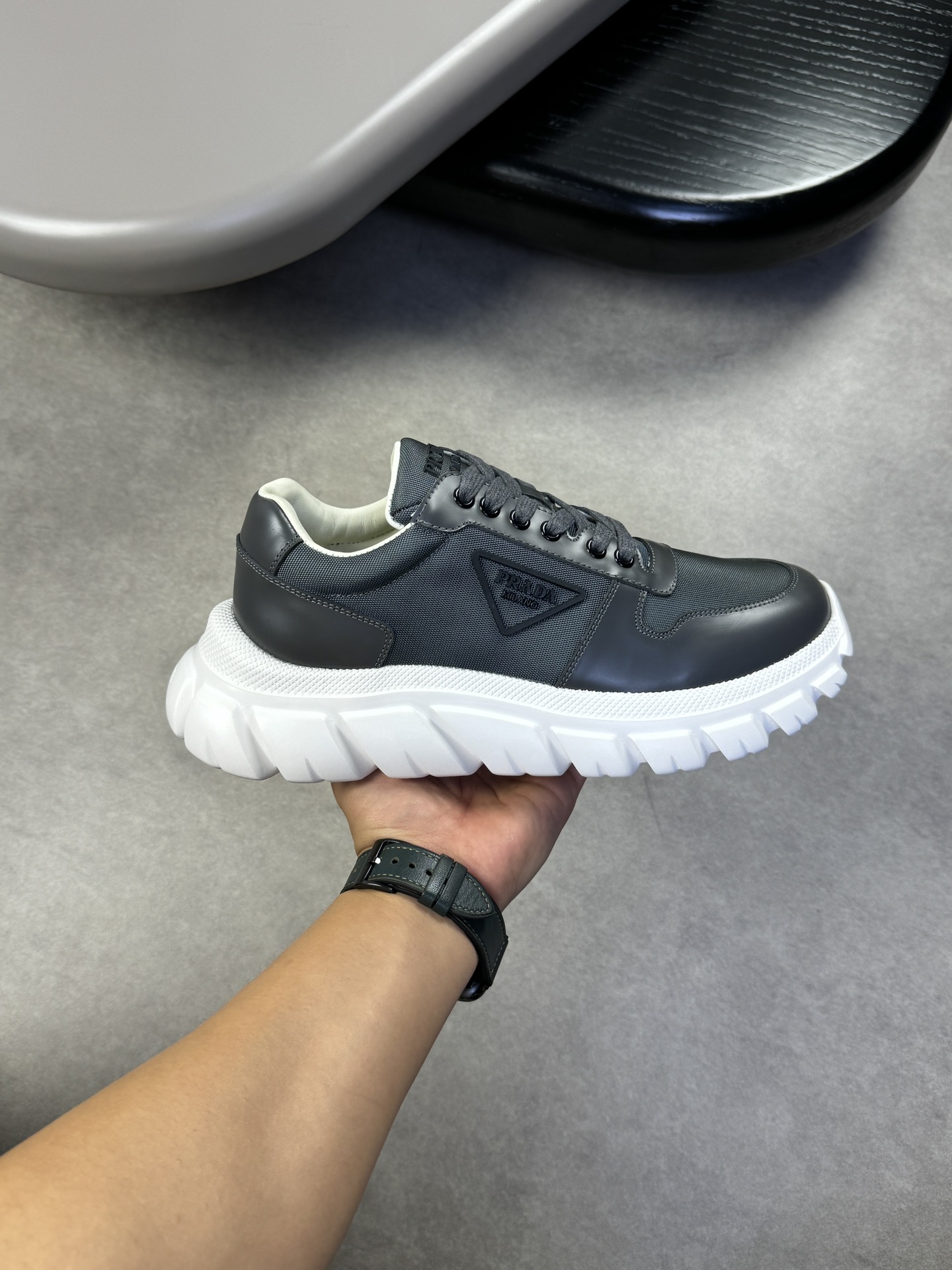 这款鞋子是AAAAA 1:1 质量 (非常棒). 使用了和原版一模一样的材料. 商标部分也保持了和普拉达/Prada一样. 图片拍摄是实物鞋子拍摄, 您所收到的实物保证和我们图片一模一样.
